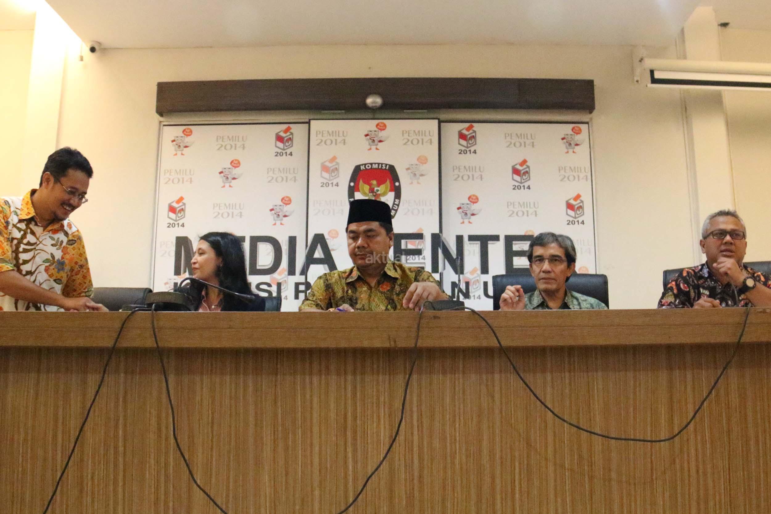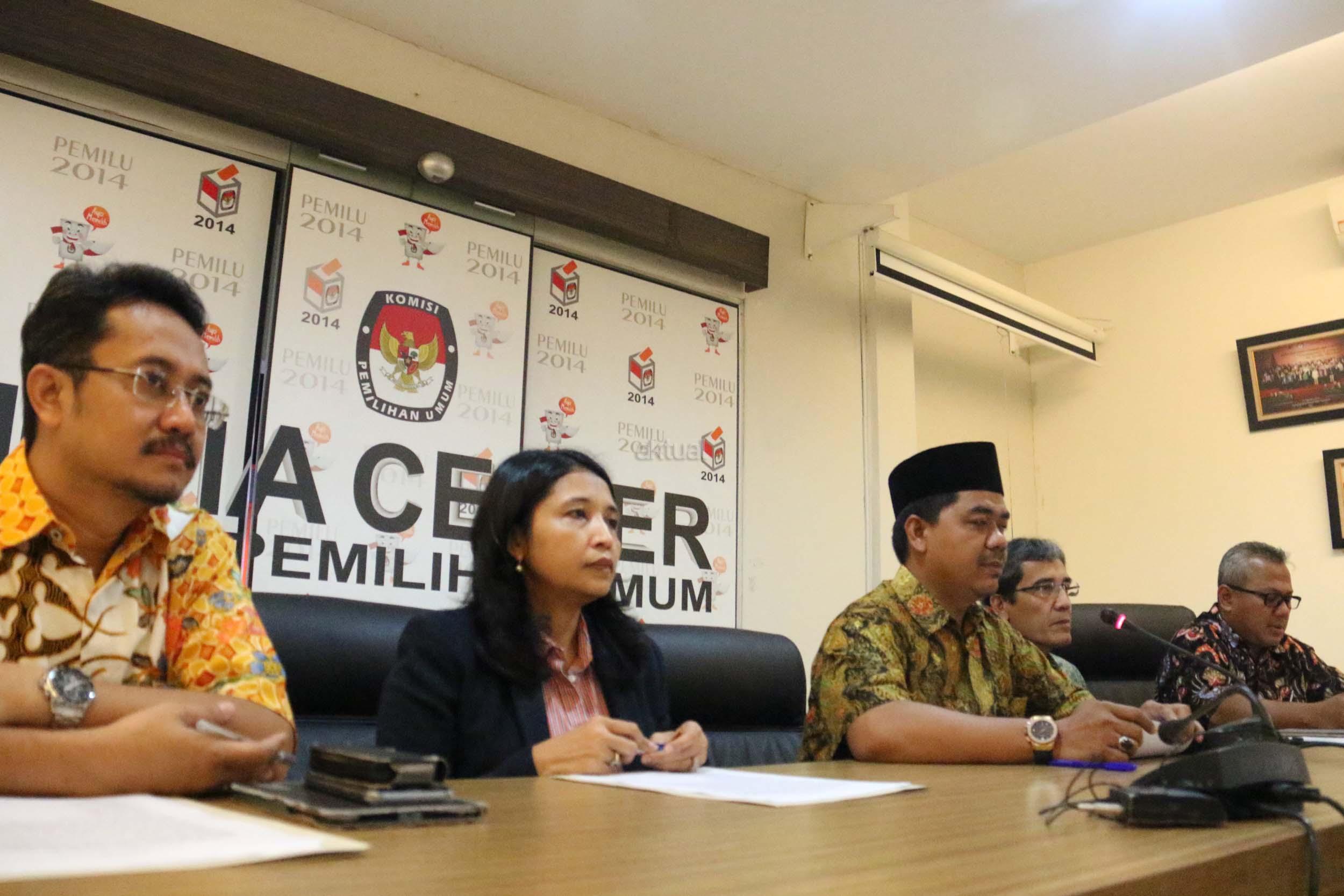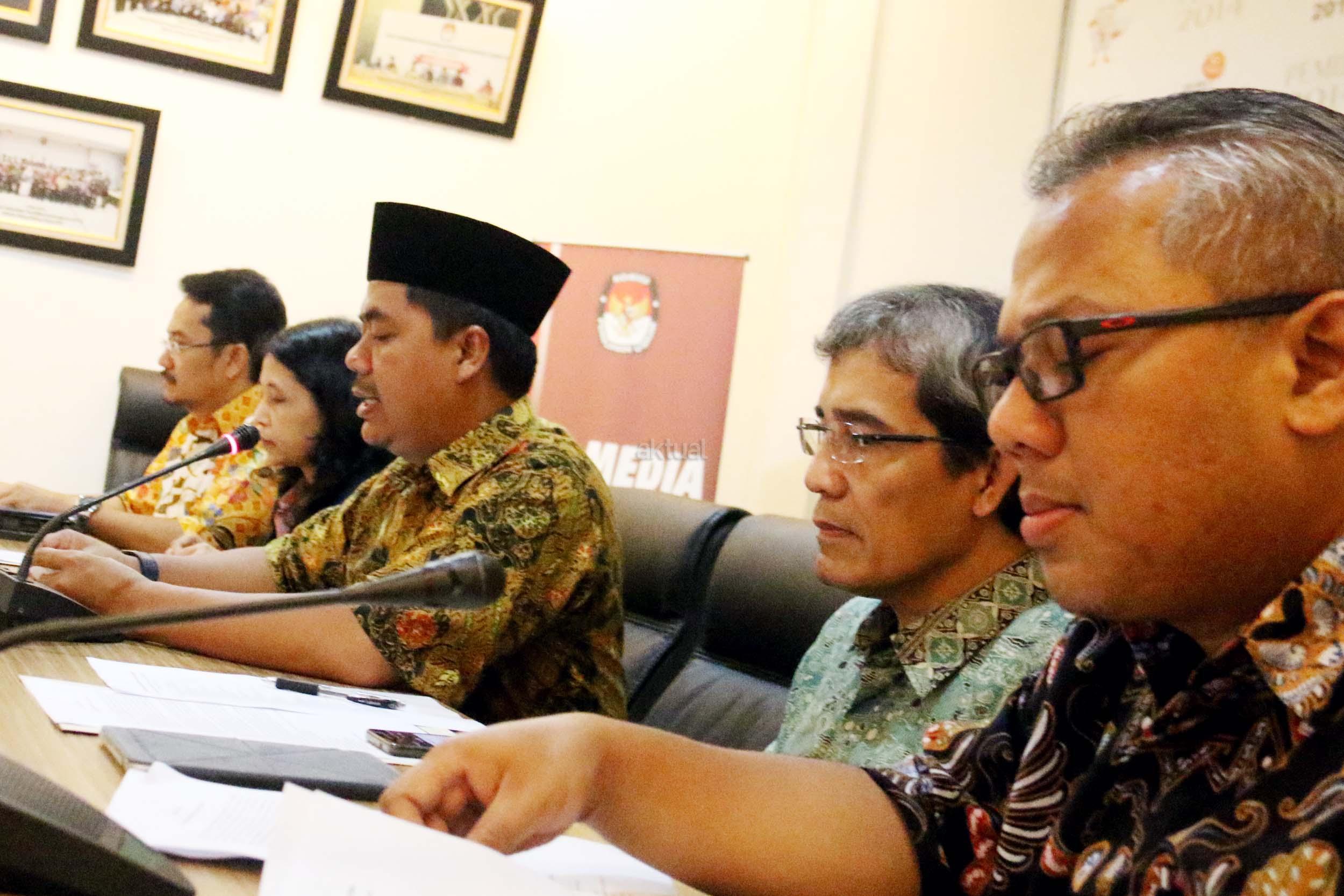 Kiri-kanan ; Komisioner KPU RI Ferry Kurnia Rizkiansyah, Komisioner KPU RI Ida Budhiati, Ketua KPU RI Juhri Ardiantoro (tengah) , Komisioner KPU RI Hadar Nafis Gumay, Komisioner KPU RI Arief Budiman saat menggelar konfrensi pres mengenai Sistem Informasi Partai Politik (SIPOL) di Media Center KPU, Jakarta, Jumat (17/3). KPU RI mengharapkan 42 Parpol yang tidak hadir pada kegiatan sosialisasi dan uji coba sipol tanggal 7 Maret 2017 segera menghubungi KPU RI untuk menyampaikan update data. AKTUAL/Munzir
