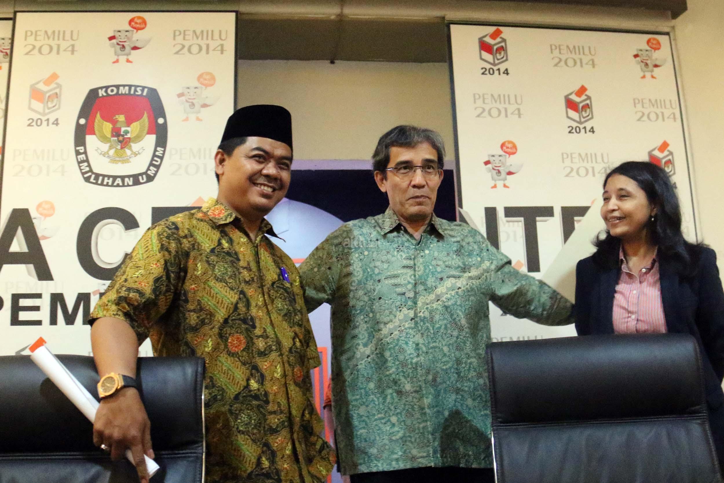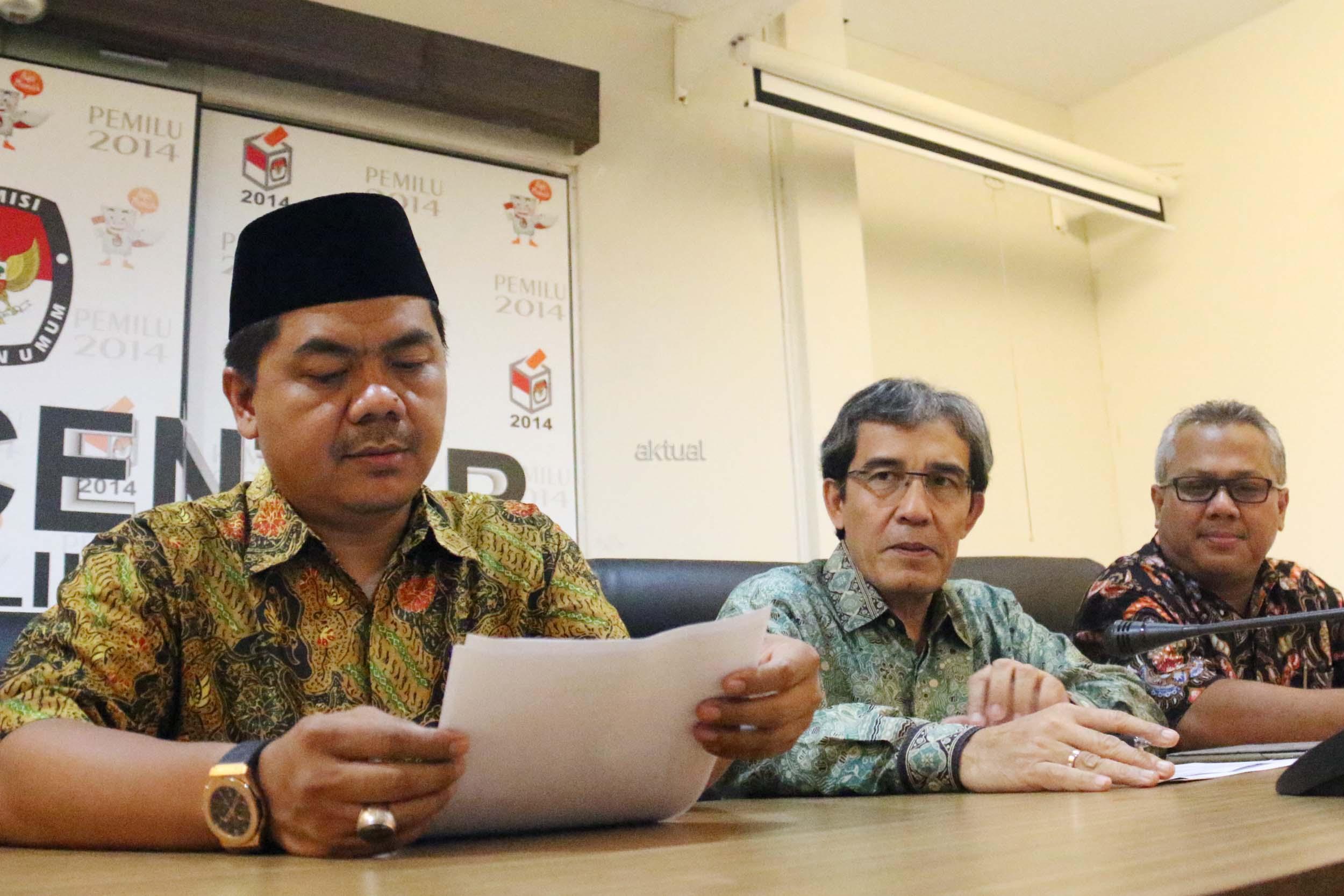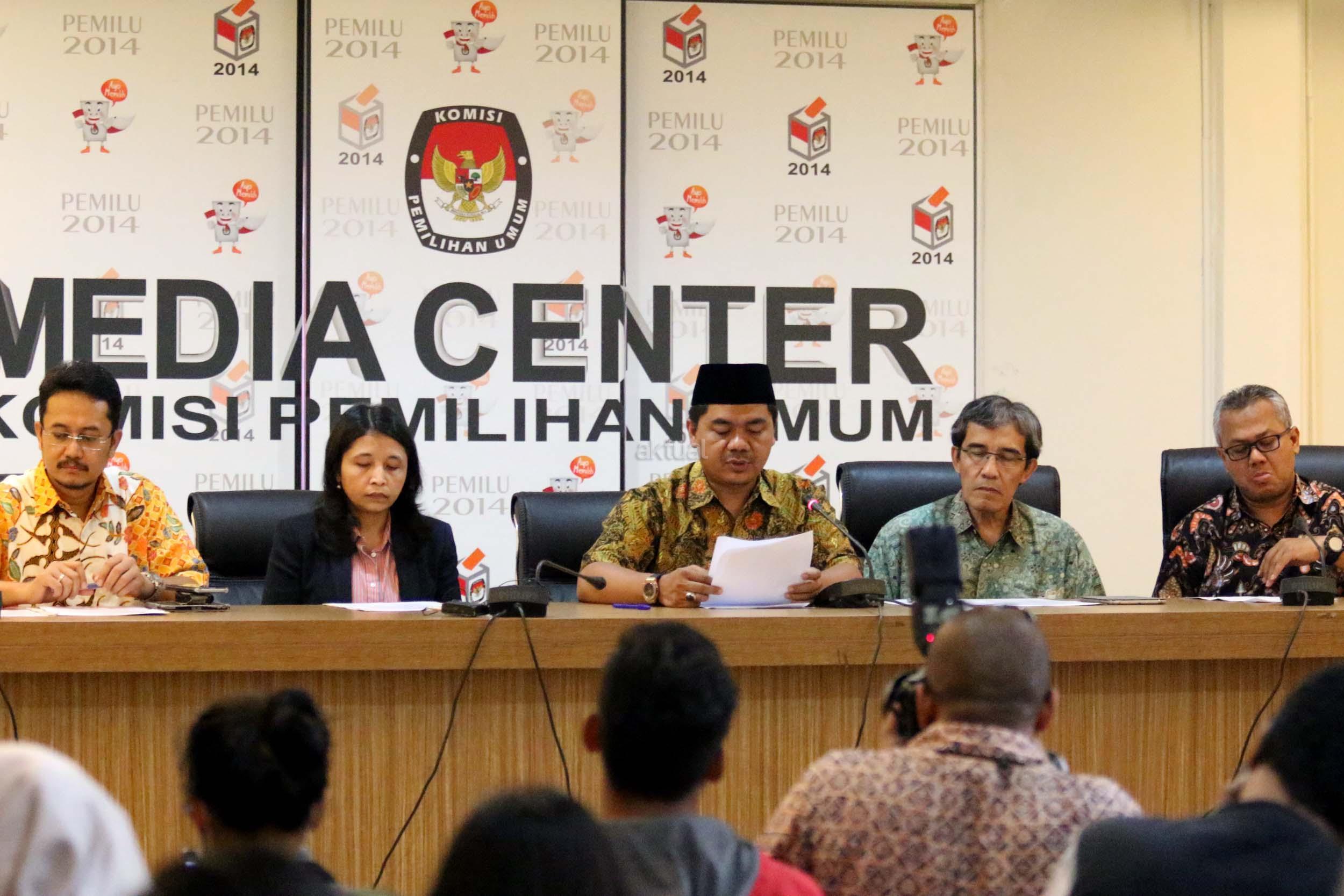 Kiri-kanan ; Komisioner KPU RI Ferry Kurnia Rizkiansyah, Komisioner KPU RI Ida Budhiati, Ketua KPU RI Juhri Ardiantoro (tengah) , Komisioner KPU RI Hadar Nafis Gumay, Komisioner KPU RI Arief Budiman saat menggelar konfrensi pres mengenai Sistem Informasi Partai Politik (SIPOL) di Media Center KPU, Jakarta, Jumat (17/3). KPU RI mengharapkan 42 Parpol yang tidak hadir pada kegiatan sosialisasi dan uji coba sipol tanggal 7 Maret 2017 segera menghubungi KPU RI untuk menyampaikan update data. AKTUAL/Munzir
