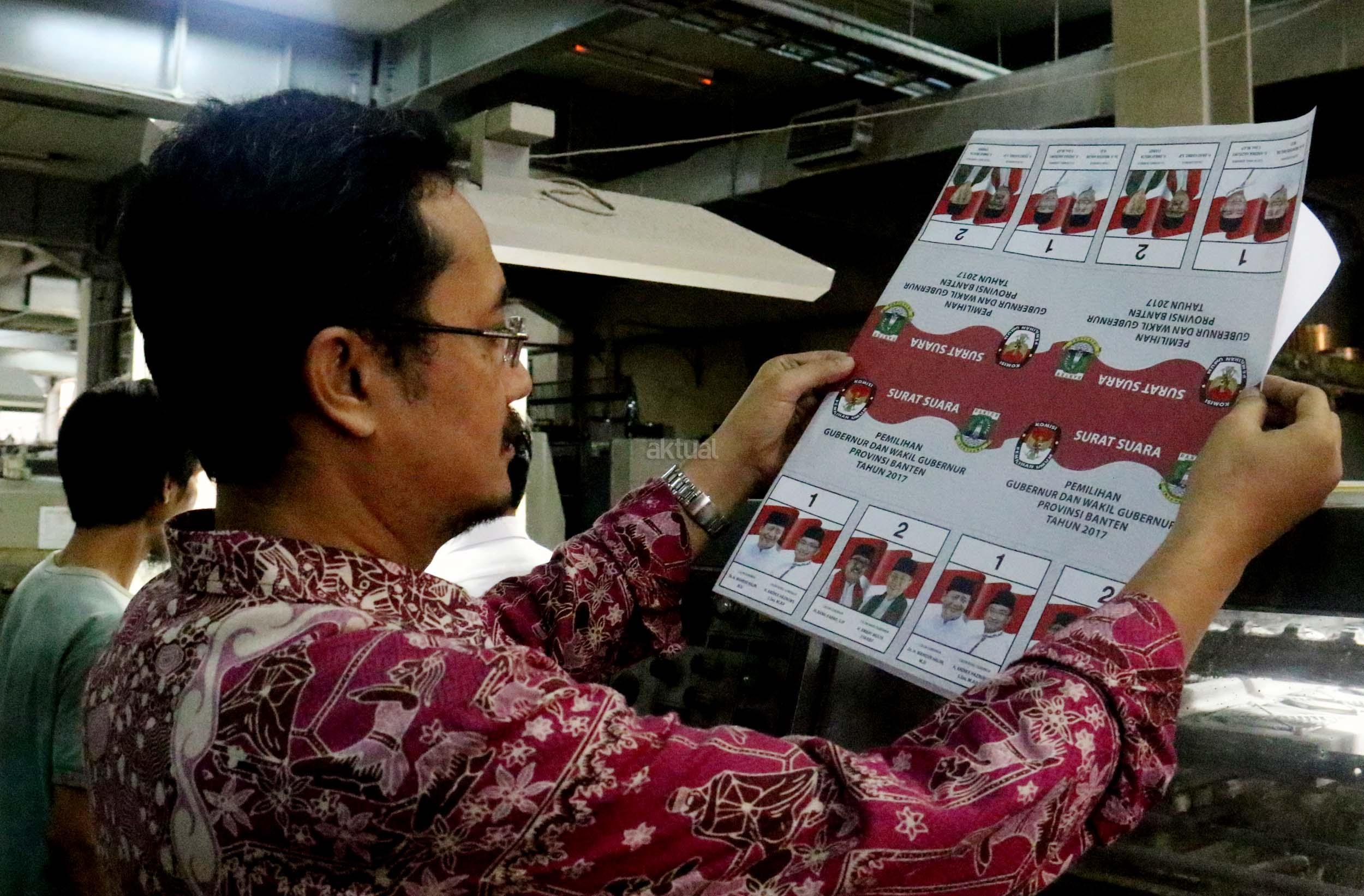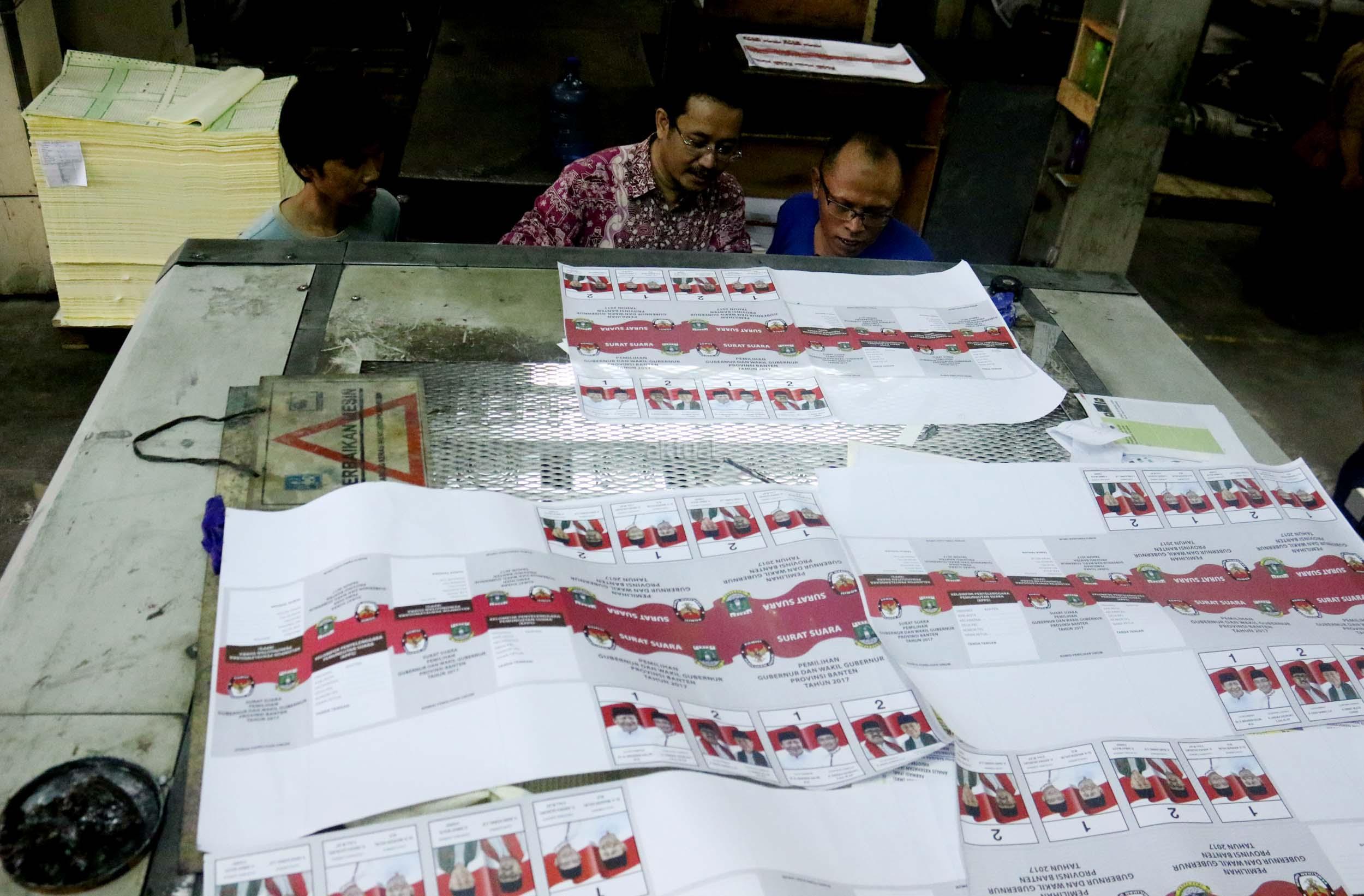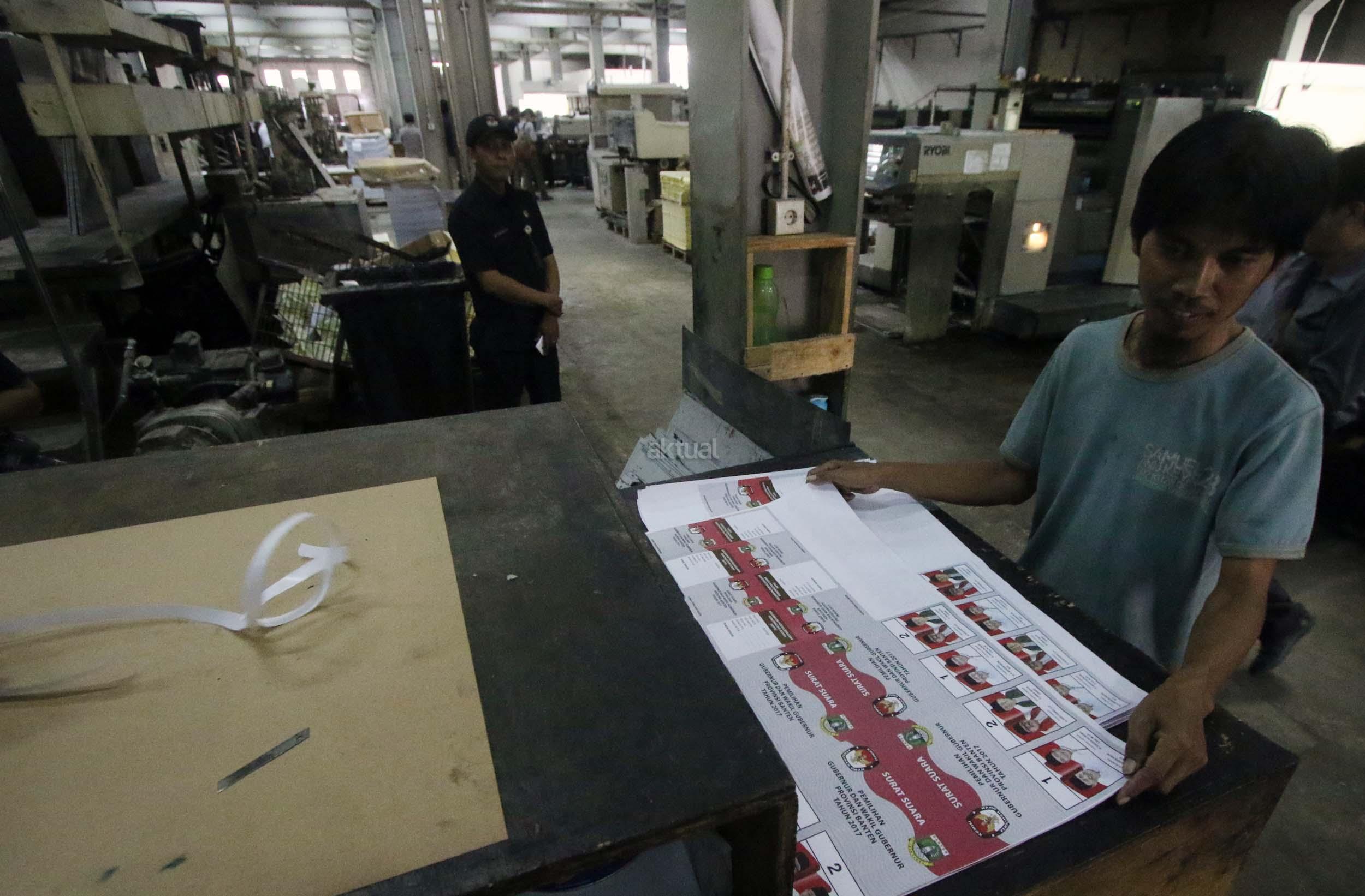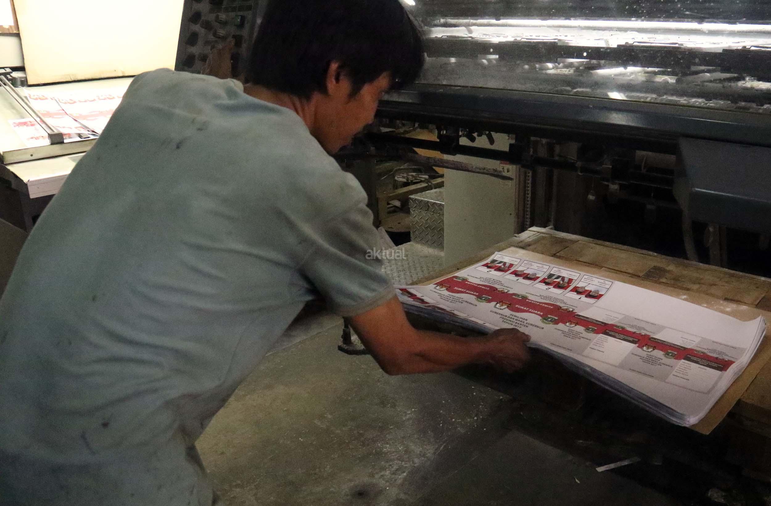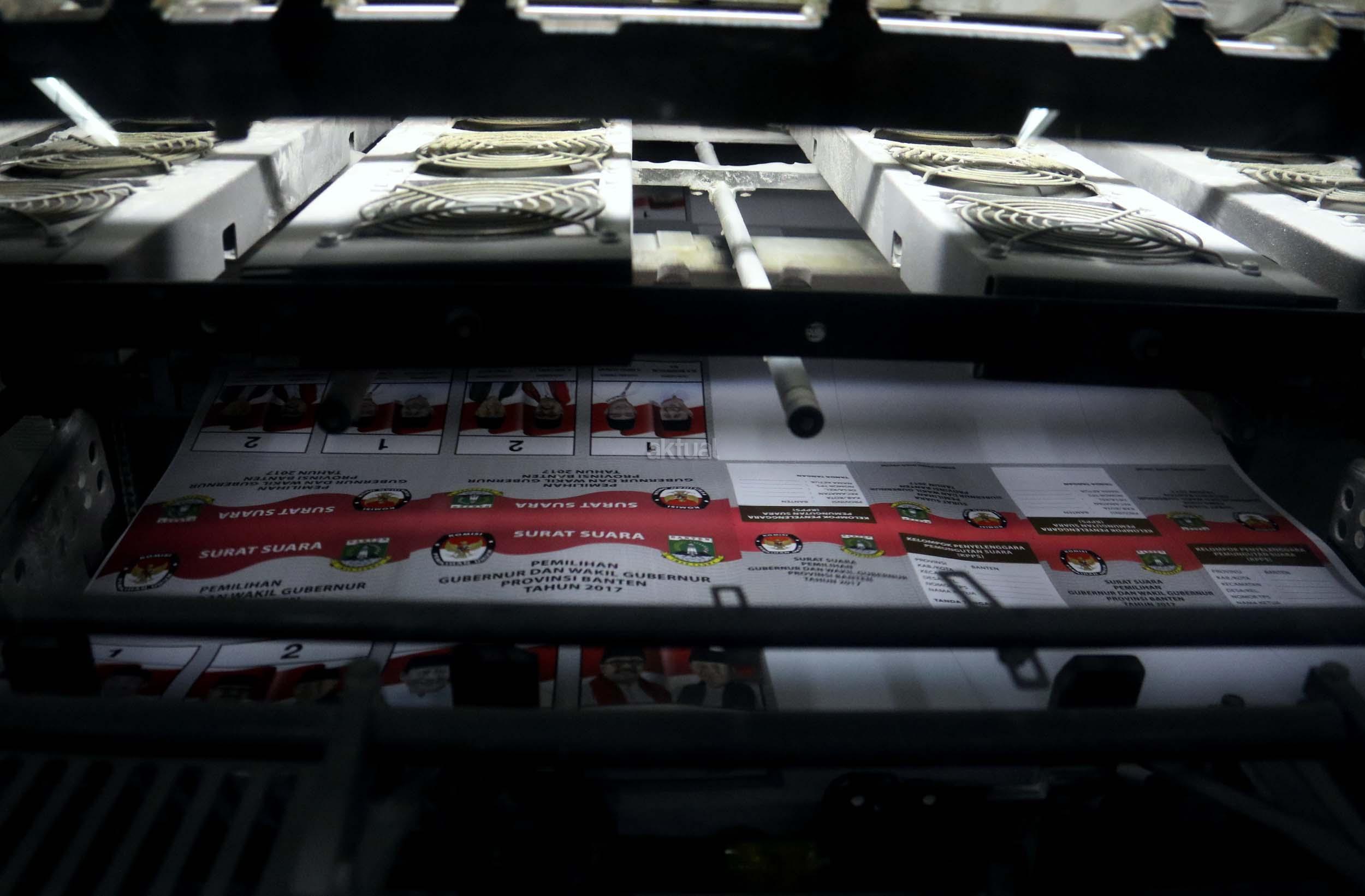 PT Dian Rakyat selaku pemenang tender mencetak kertas suara untuk Pilkada Provinsi Banten sebanyak 7.900.000 lembar surat suara dan proses cetak 4 hari dari tanggal 11-12 Januari 2017. AKTUAL/Munzir