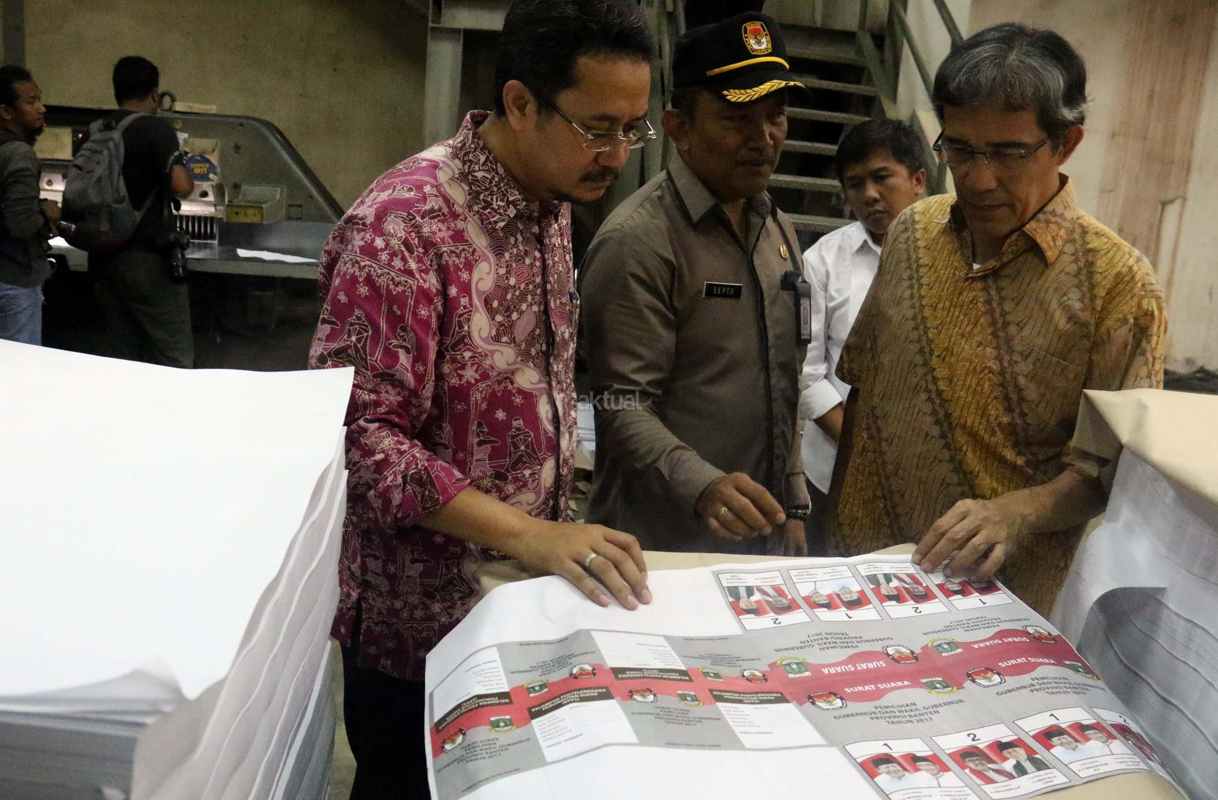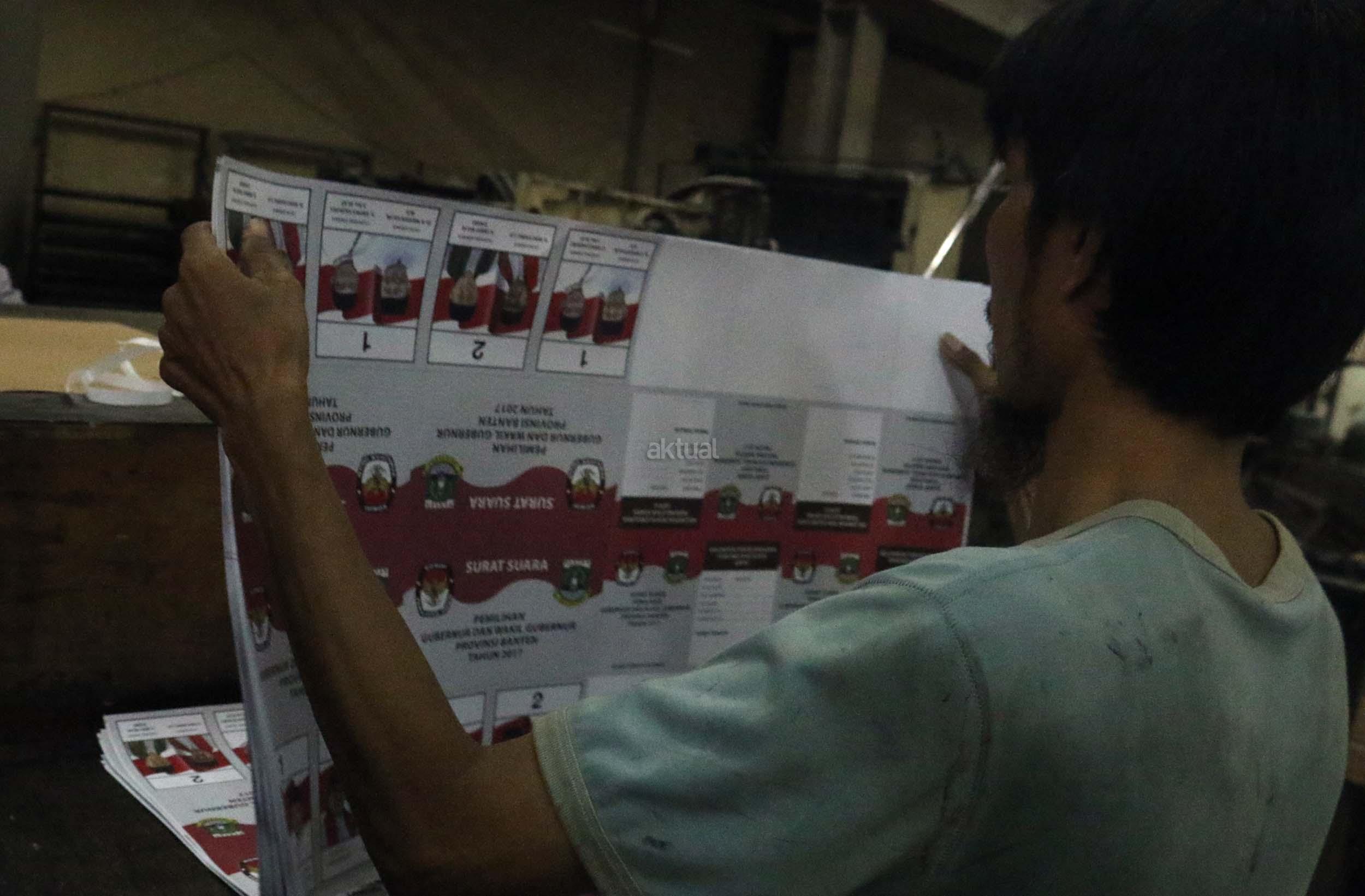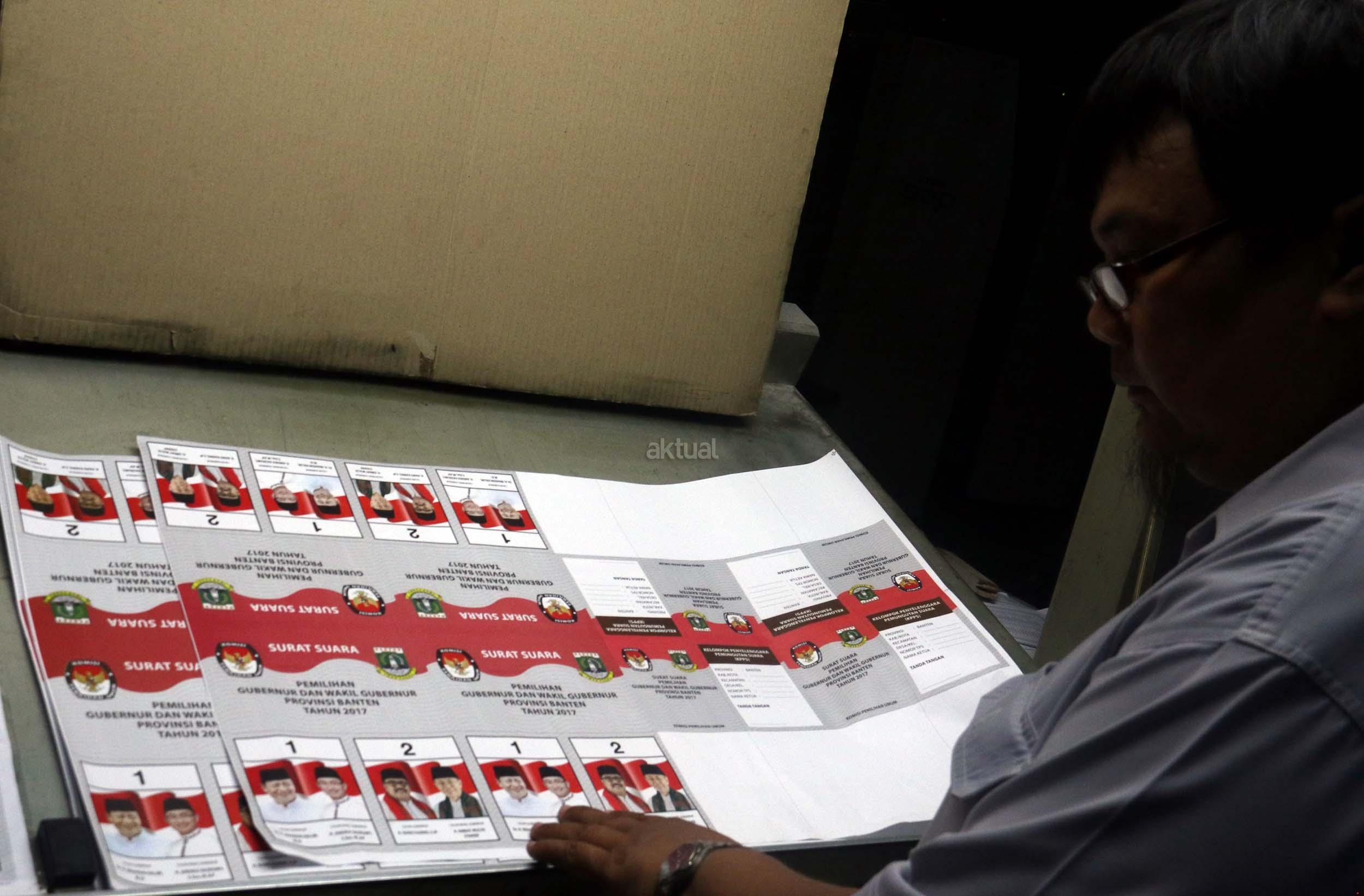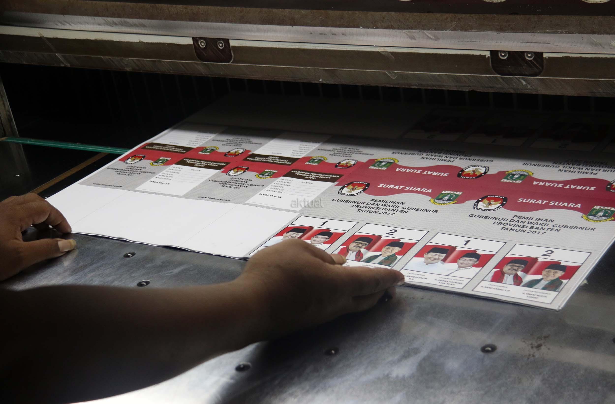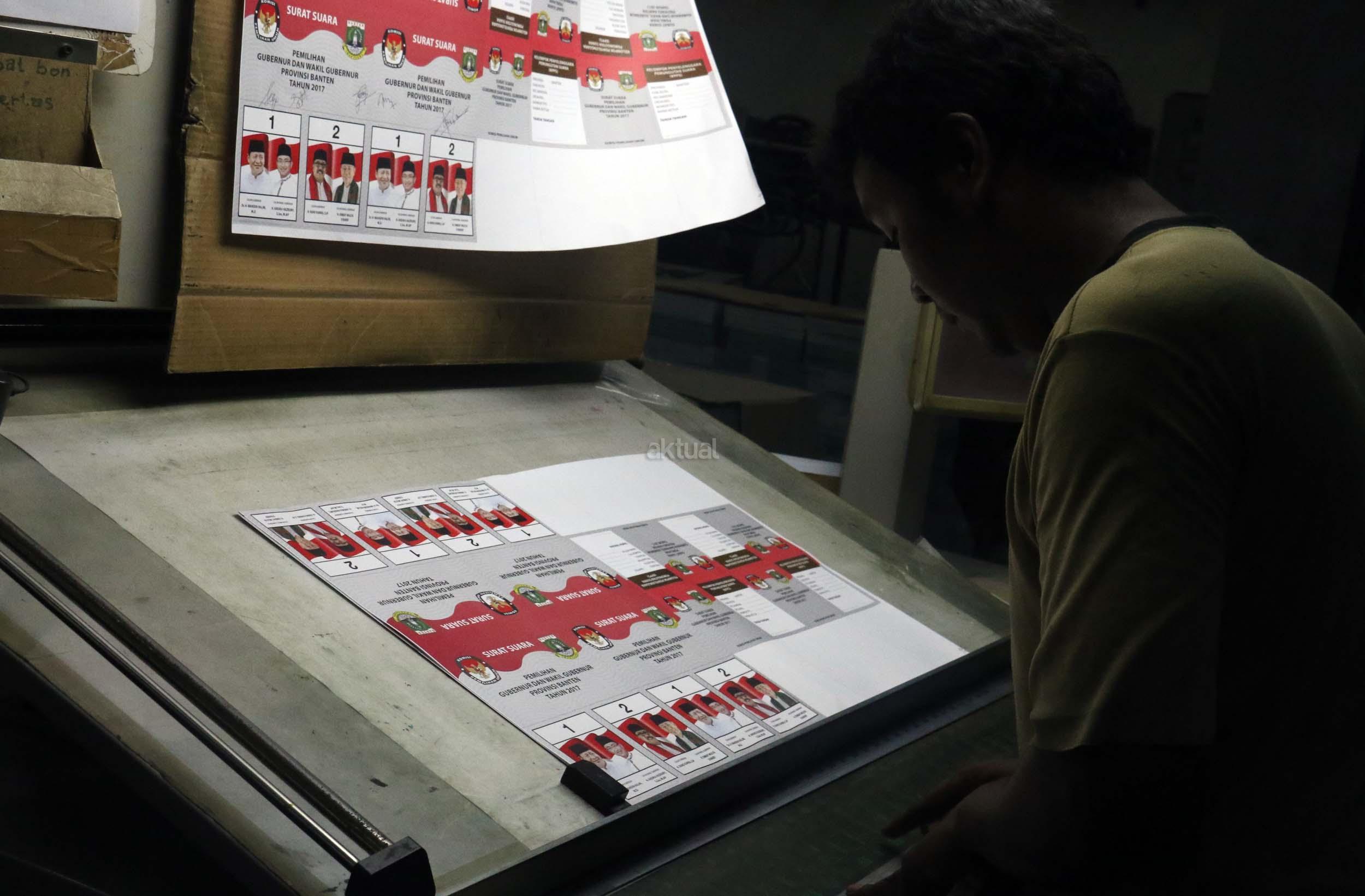 PT Dian Rakyat selaku pemenang tender mencetak kertas suara untuk Pilkada Provinsi Banten sebanyak 7.900.000 lembar surat suara dan proses cetak 4 hari dari tanggal 11-12 Januari 2017. AKTUAL/Munzir