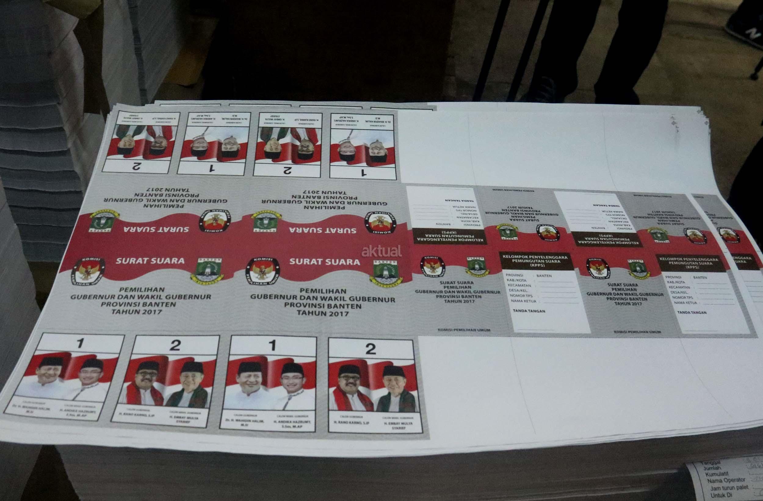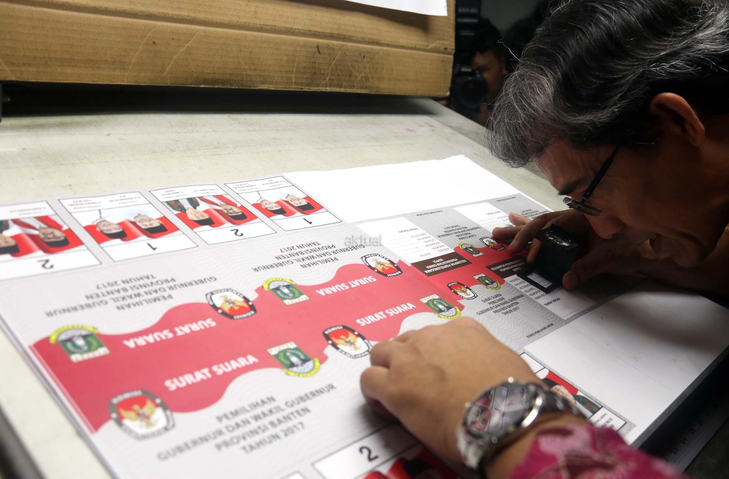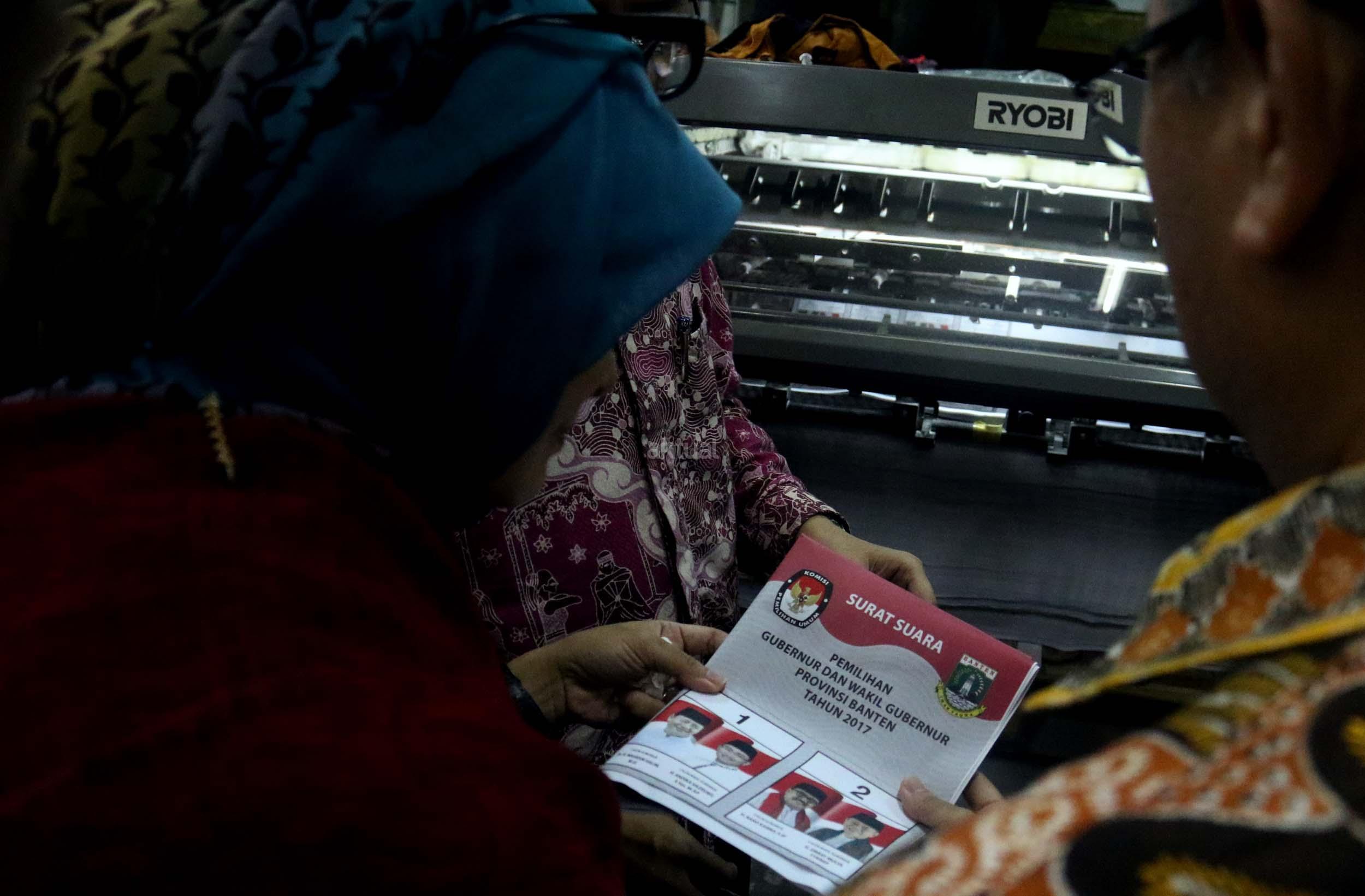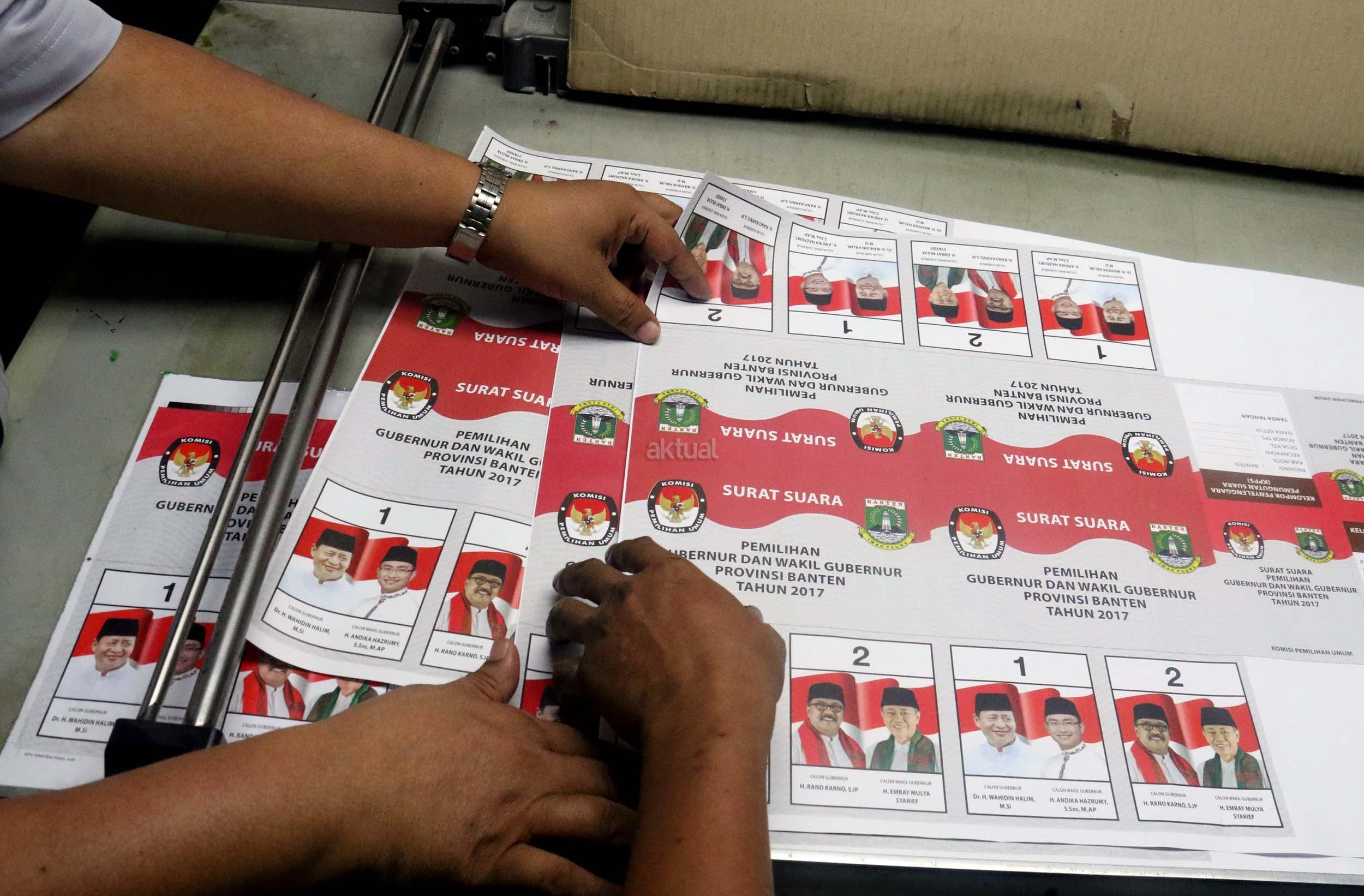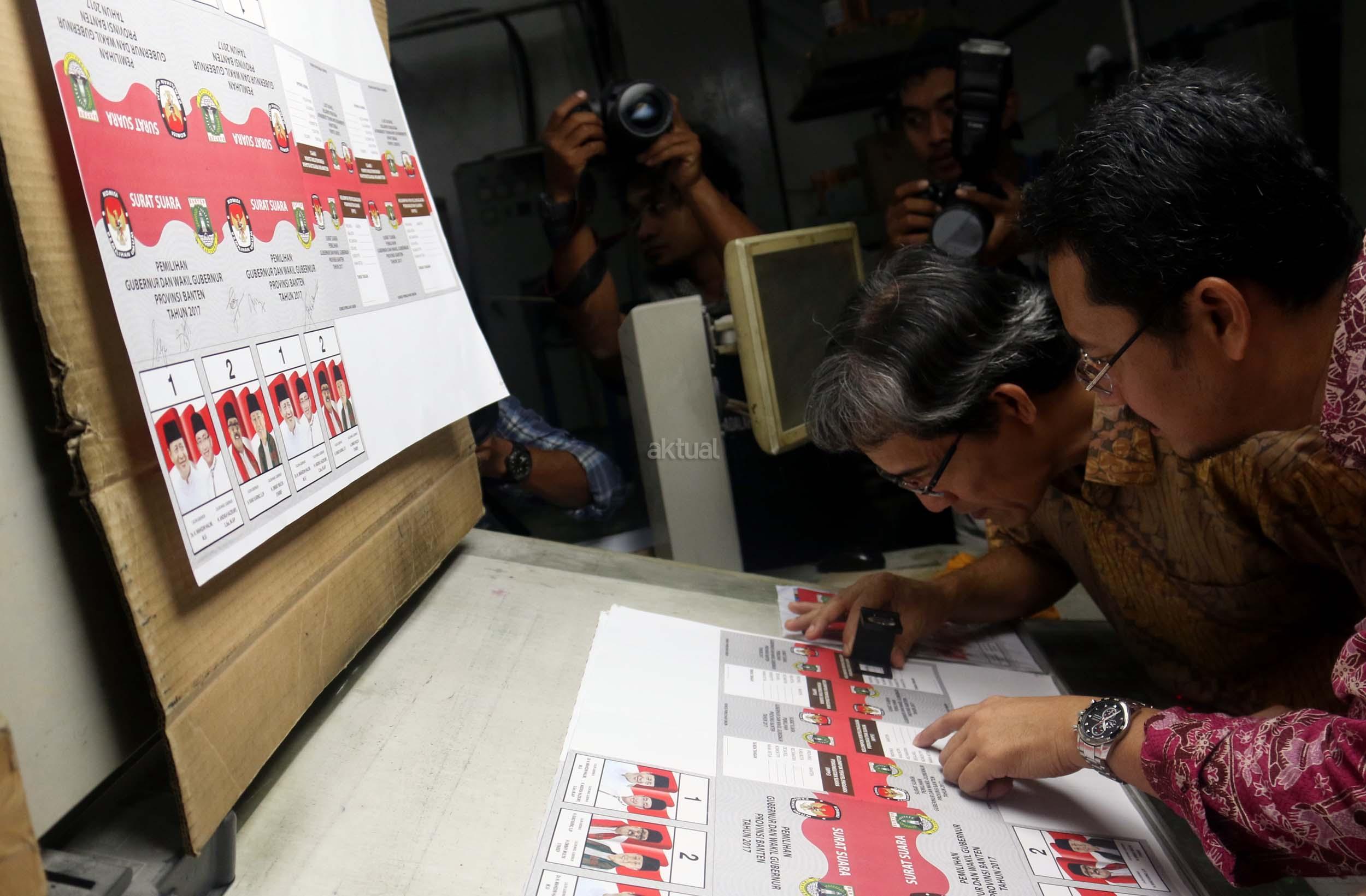 PT Dian Rakyat selaku pemenang tender mencetak kertas suara untuk Pilkada Provinsi Banten sebanyak 7.900.000 lembar surat suara dan proses cetak 4 hari dari tanggal 11-12 Januari 2017. AKTUAL/Munzir