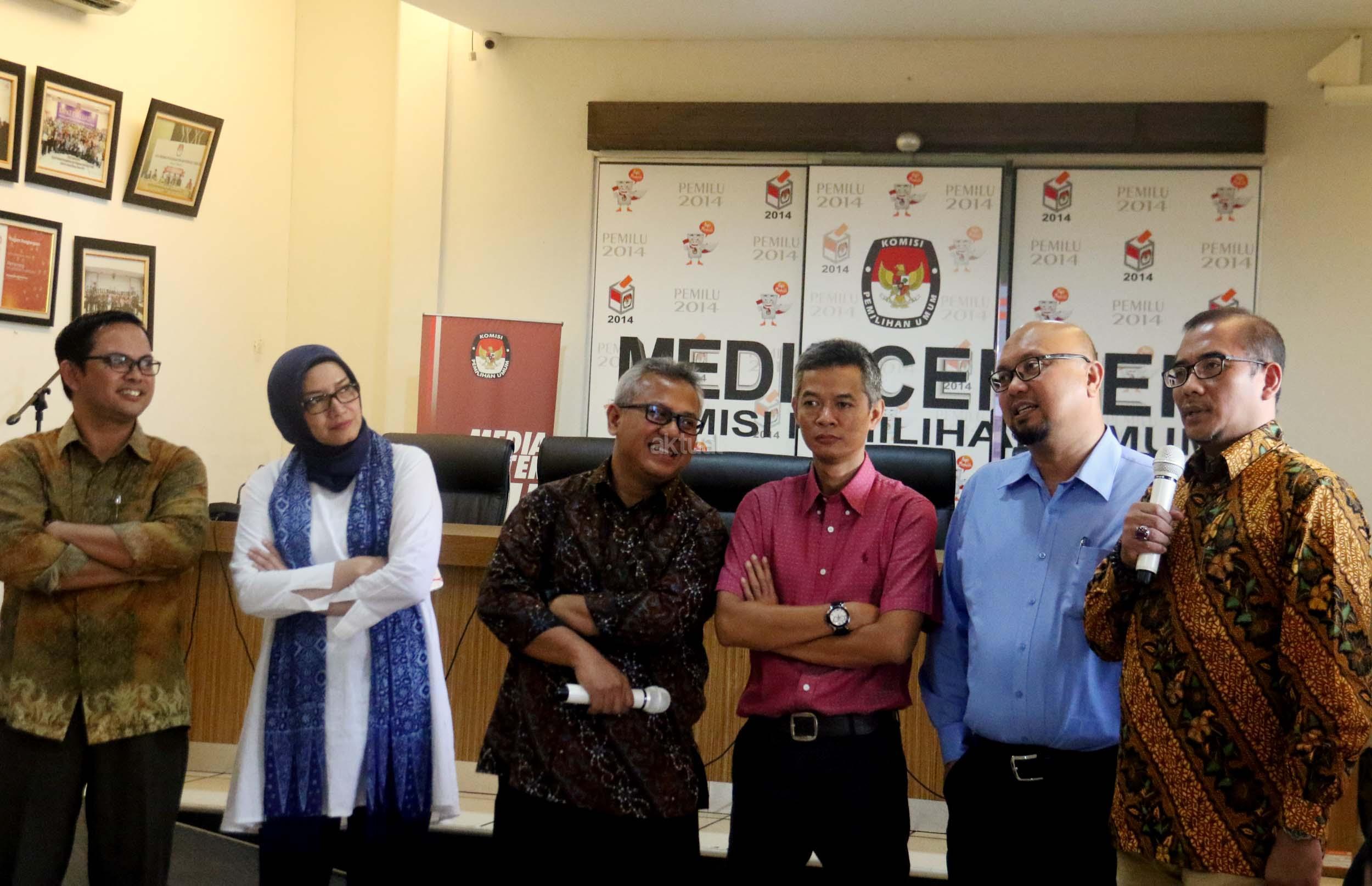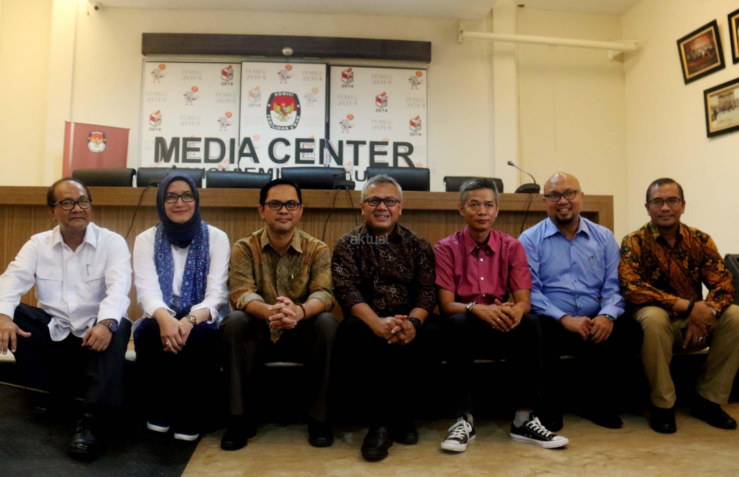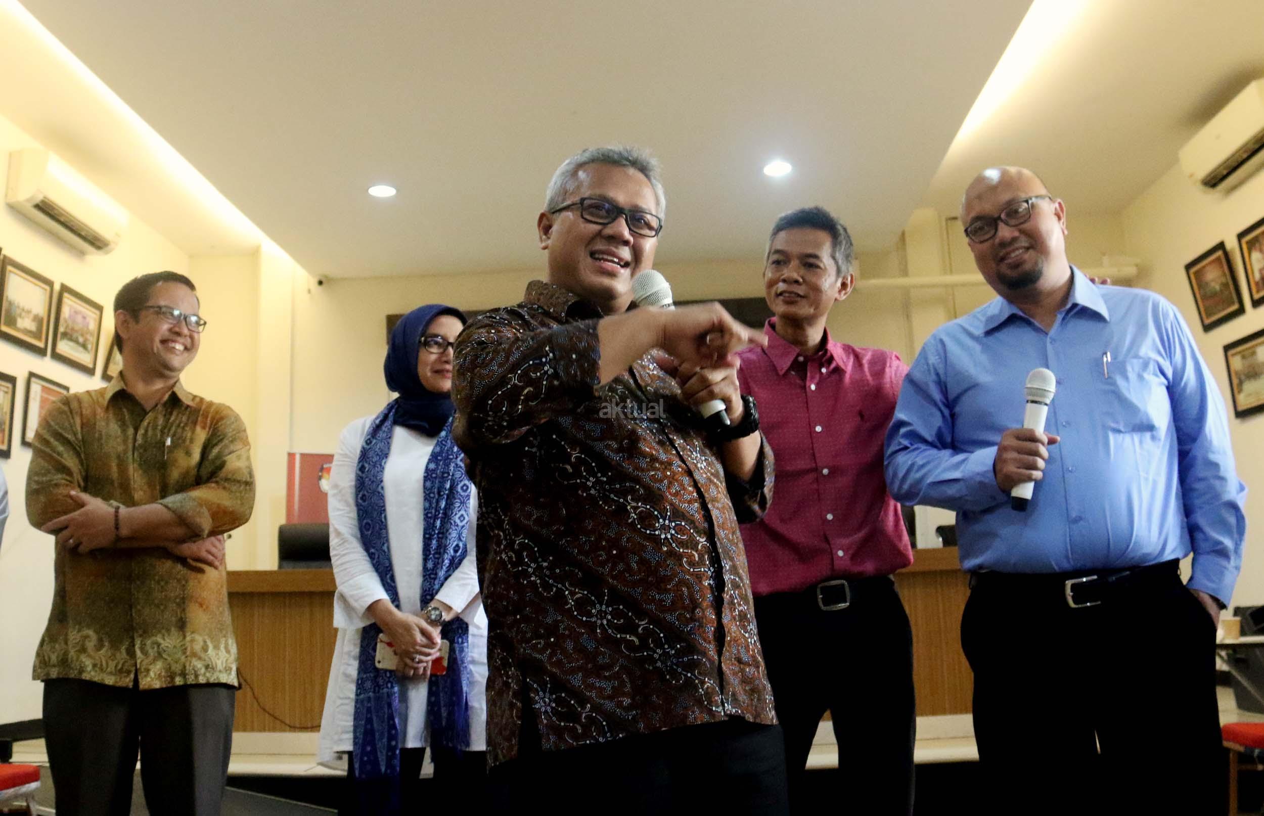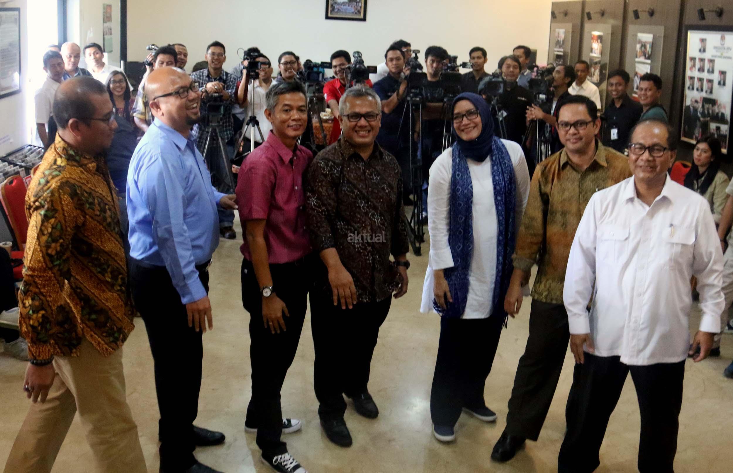 Kiri-kanan ; Komisioner KPU RI Viryan, Komisioner KPU RI Evi Novida Ginting Manik, Ketua KPU RI Arief Budiman , Komisioner KPU RI Wahyu Setiawan, Komisioner KPU RI Iham Saputra, Komisioner KPU RI Hasyim Asyari saat acara Coffe morning di kantor KPU RI, Jakarta, Selasa (2/5/2017). Dalam acara coffe morning Komisinoer KPU RI bersama awak media mendiskusikan Rancangan Undang-undang Pemilu yang belum terselesaikan dan di targetkan penyelesaian RUU Pemilu di akhir Mei 2017. AKTUAL/Munzir