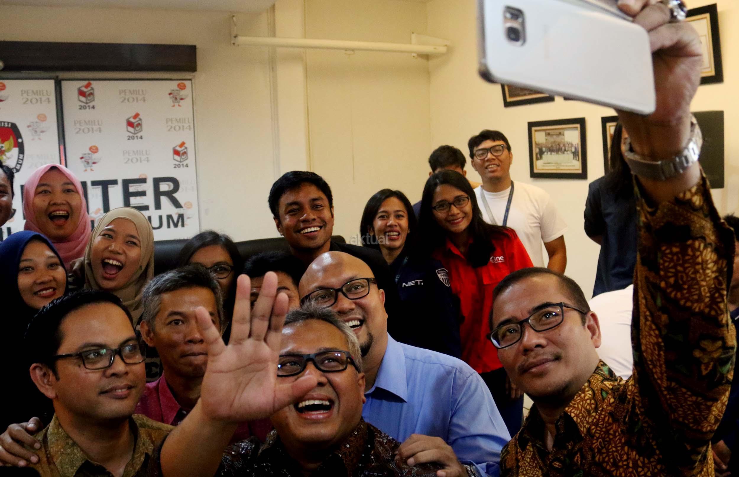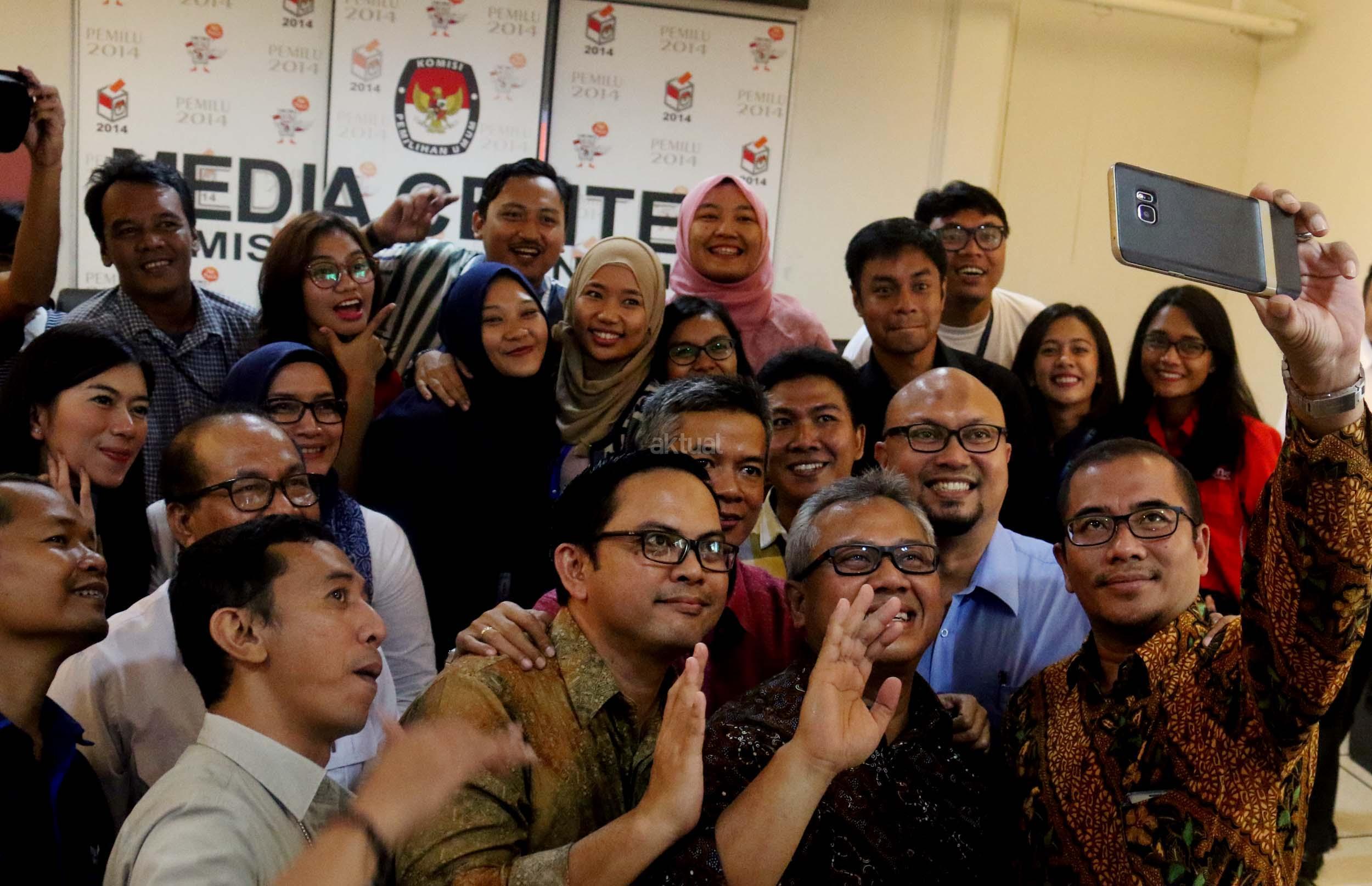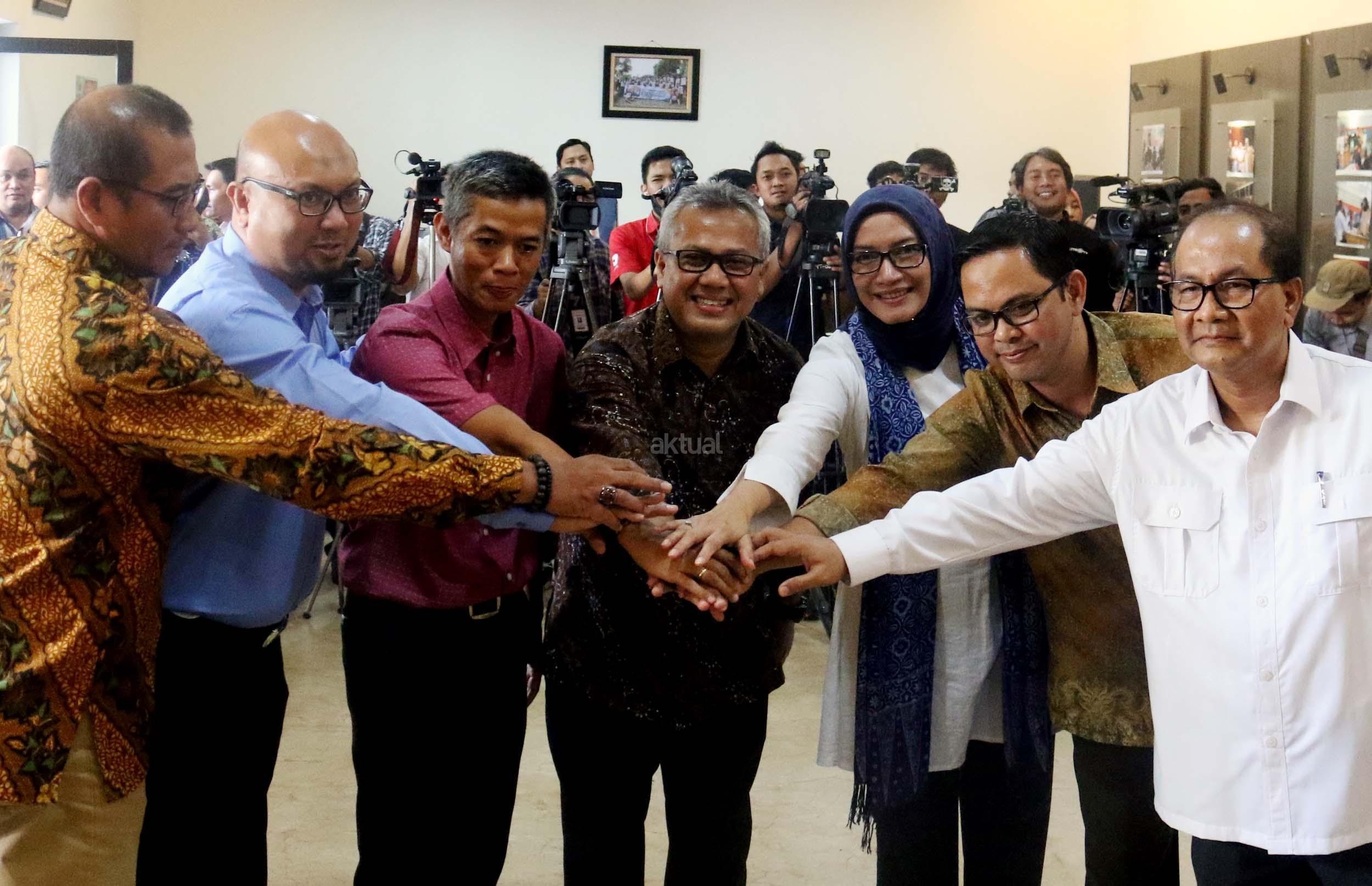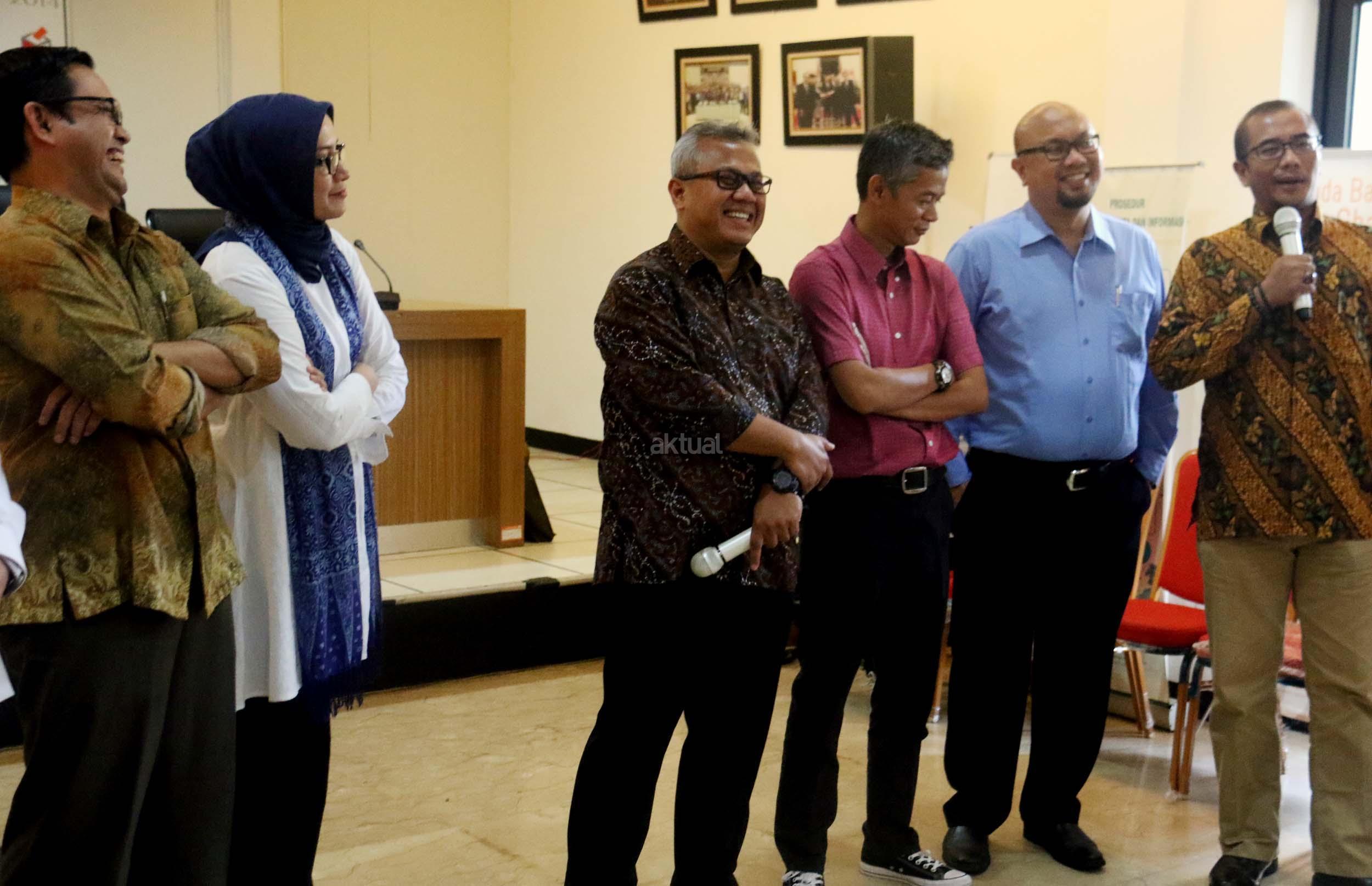 Kiri-kanan ; Komisioner KPU RI Viryan, Komisioner KPU RI Evi Novida Ginting Manik, Ketua KPU RI Arief Budiman , Komisioner KPU RI Wahyu Setiawan, Komisioner KPU RI Iham Saputra, Komisioner KPU RI Hasyim Asyari saat acara Coffe morning di kantor KPU RI, Jakarta, Selasa (2/5/2017). Dalam acara coffe morning Komisinoer KPU RI bersama awak media mendiskusikan Rancangan Undang-undang Pemilu yang belum terselesaikan dan di targetkan penyelesaian RUU Pemilu di akhir Mei 2017. AKTUAL/Munzir