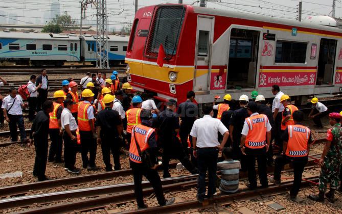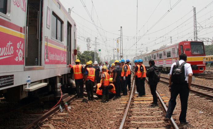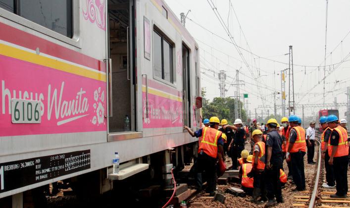 KRL Commuter Line tujuan Bekasi-Jakarta Kota mengalami anjlok saat akan masuk ke Stasiun Manggarai, Jakarta Selatan. Anjloknya KRL ini membuat sejumlah perjalanan Commuter Line dialihkan.