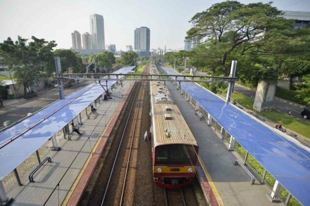 Rangkaian Kereta Rel Listrik (KRL) Commuterline melintas di Stasiun Tanah Abang, Jakarta, Selasa (5/7). KRL Commuter Line tetap beroperasi dengan jadwal seperti biasa pada masa libur Lebaran tahun 2016, PT KAI Commuter Jabodetabek (KCJ) sebagai operator KRL Commuter Line tidak akan mengurangi jumlah perjalanan KRL, hal itu merupakan bentuk pelayanan KCJ bagi masyarakat yang ingin mudik maupun berlibur di sekitar wilayah Jabodetabek pada masa lebaran tahun ini. ANTARA FOTO/Yudhi Mahatma/aww/16.