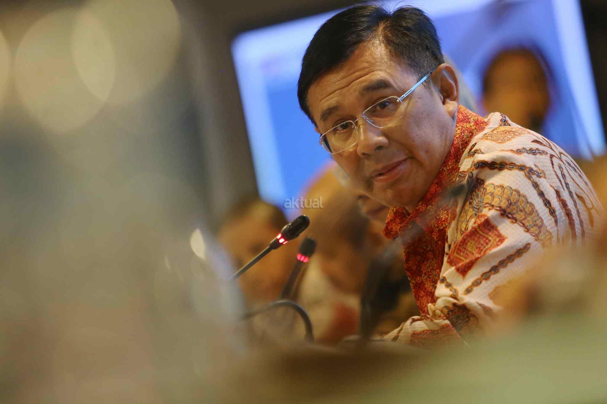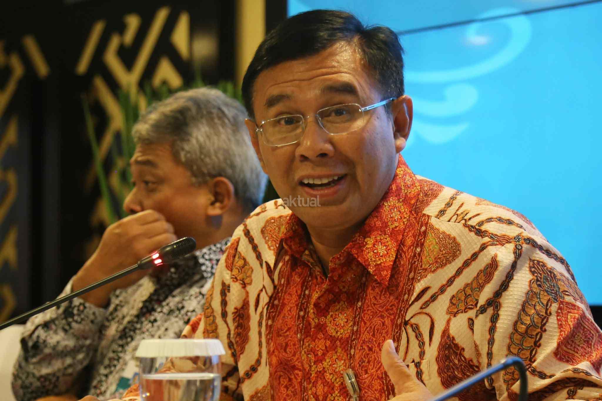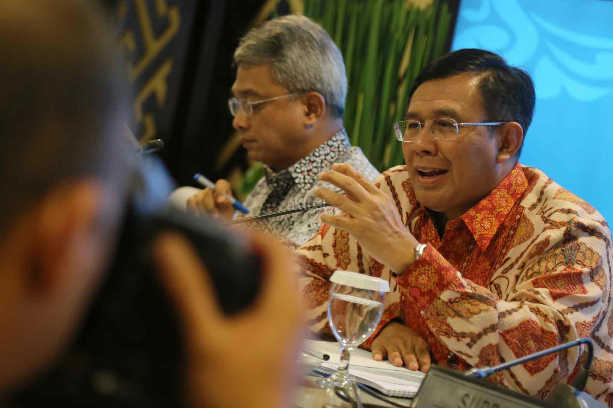 Direktur Utama PT Bank Negara Indonesia Tbk (BNI) Achmad Baiquni didampingi jajaran direksi BNI saat paparan kinerja di Jakarta, Kamis (13/10). BNI mencatatkan laba bersih sebesar Rp 7,72 triliun pada kuartal lll 2016.