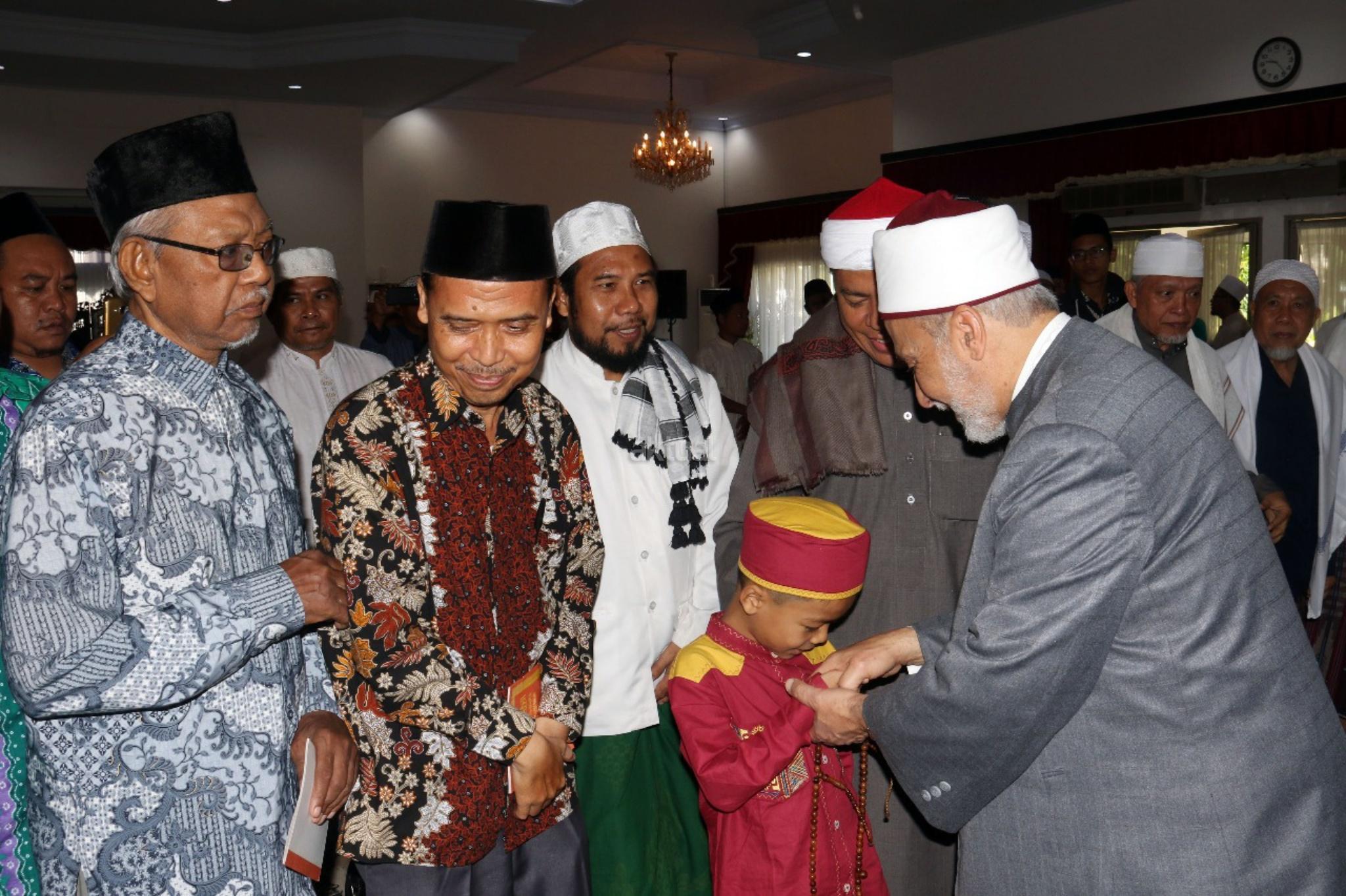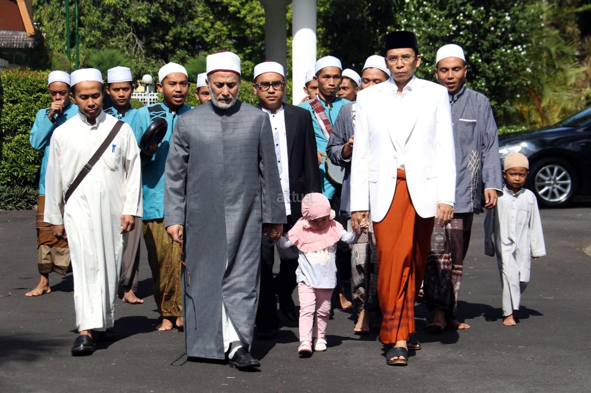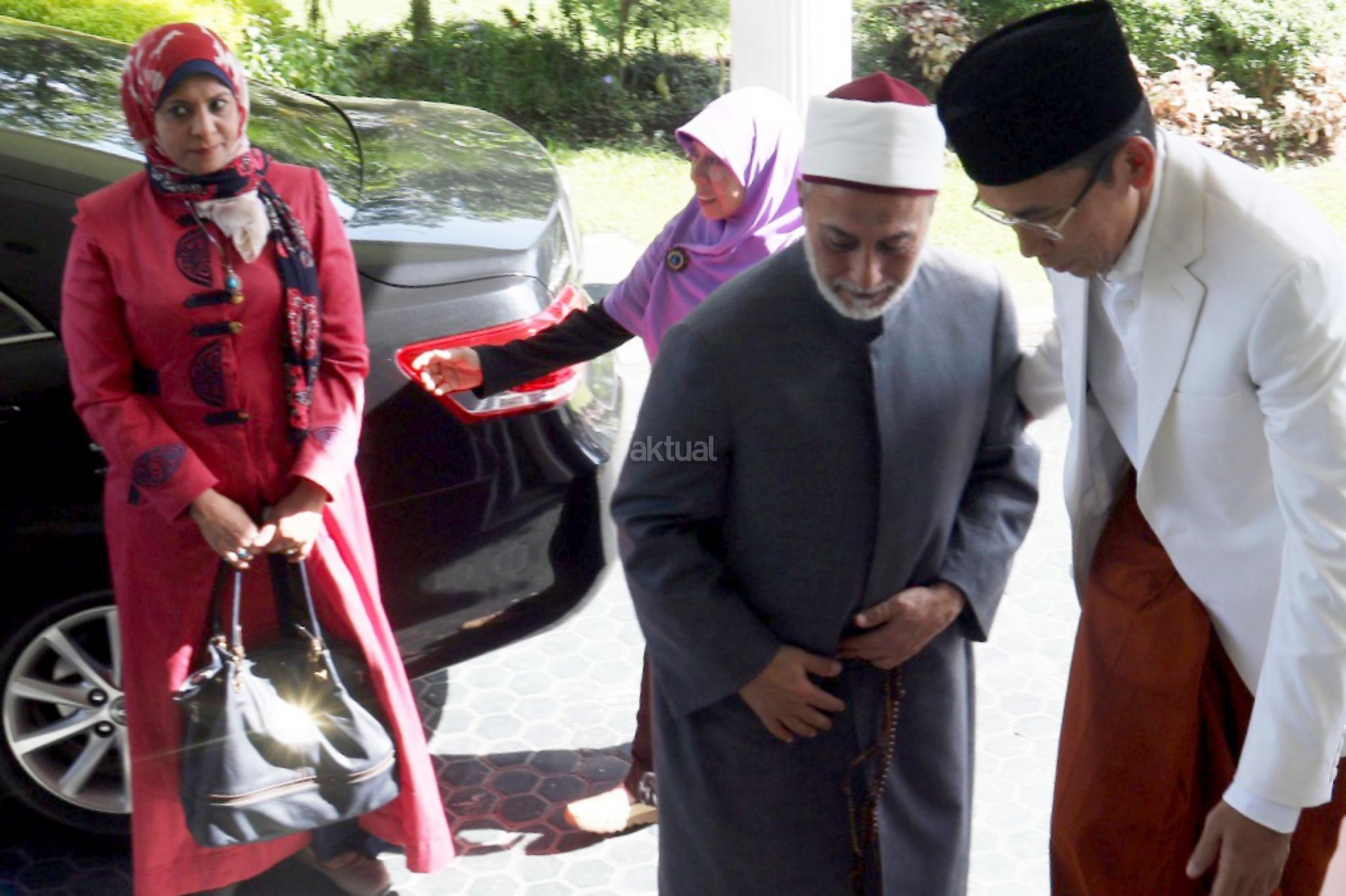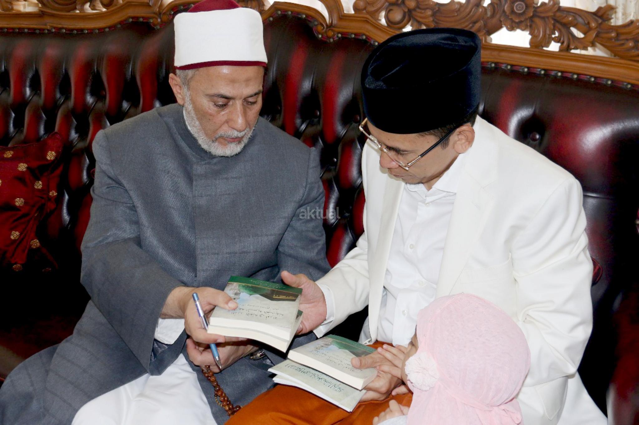Maulana Syekh Dr. Yusri Rusydi Sayyid Jabr al-Hasani disambut di rumah Dinas Gubernur Nusa Tenggara Barat (NTB), Dr. TGB. Muhammad Zainul Majdi di NTB, Minggu, (7/1/2018). Dalam kunjungannya Syekh Yusri memberikan ijazah awrad kepada Tuan Guru Bajang yang juga merupakan Ketua Umum IAAI (Internasional Alumni Al-Azhar) cabang Indonesia. AKTUAL/Ahmad Warnoto