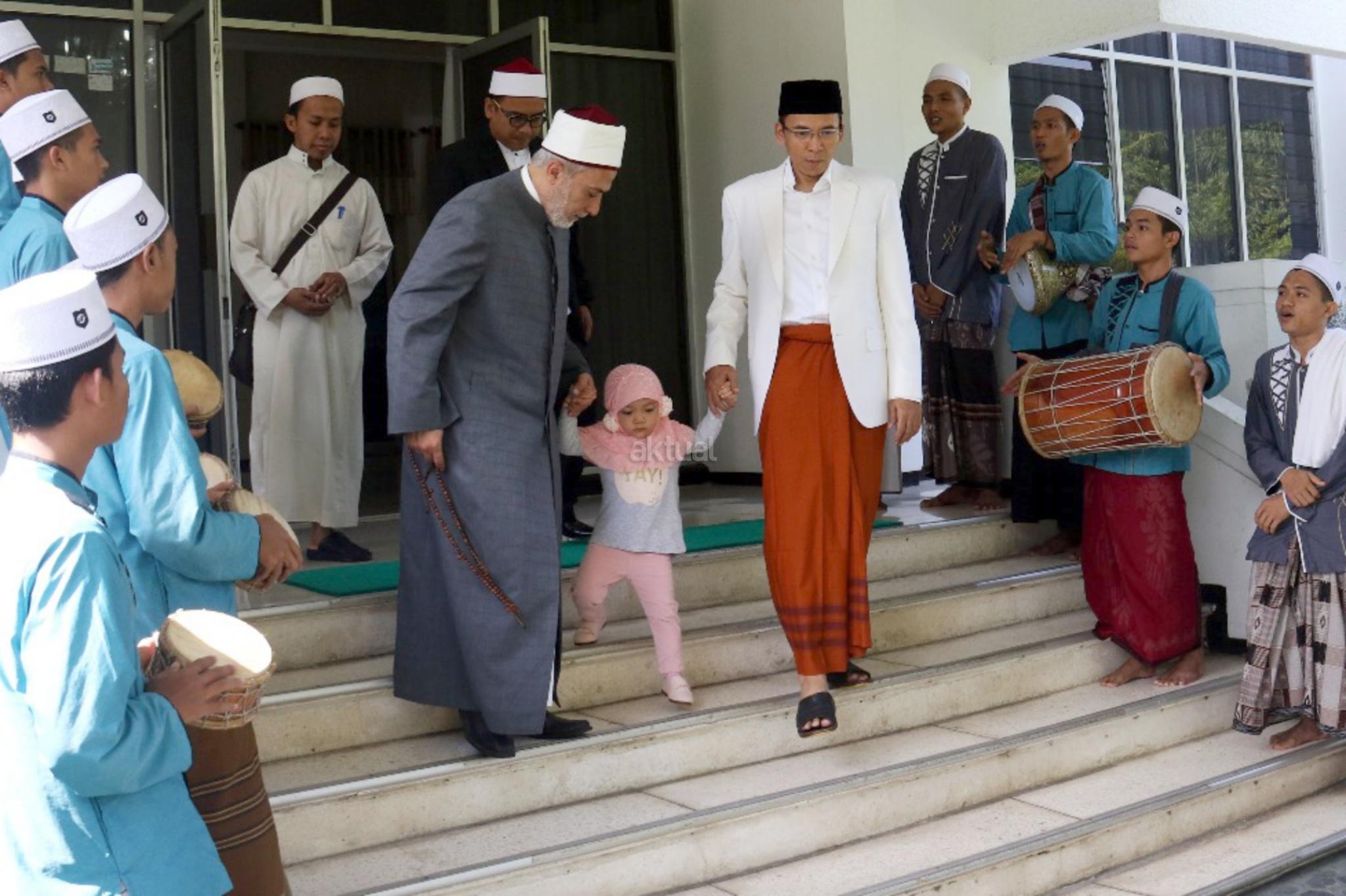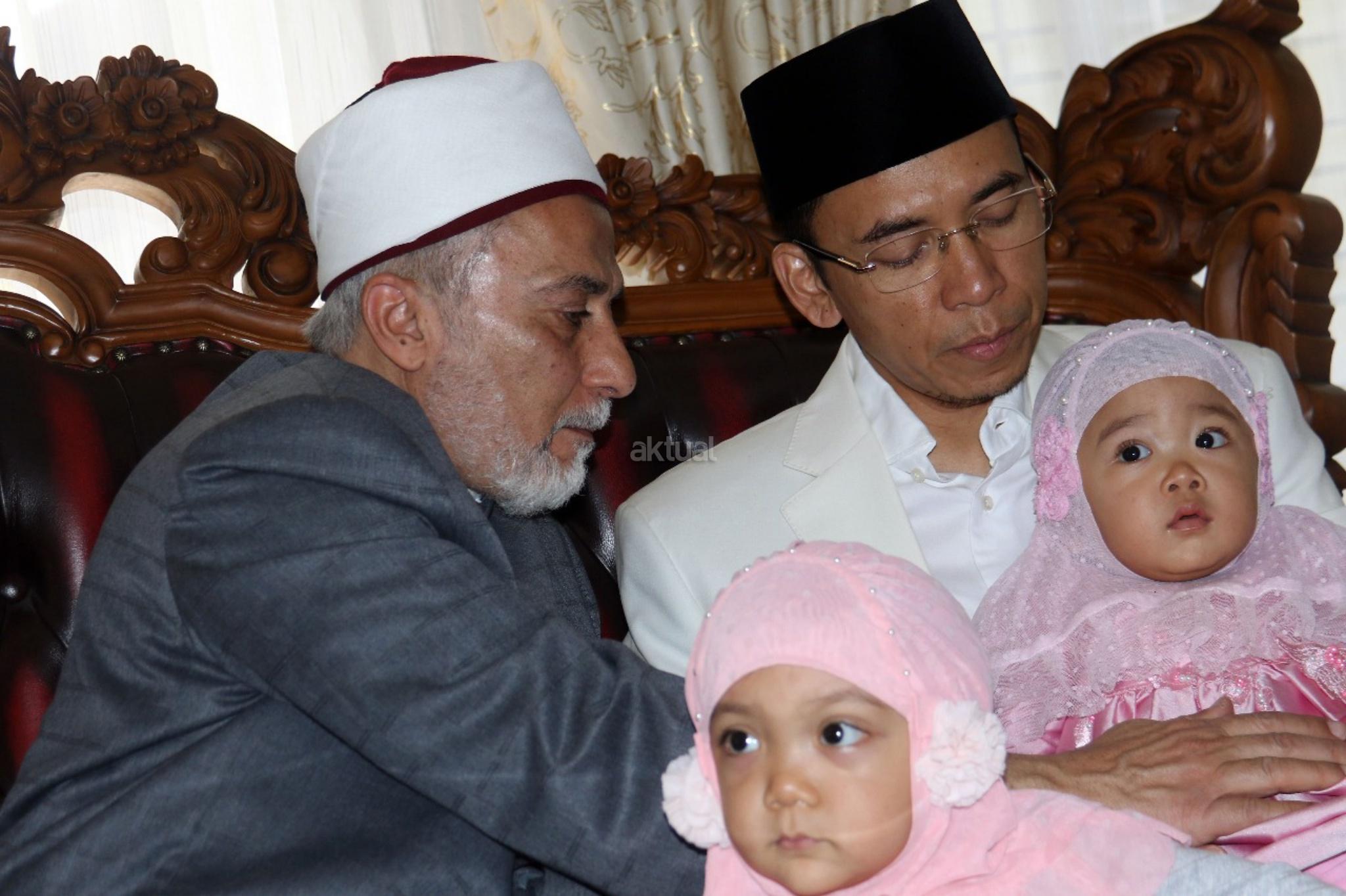 Maulana Syekh Dr. Yusri Rusydi Sayyid Jabr al-Hasani bersama Istri disambut Gubernur Nusa Tenggara Barat (NTB), Dr. TGB. Muhammad Zainul Majdi dan Istri di rumah Dinas Gubernur NTB, Minggu, (7/1/2018). Dalam kunjungannya Syekh Yusri memberikan ijazah awrad kepada Tuan Guru Bajang yang juga merupakan Ketua Umum IAAI (Internasional Alumni Al-Azhar) cabang Indonesia. AKTUAL/Ahmad Warnoto