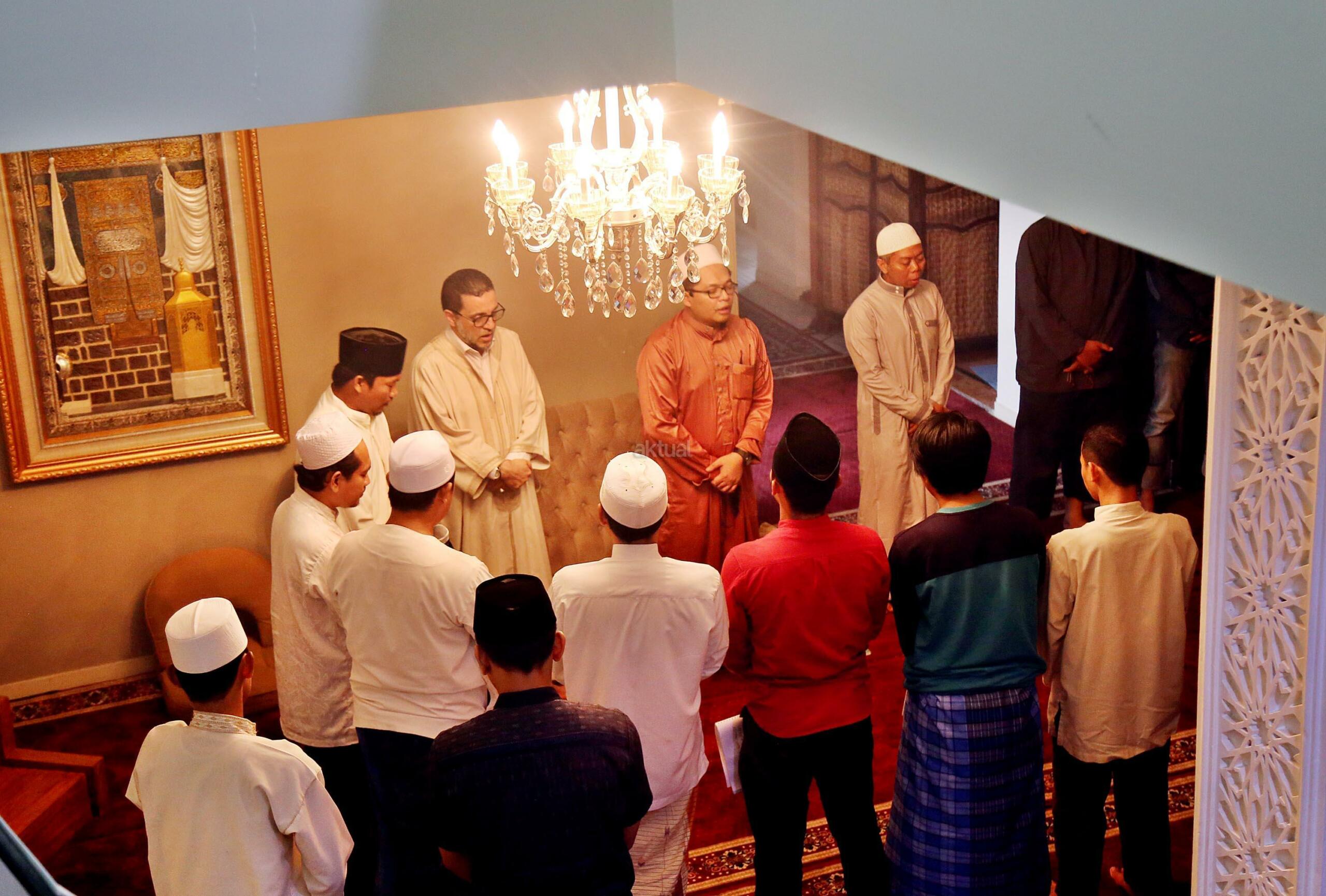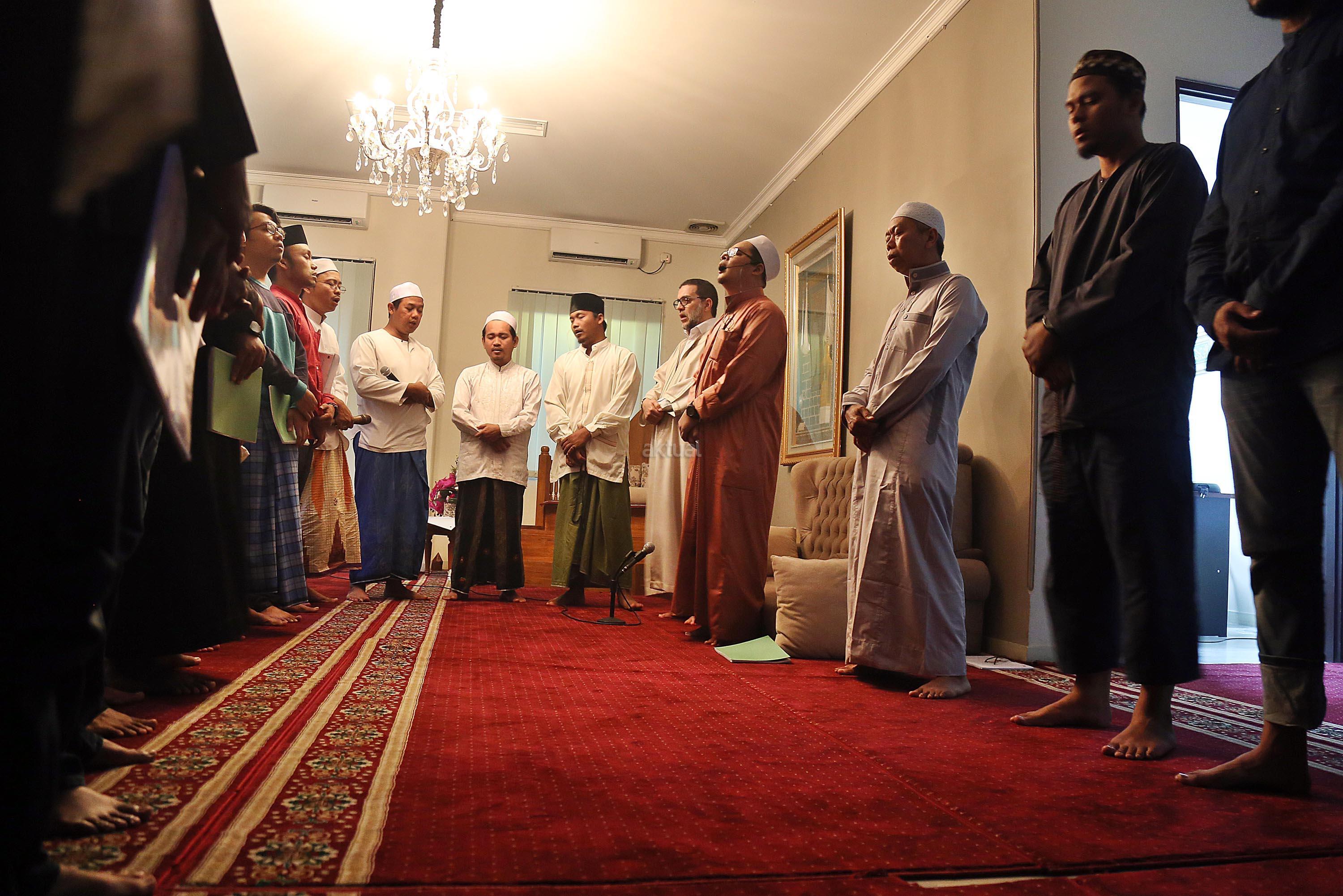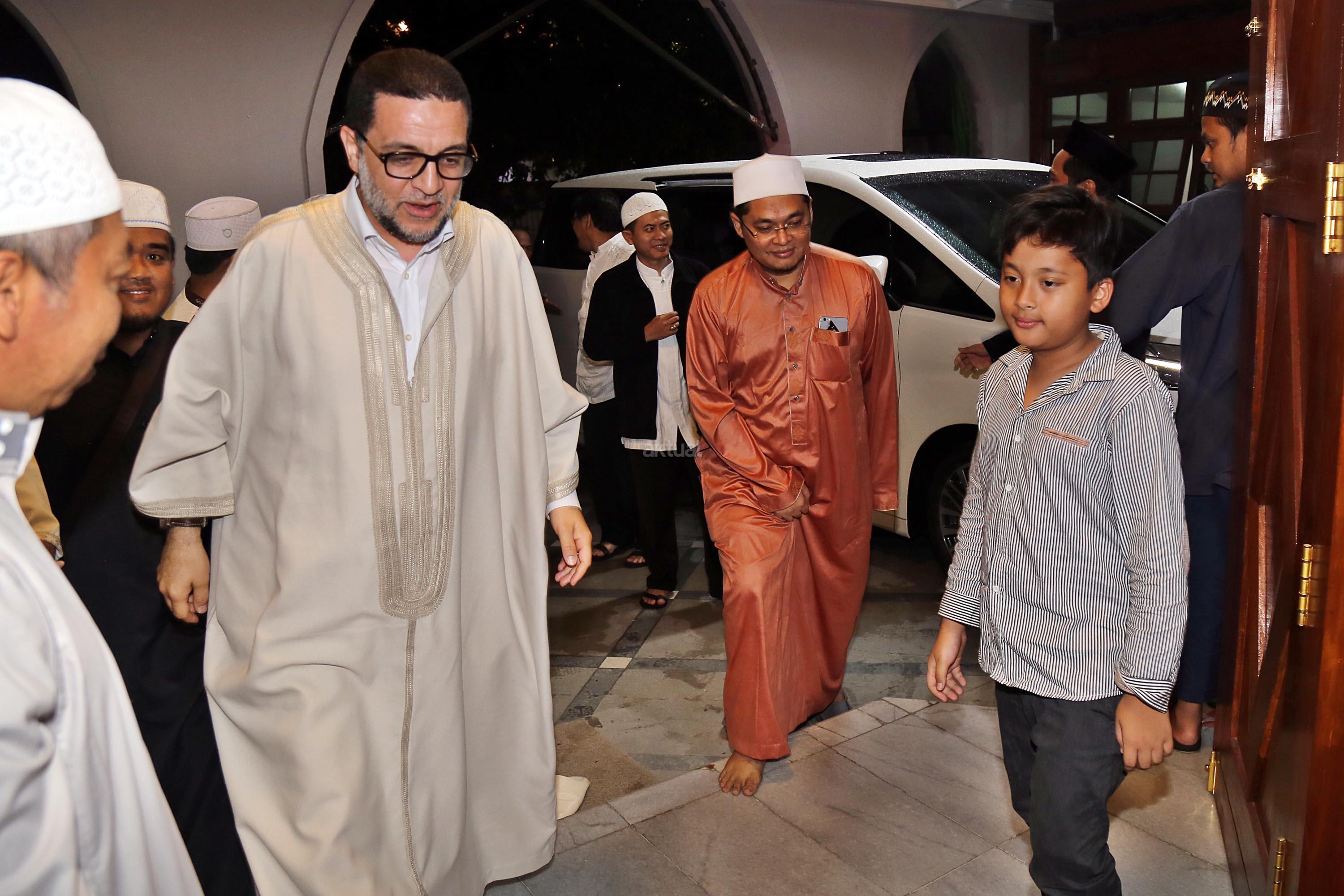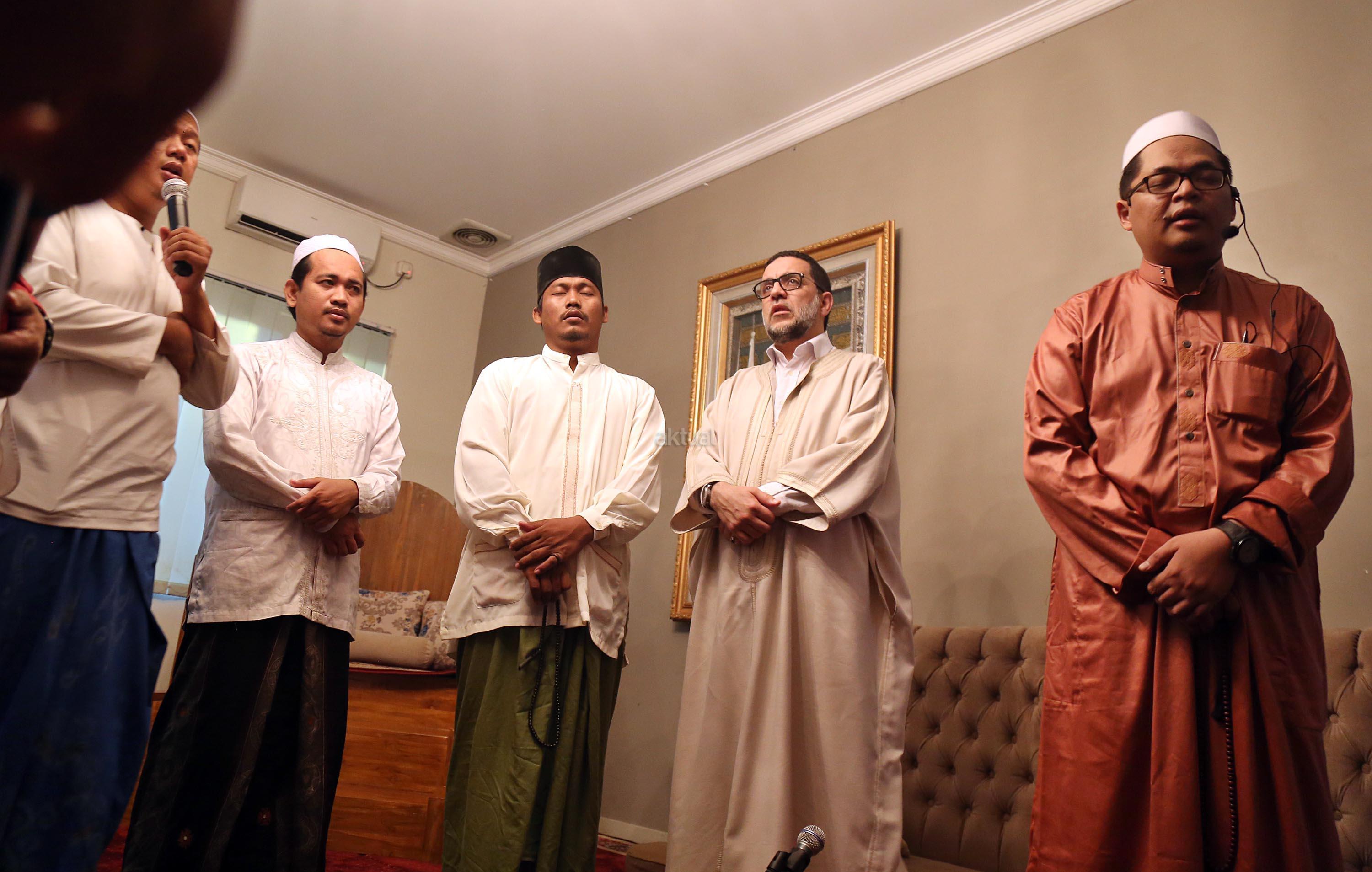 Pemegang Estafet Kepemimpinan Zawiyah Thariqah Shiddiqiyyah Syadziliyah Tangier Maroko, Dr. Abdul Mun'im bin Abdul Aziz bin Shiddiq al-Ghumari didampingi Khodim Zawiyah Arraudhah Al Akh Muhammad Danial Nafis saat mengunjungi Zawiyah Arraudhah Jalan Tebet Barat VIII, No 50, Jakarta Selatan, Senin (1/5). Syekh Mun'im bertemu dengan para Ahbab dan ikut serta dalam zikir berjamaah. Dalam Safari dakwah di Indonesia ini, beliau diagendakan akan berkunjung dan bersilaturahmi ke beberapa lembaga dan pesantren serta bertemu dengan tokoh-tokoh Islam di Indonesia. AKTUAL/Tino Oktaviano