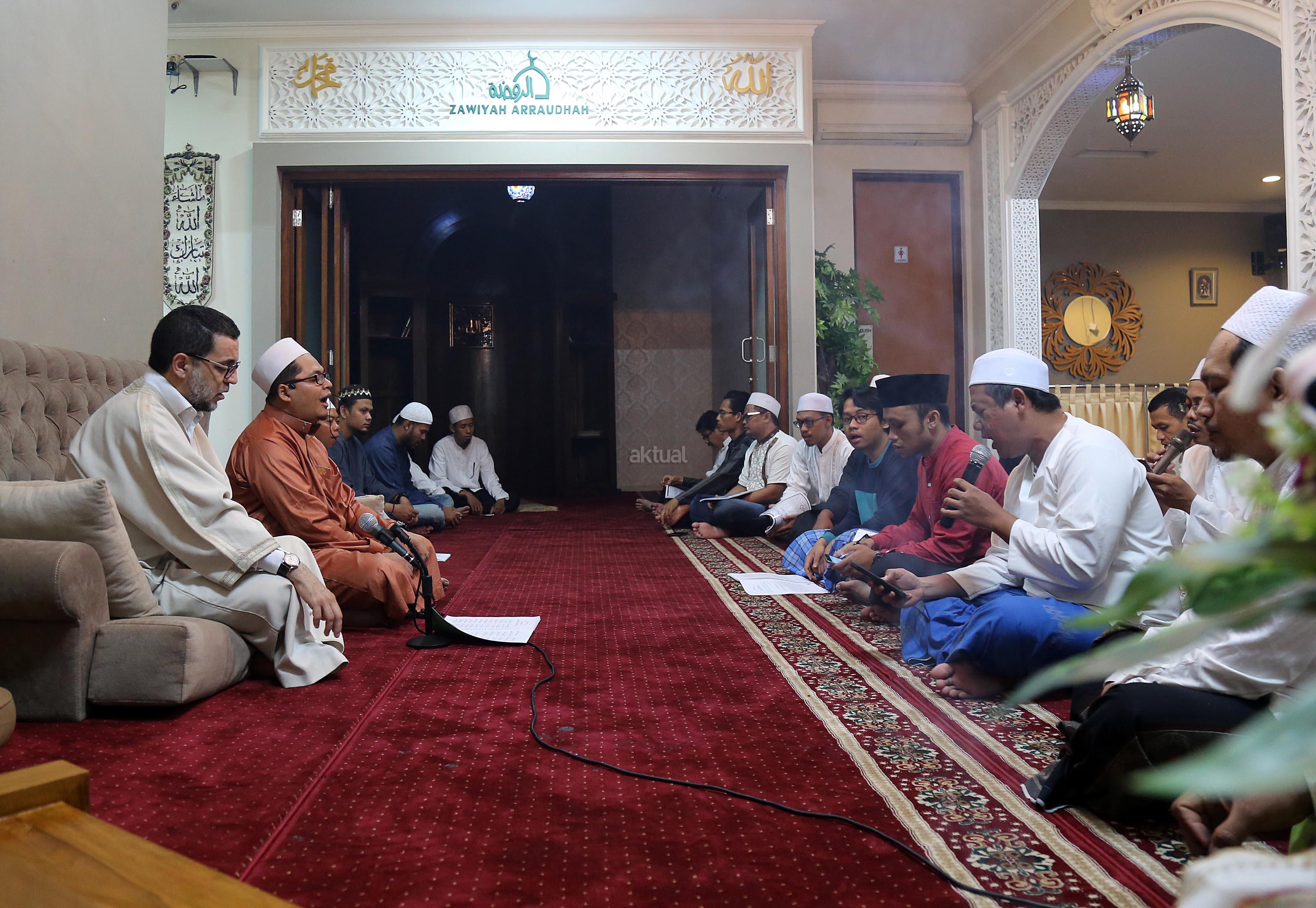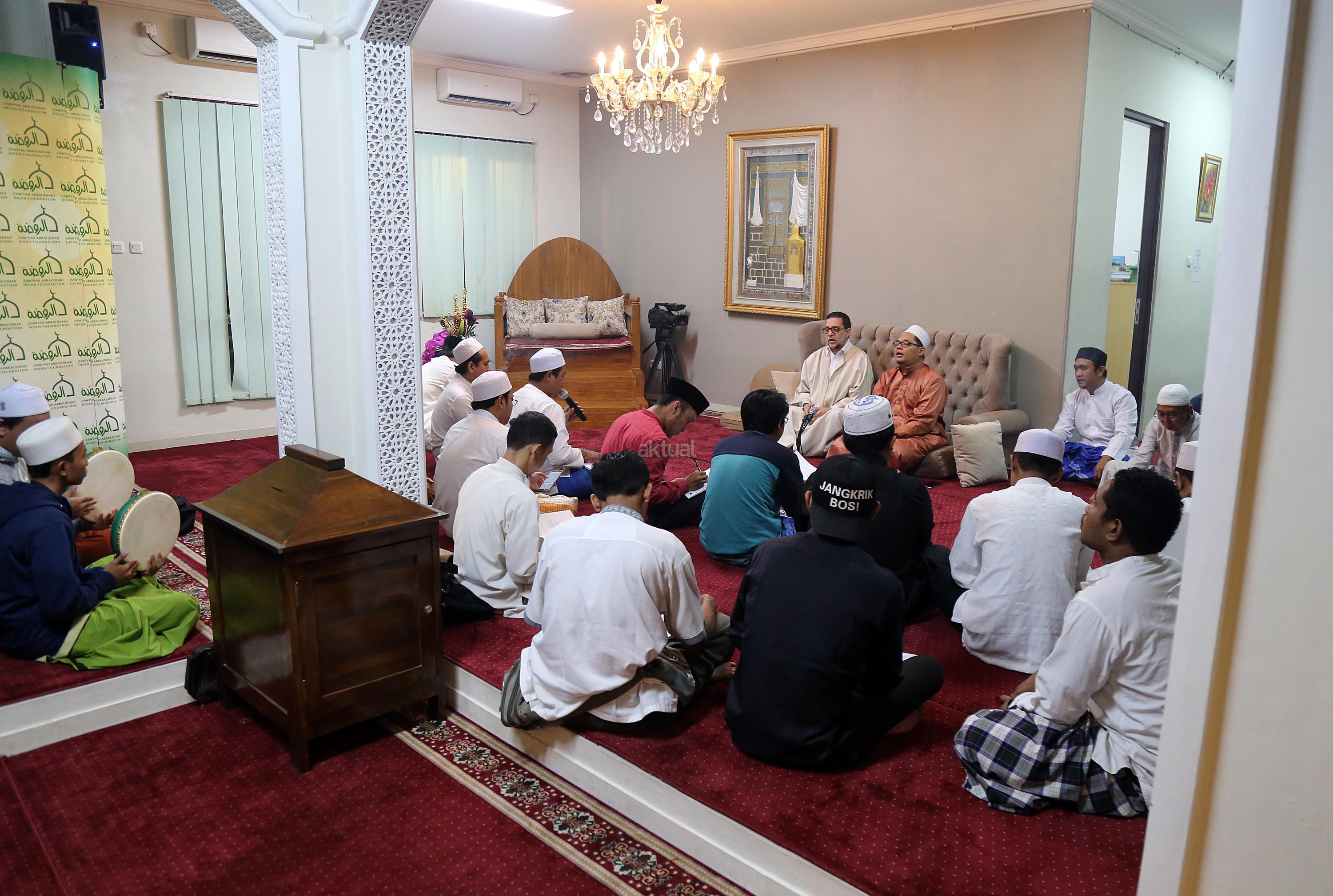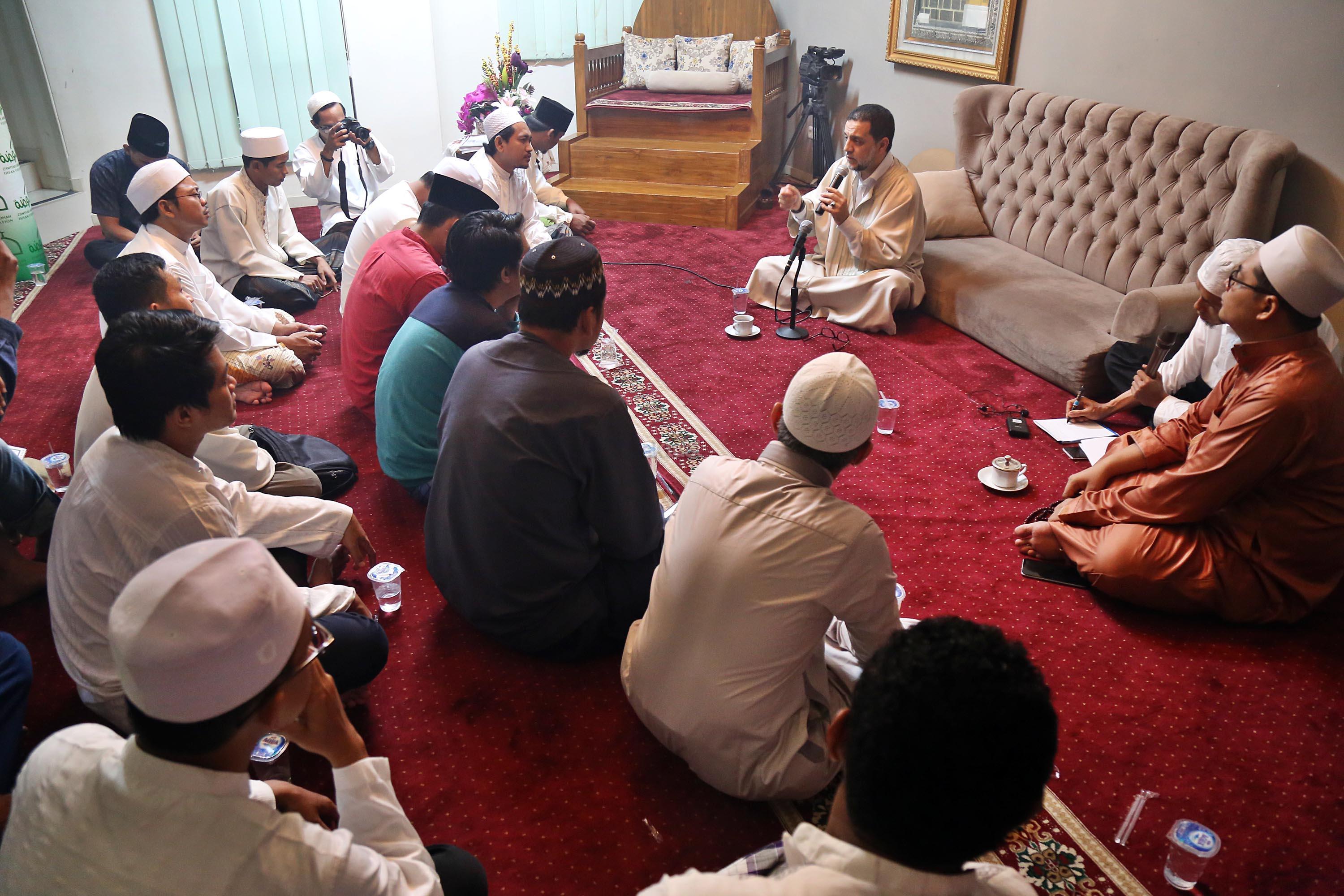 Dalam kunjungannya ke Zawiyah Arraudhah Jakarta, Senin (1/5). Syekh Mun’im juga menerangkan sebuah hal yang biasa dilakukan dalam majelis-majelis tasawuf, yaitu dzikir dan mudzakarah. Mudzakarah sendiri biasanya diawali dengan mengkaji sejarah kehidupan para ulama-ulama Saleh, seperti yang tercatat dalam banyak kitab-kitab mereka. AKTUAL/Tino Oktaviano