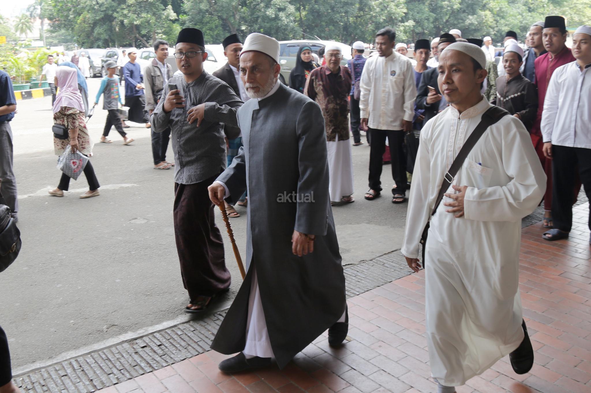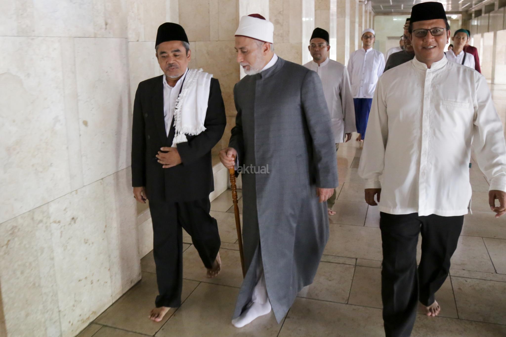 Maulana Syekh Dr. Yusri Rusydi Sayyid Jabr al-Hasani berjalan memasuki masjid Istiqlal saat akan melaksanakan salat Jumat di Masjid Istiqlal. AKTUAL/Tino Oktaviano