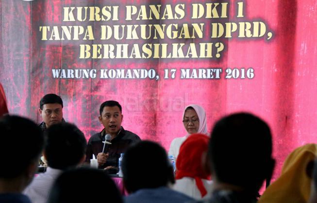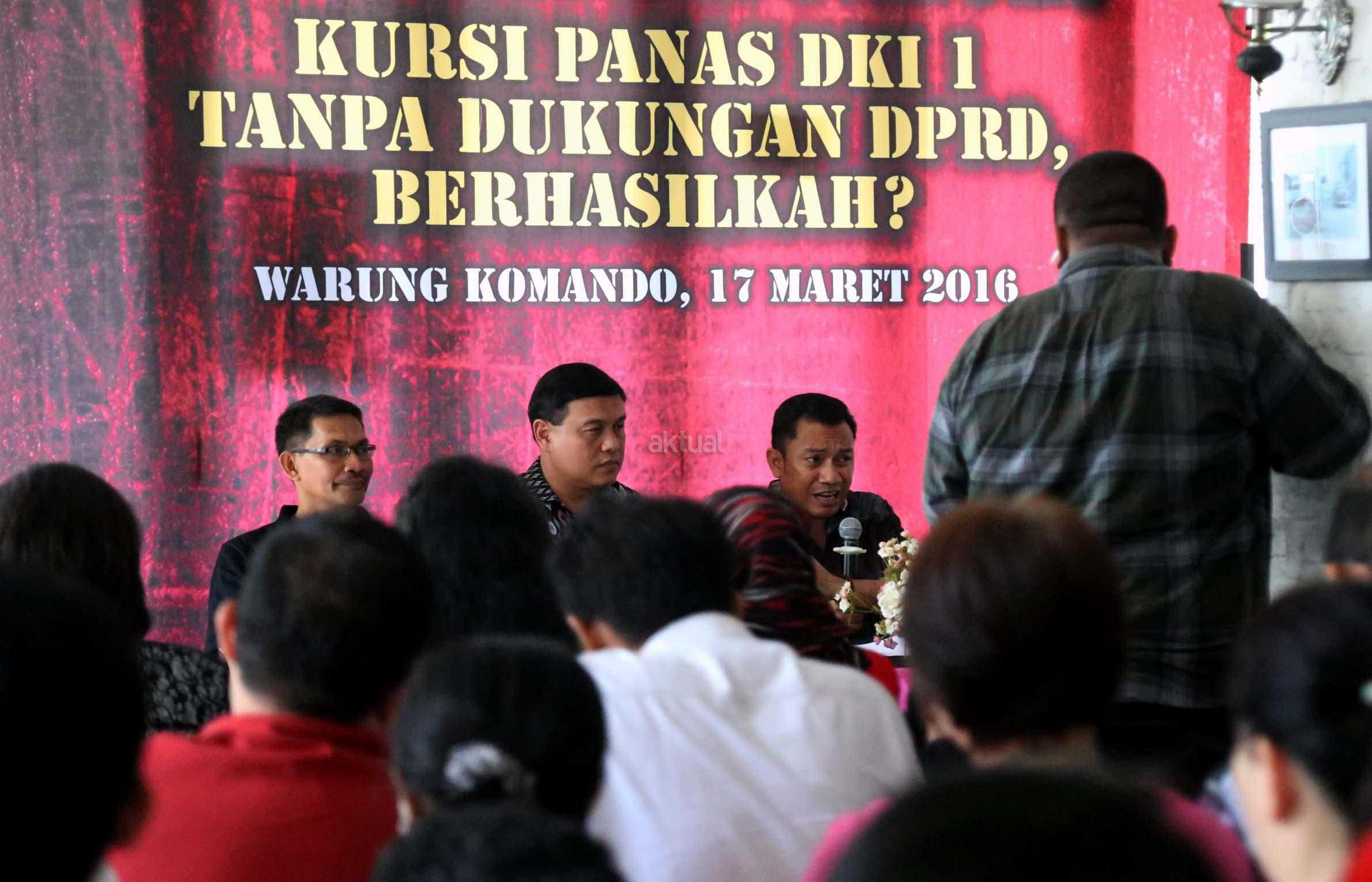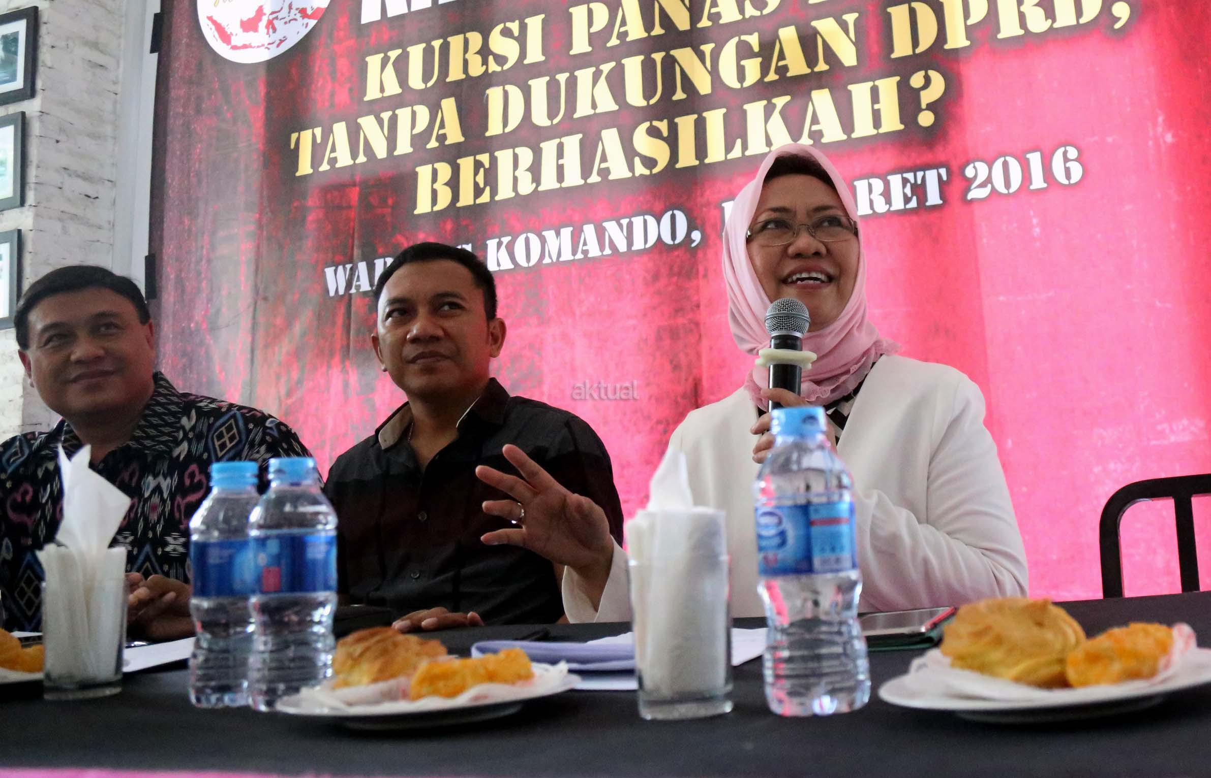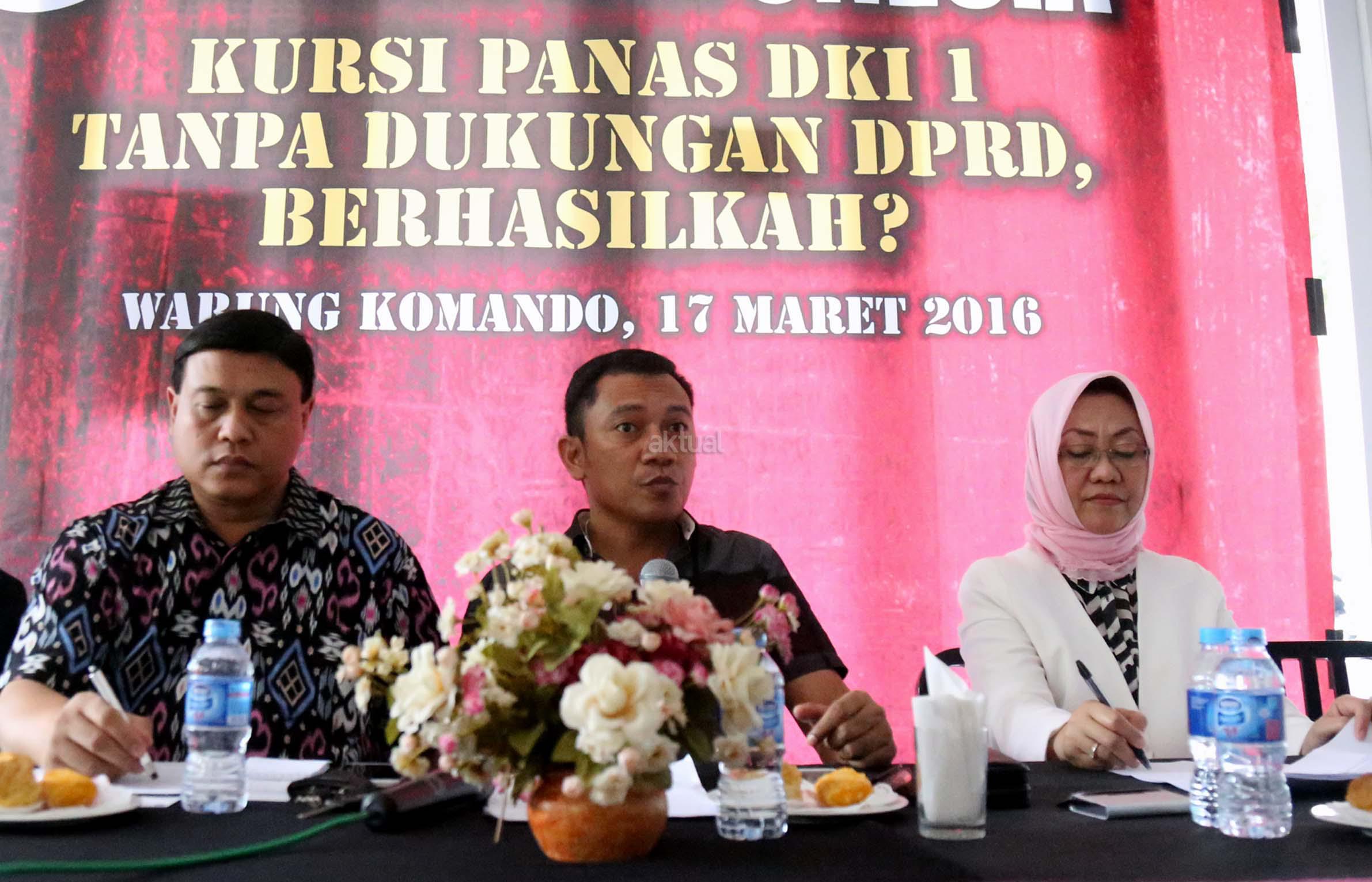 Kiri-kanan ; Direktur Pemberitaan LKBN Antara Aat Surya Safaat, Pengamat Politik Ansy Lema , Peneliti LIPI Siti Zuhro, saat diskusi yang digelar oleh Ormas Kibar Indonesia bertema 'Kursi Panas DKI I : Tanpa Dukungan DPRD, Berhasilkah?' di Jakarta, Kamis (17/3/2016). Diskusi menyikapi efektivitas pemerintahan yang dipilih melalui jalur independen tanpa dukungan partai politik yang dipresentasikan lewat fraksi di DPRD.