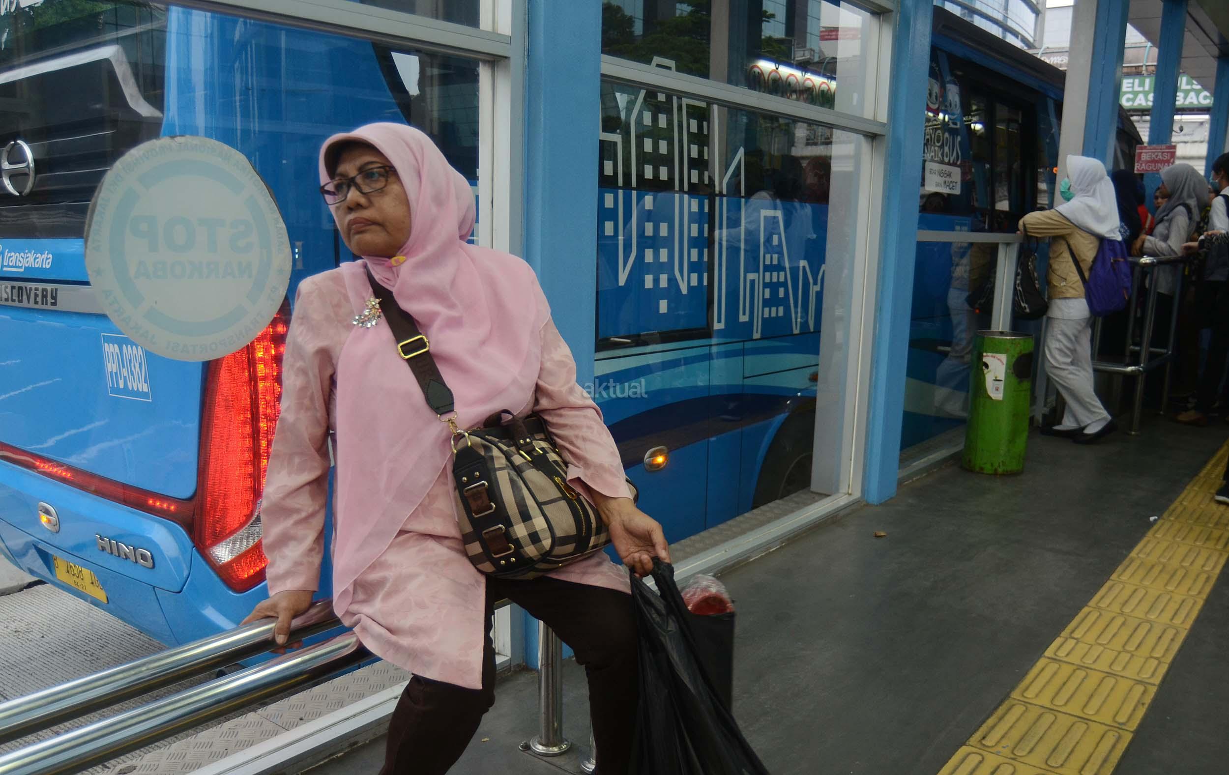 Pemprov DKI Jakarta menggratiskan lansia dan penyandang disabilitas yang memiliki KTP DKI Jakarta untuk menaiki Bus Transjakarta. AKTUAL/MUNZIR