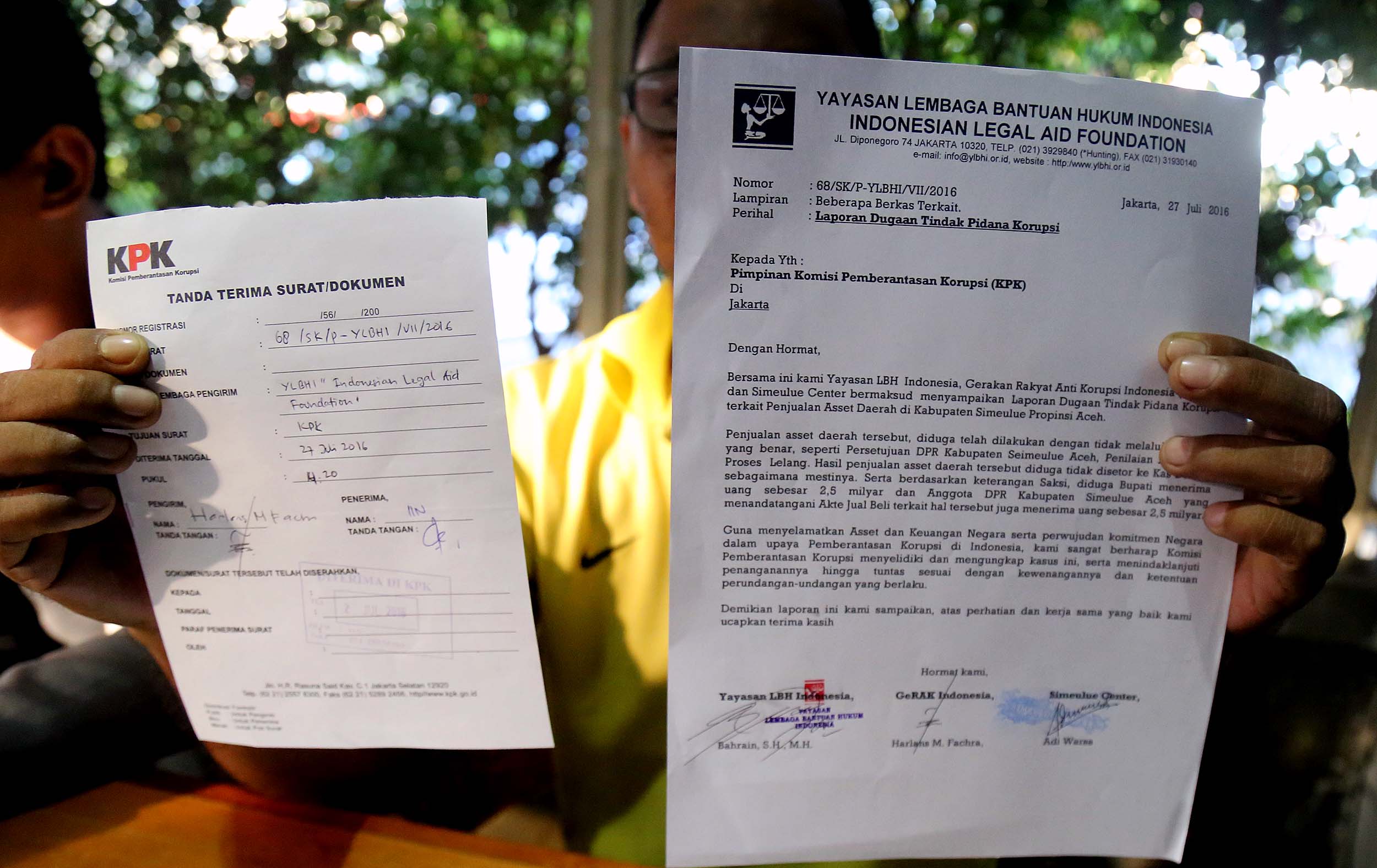 GeRAK bersama LSC didampingi Yayasan LBH Indonesia melaporkan dugaan korupsi terkait penjualan aset daerah di Kabupaten Simeulue Provinsi Aceh kepada pihak swasta ke KPK, dimana hasil penjualan aset daerah tersebut tidak disetor ke kas daerah.