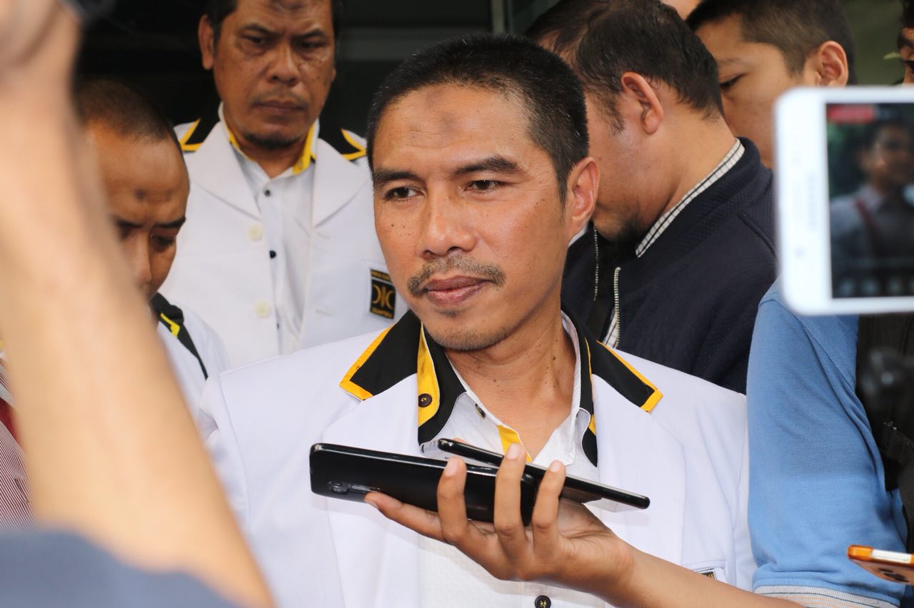 Ketua Umum DPW PKS DKI Jakarta Sakhir Purnomo memberikan keterangan pers atas kehadirannya ke kantor Reskrimsus Polda Metro Jaya, Senayan, Jakarta, Jumat (4/5/18). Bersama penasehat hukum dan pengurus DPW PKS DKI Jakarta lainnya, dalam penyampaian bukti dan keterangan perihal laporan DPW PKS DKI Jakarta atas dugaan fitnah dan/atau pencemaran nama baik PKS dengan terlapor Fahri Hamzah. AKTUAL/HO