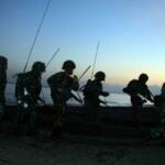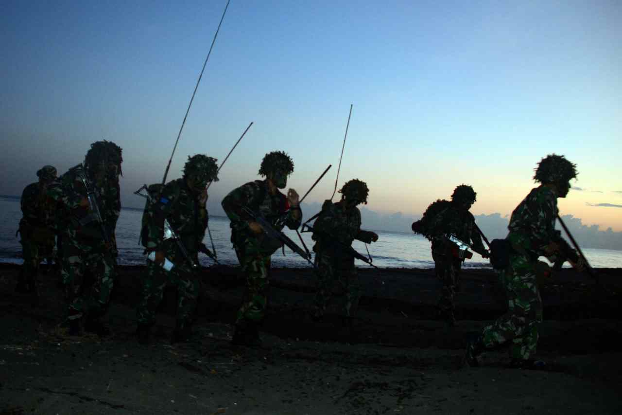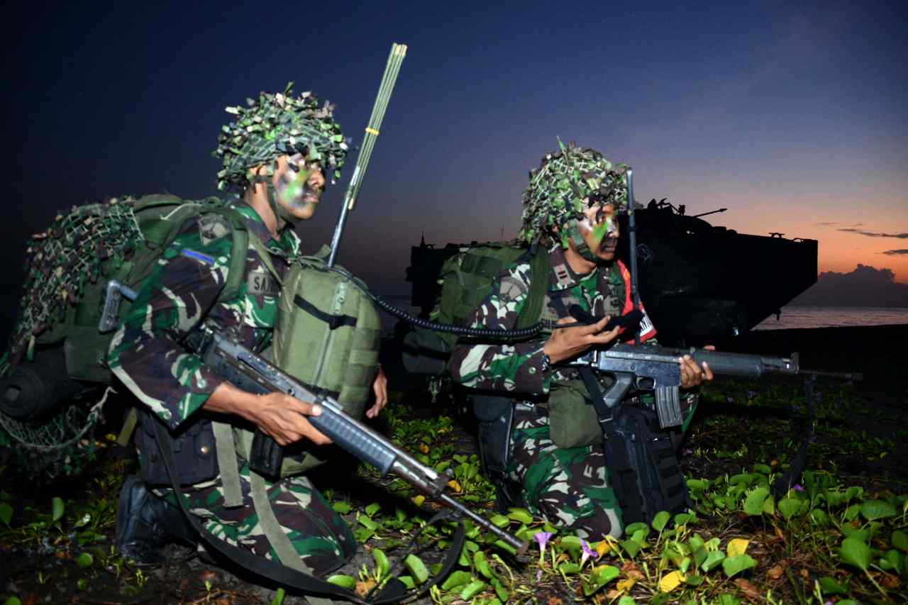Sejumlah prajurit Korps Marinir TNI AL melaksanakan manuver setelah mendarat di Pantai Banongan, Situbondo, Jawa Timur, Jumat (29/7). Kegiatan tersebut merupakan bagian dari Latihan Marinir Terpadu (Latmardu) 2016 yang melibatkan ratusan prajurit dan beberapa material tempur untuk meningkatkan kesiapan satuan Korps Marinir TNI AL sebagai Pasukan Pendarat (Pasrat) dalam operasi amfibi. ANTARA FOTO/Serka Mar Kuwadi/Spt/16