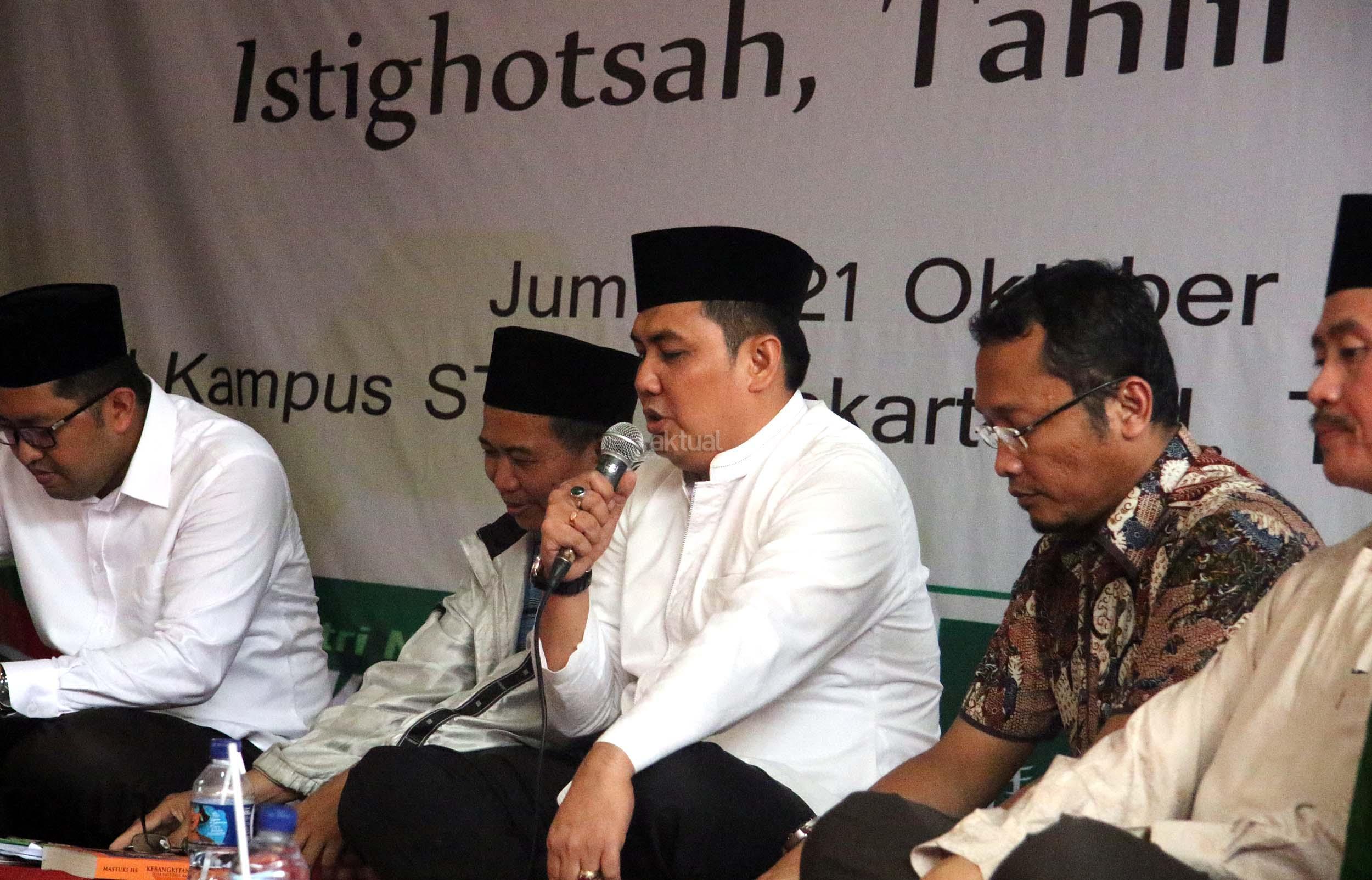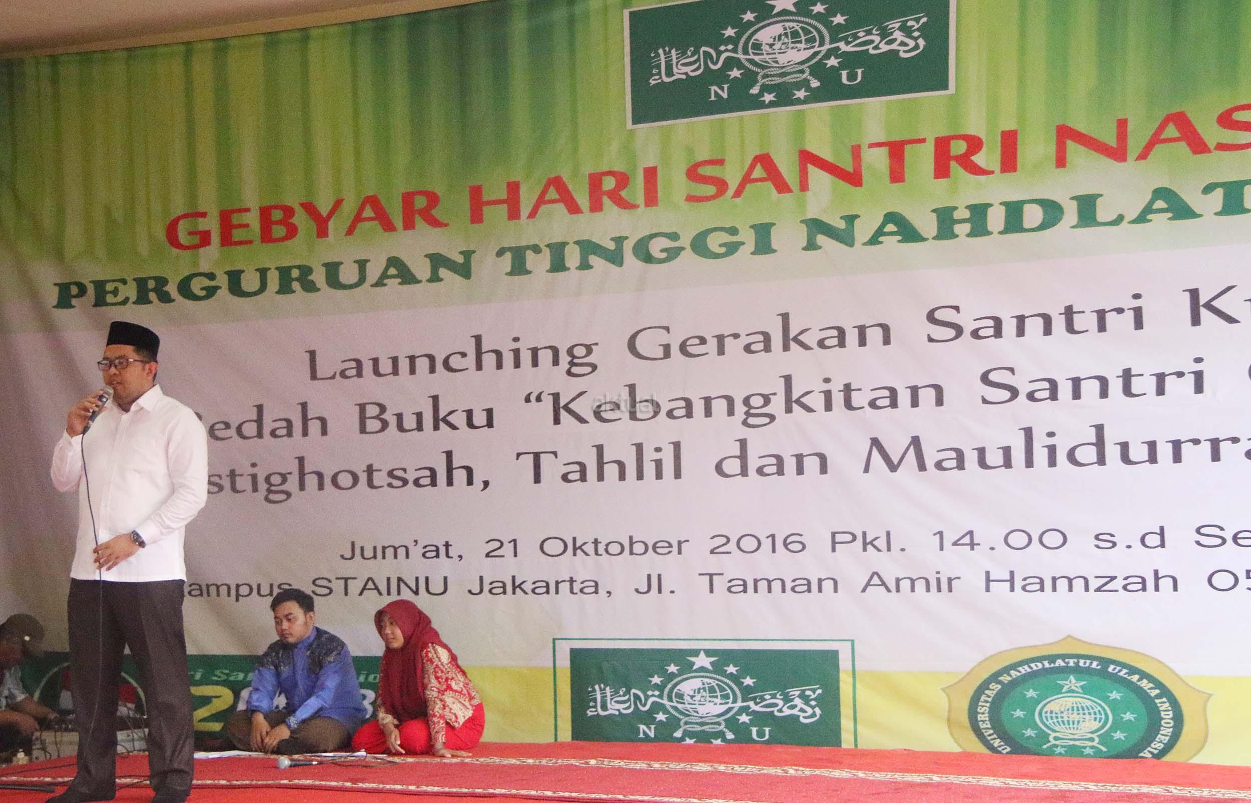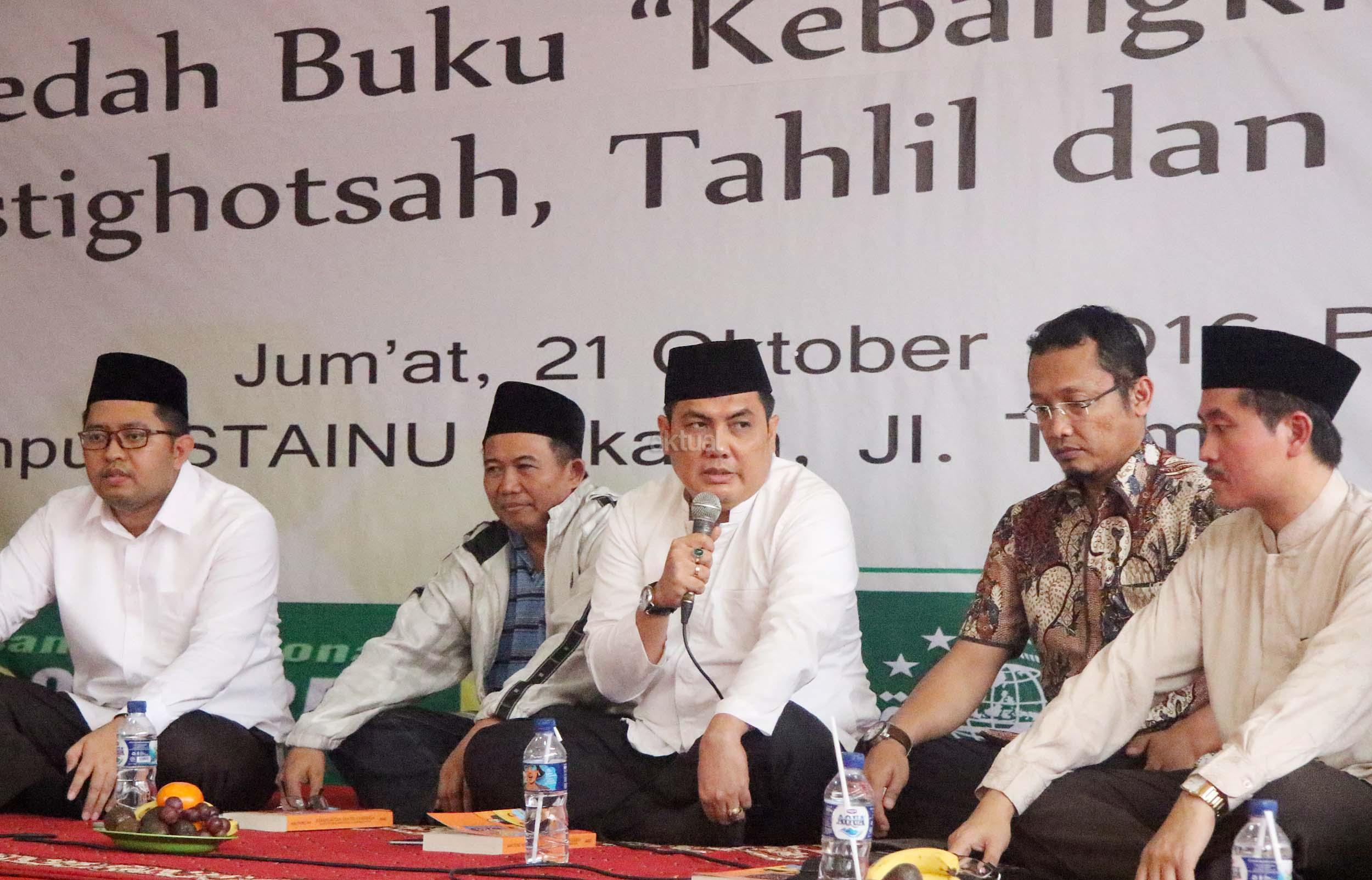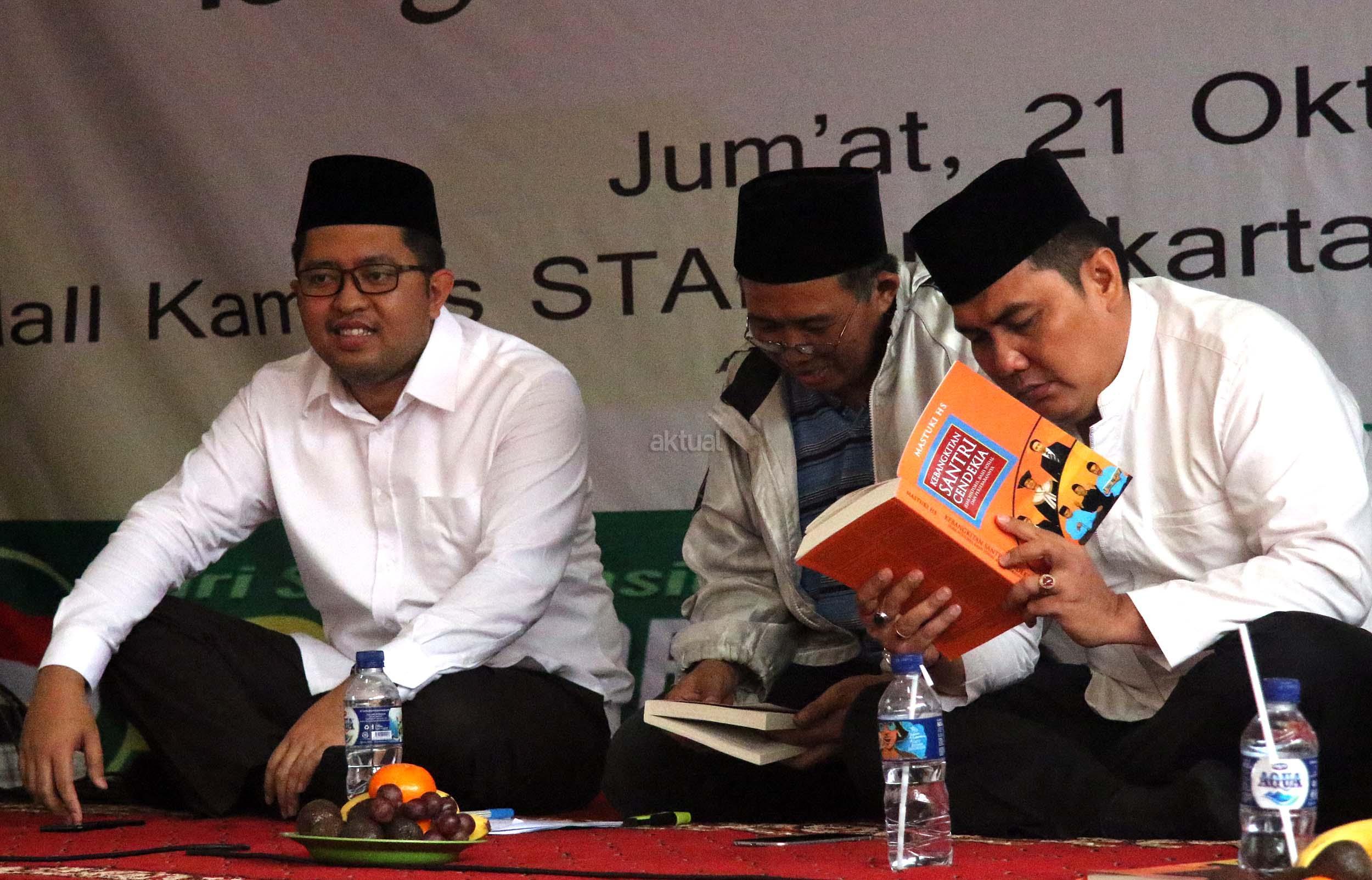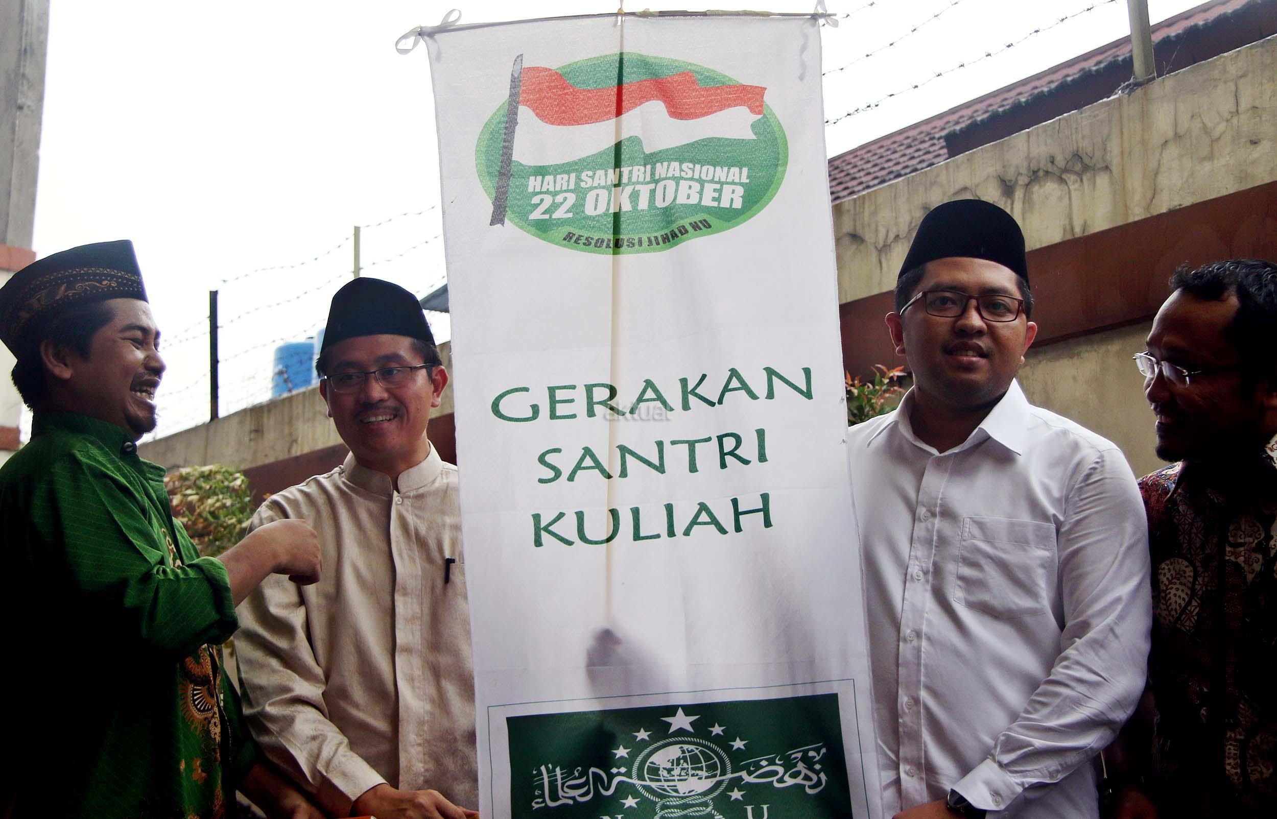 Sekjen PBNU Helmy Faisal Zaini (tengah) menjadi pembicara dalam Launching Gerakan Santri Kuliah dan bedah buku “Kebangkitan Santri Cendekia” di Universitas NU, Jakarta, Jumat (21/10/2016). Launching Gerakan Santri Kuliah dan bedah buku “Kebangkitan Santri Cendekia” , dalam Gerakan Santri Kuliah diharapkan tidak boleh ada lagi santri yang tidak melanjutkan kuliah karena tidak mempunyai biaya. AKTUAL/Munzir