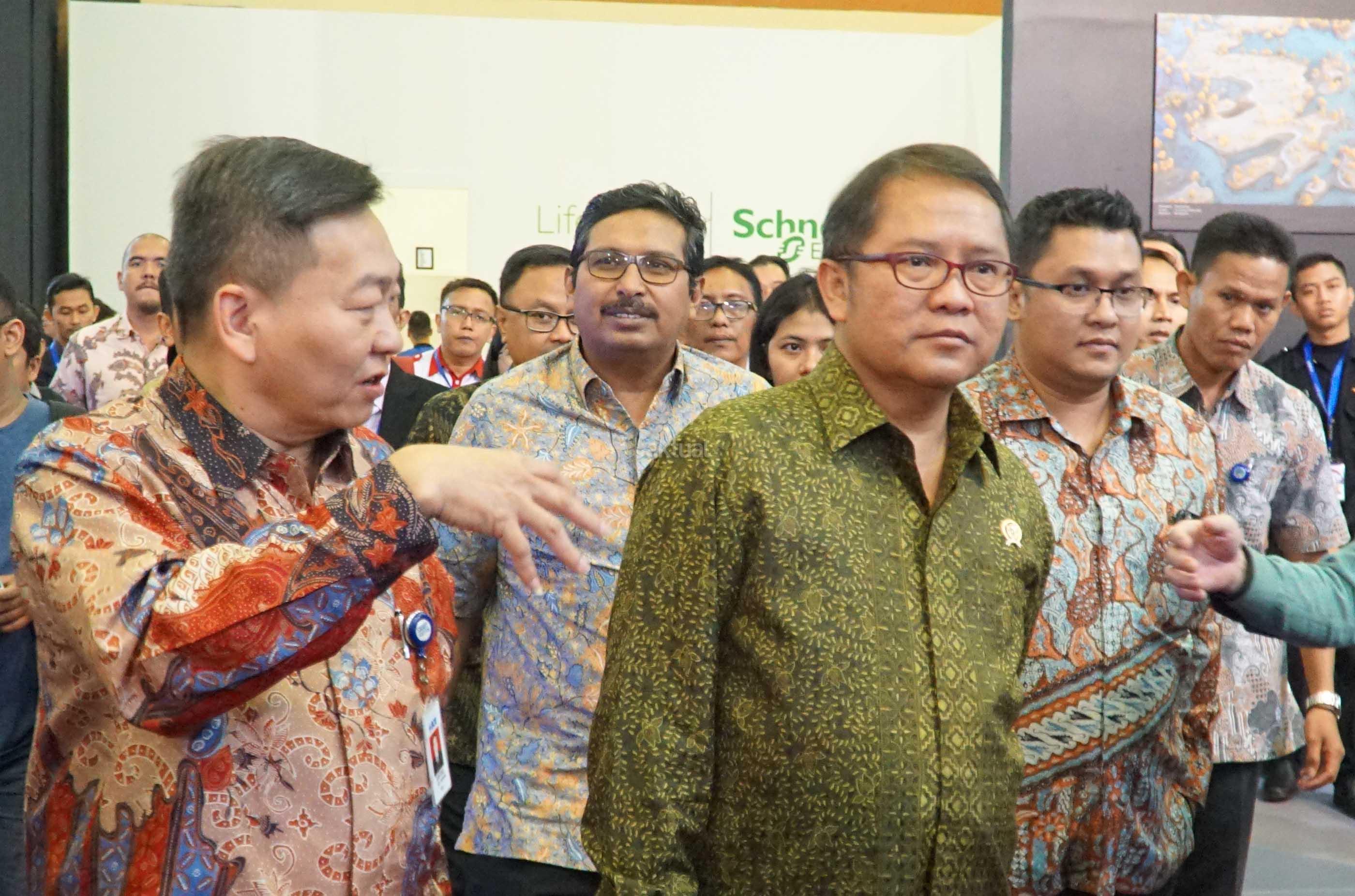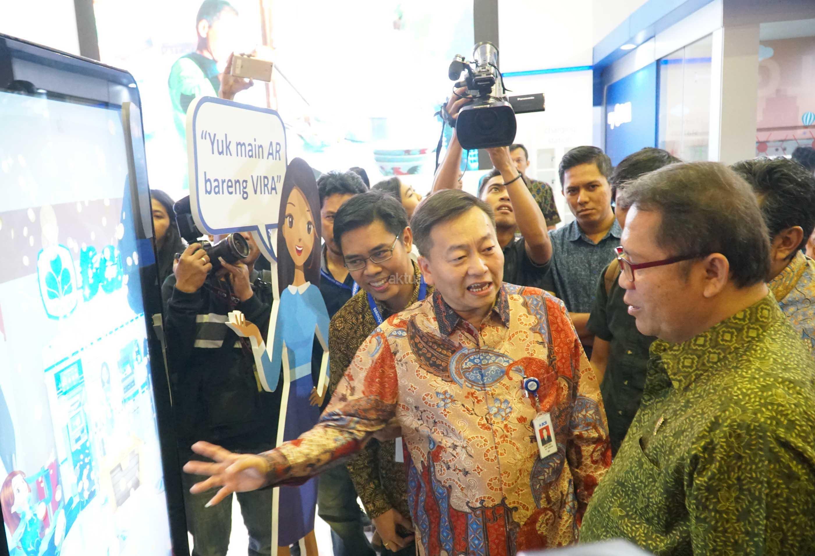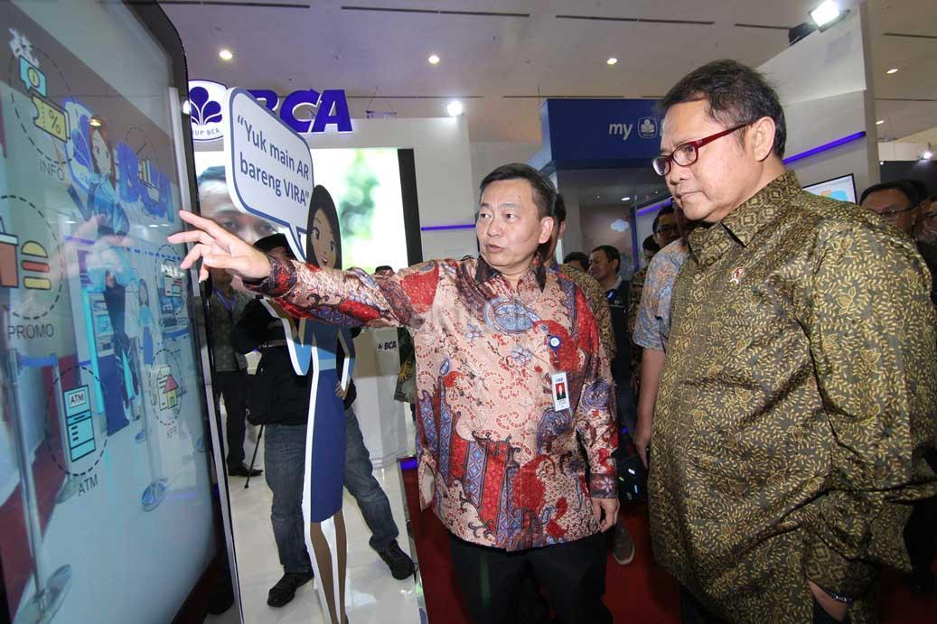 Direktur PT Bank Central Asia Tbk (BCA) Santoso (kiri) memperkenalkan terobosan baru VIRA Virtual Assistant Chat Banking BCA kepada Menteri Komunikasi dan Informatika RI Rudiantara (kanan) dalam ajang Teknopolis 2017 “Today’s Technology and Beyond” di Jakarta Convention Center, Jakarta, Jumat (09/06). Layanan VIRA di beragam platform messaging populer seperti Facebook Messenger, LINE dan Kaskus Chat memungkinkan nasabah secara instan mendapatkan informasi seputar promo-promo terkini, mencari lokasi ATM BCA terdekat, mengetahui kurs terkini, mendaftar Kartu Kredit dan KPR secara online, serta cek saldo rekening dan histori kartu kredit. AKTUAL/Eko S Hilman
