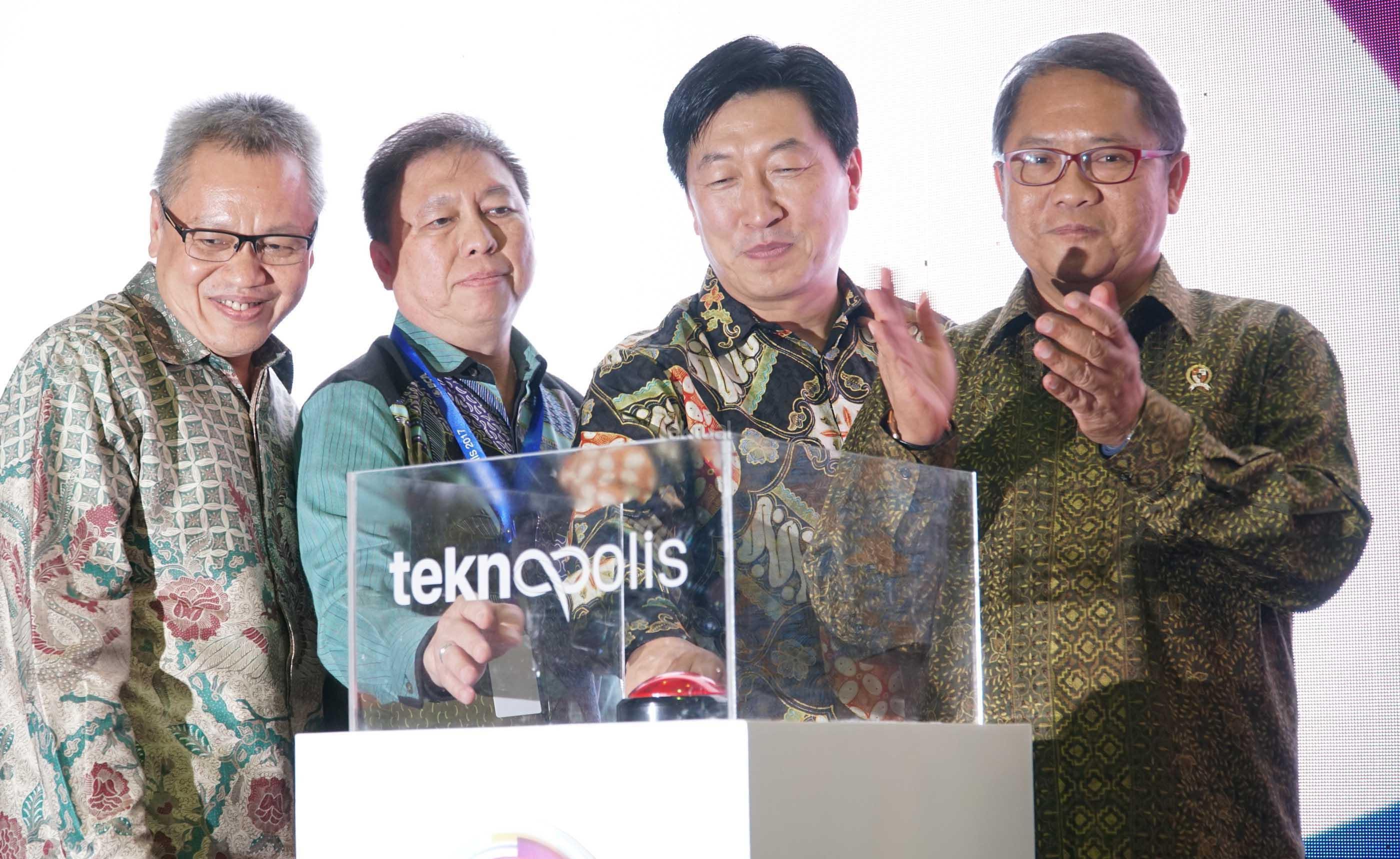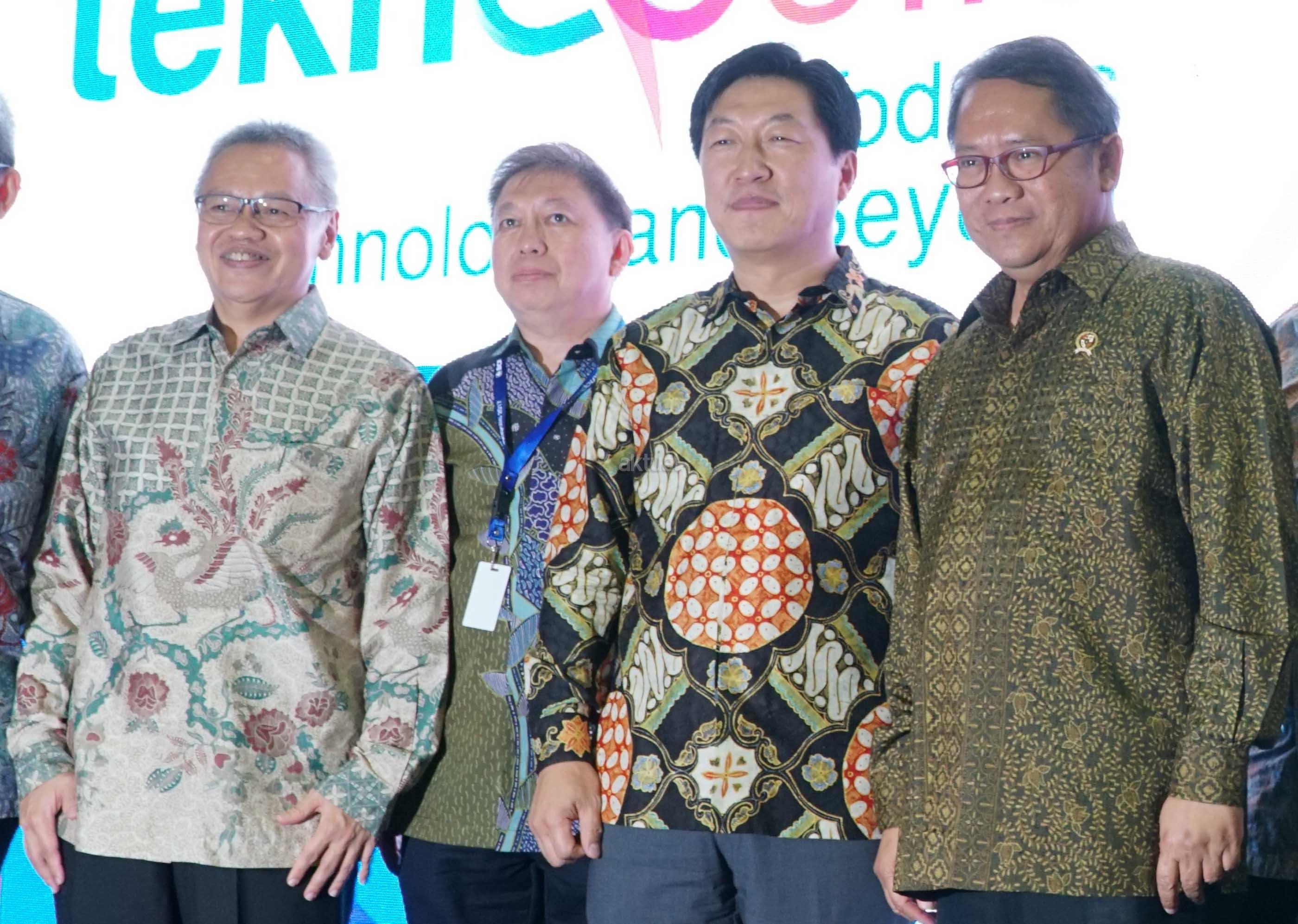 (dari kiri ke kanan) Direktur PT Bank Central Asia Tbk (BCA) Rudy Susanto, CEO Erajaya Group Hasan Aula, Presiden Direktur Samsung Electronic Indonesia Jaehoon Kwon, Menteri Komunikasi dan Informatika RI Rudiantara, seusai menekan bel sebagai simbolisasi seremoni diresmikannya Teknopolis 2017 di Jakarta Convention Center, Jakarta, Jumat (09/06). Berkomitmen menjawab kebutuhan nasabah akan akses teknologi yang modern dan inovatif, BCA memberikan dukungan dengan menjadi sponsor utama pameran bergengsi Teknopolis 2017 “Today’s Technology and Beyond” yang diselenggarakan pada tanggal 9-11 Juni 2017 menampilkan teknologi terbaru dan produk inovatif yang dikembangkan oleh berbagai merek favorit masa kini. AKTUAL/Eko S Hilman