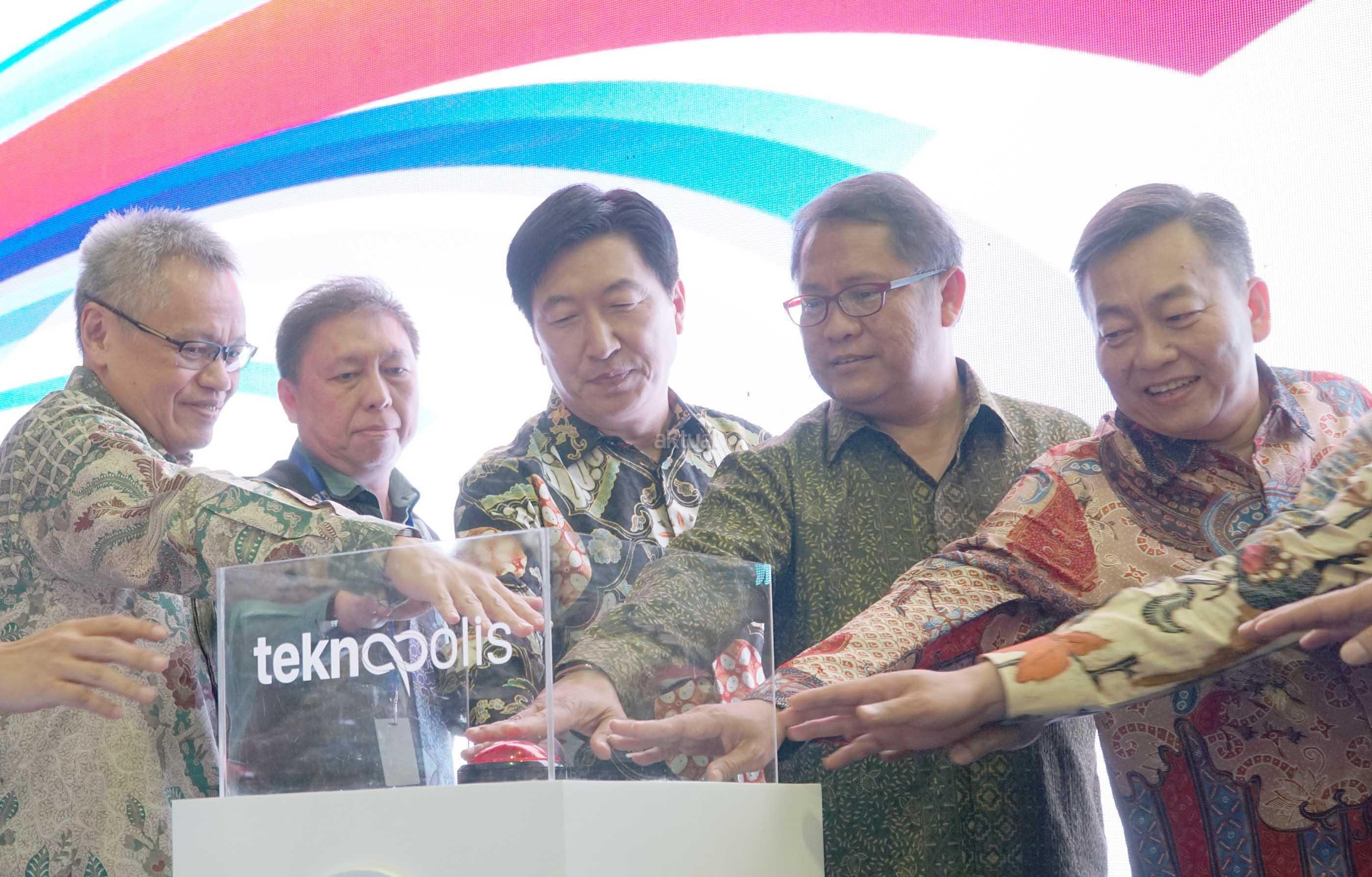 (dari kiri ke kanan) Direktur PT Bank Central Asia Tbk (BCA) Rudy Susanto, CEO Erajaya Group Hasan Aula, Presiden Direktur Samsung Electronic Indonesia Jaehoon Kwon, Menteri Komunikasi dan Informatika RI Rudiantara, dan Direktur BCA Santoso menekan bel sebagai simbolisasi seremoni diresmikannya Teknopolis 2017 di Jakarta Convention Center, Jakarta, Jumat (09/06). Berkomitmen menjawab kebutuhan nasabah akan akses teknologi yang modern dan inovatif, BCA memberikan dukungan dengan menjadi sponsor utama pameran bergengsi Teknopolis 2017 “Today’s Technology and Beyond” yang diselenggarakan pada tanggal 9-11 Juni 2017 menampilkan teknologi terbaru dan produk inovatif yang dikembangkan oleh berbagai merek favorit masa kini. AKTUAL/Eko S Hilmab