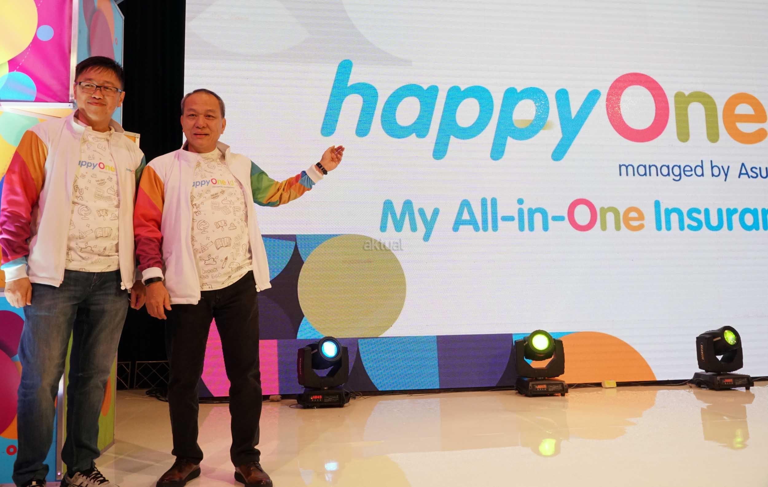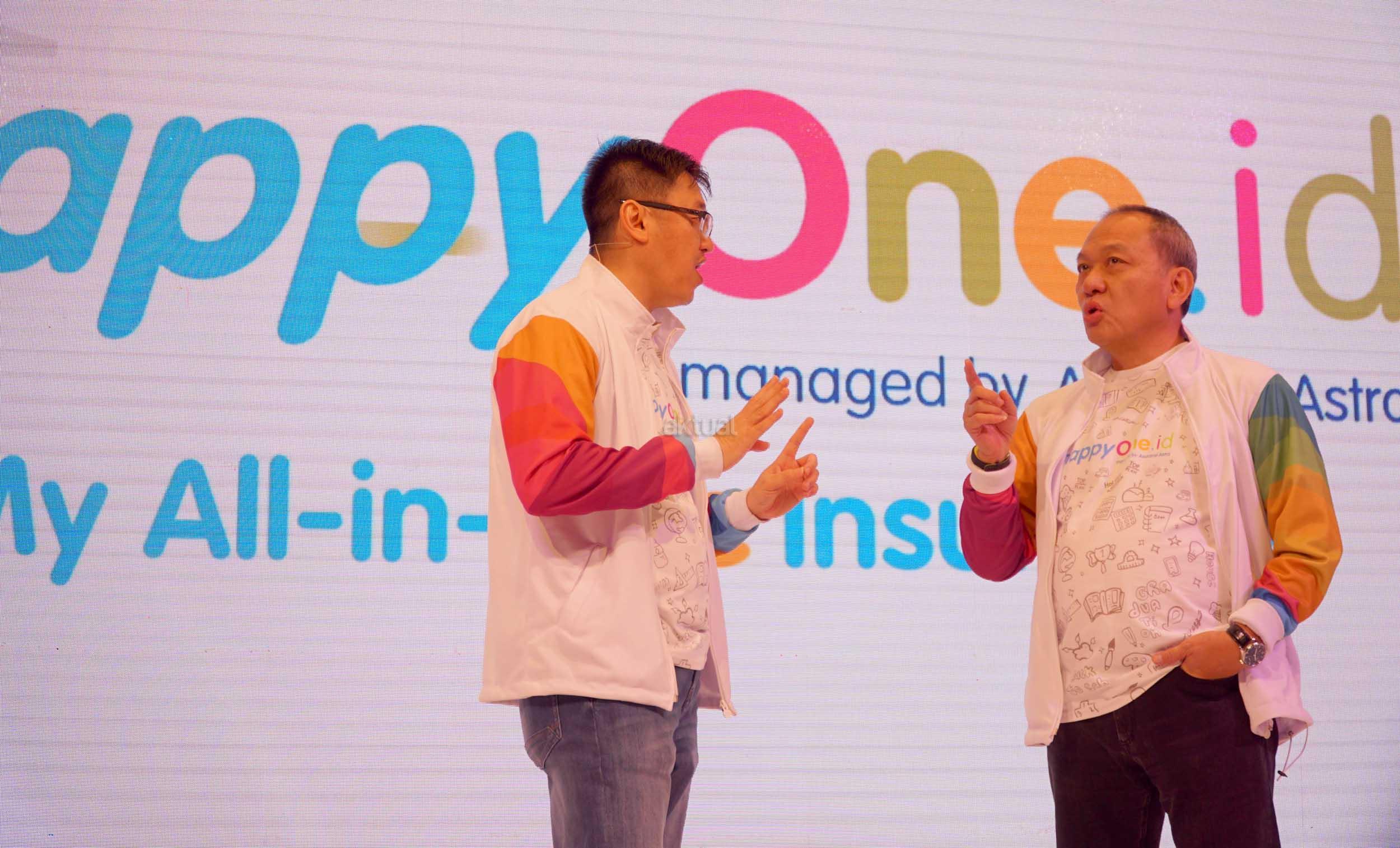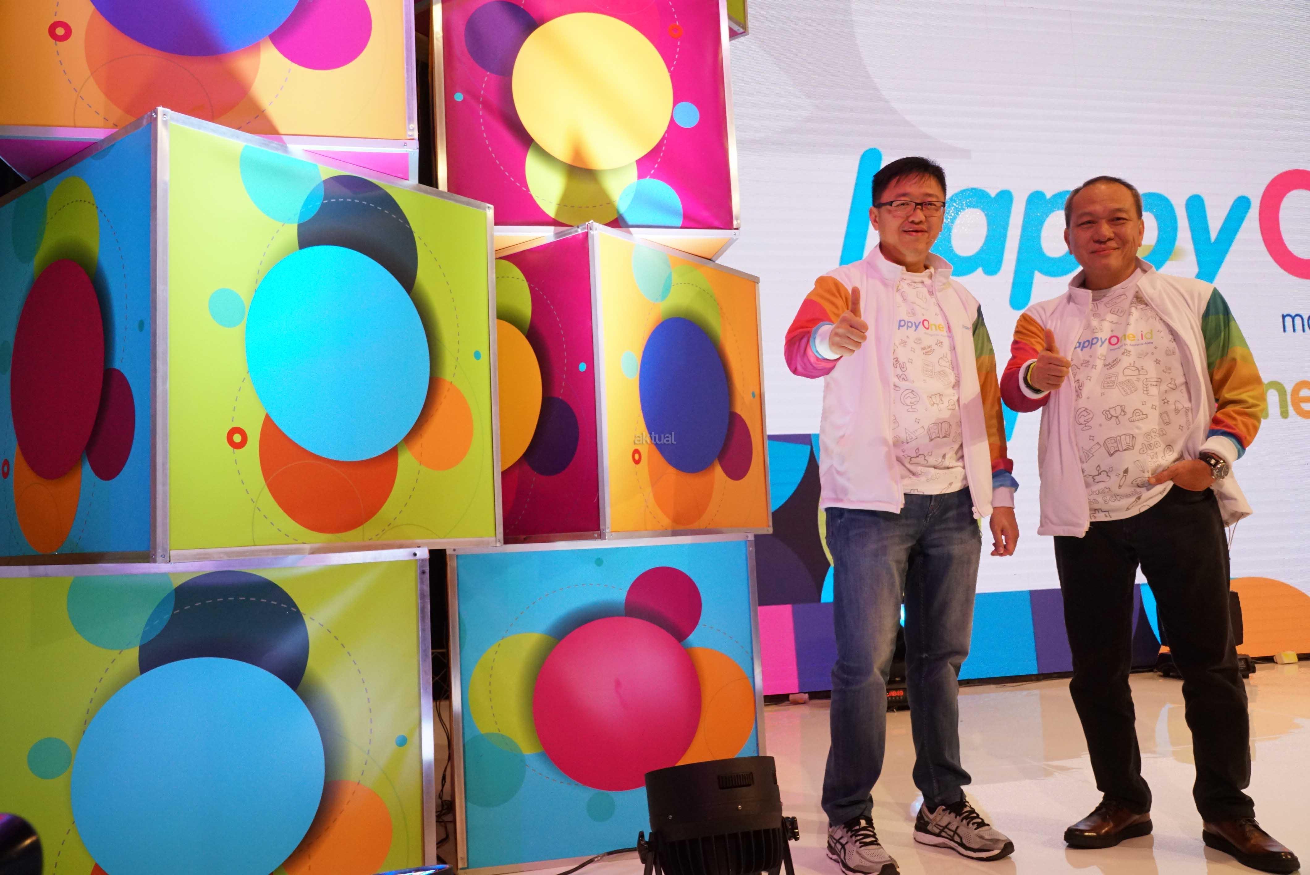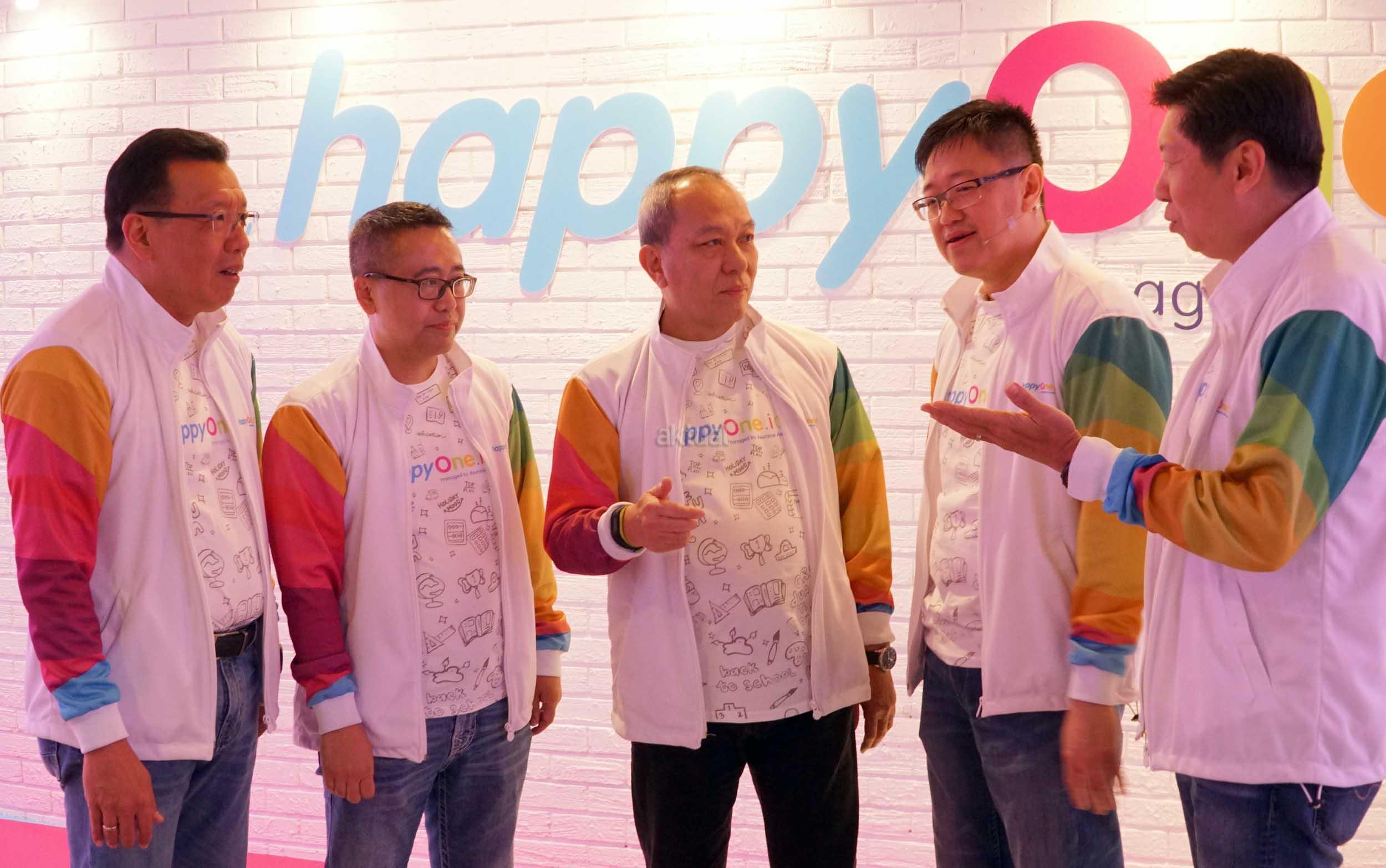 CEO Asuransi Astra Rudy Chen (kedua kanan), Chief Marketing Officer Retail Business Gunawan Salim (kiri), Chief Operating Officer Hendry Yoga (kedua kiri), Chief Marketing Commercial & Health Business Christopher Pangestu (kanan) dan Direktur Astra International Suparno Djasmin (tengah), bertumpu tangan bersama pada peluncuran produk layanan berbasis digital Happyone.id, di Jakarta, Rabu (17/10.2018). Happyone.id terdiri atas empat produk asuransi yakni HappyMe, asuransi perlindungan kecelakaan, HappyEdu asuransi pendidikan anak, HappyHome asuransi resiko kebakaran rumah dan HappyTrip asuransi perjalanan domestik maupun internasional. AKTUAL/Eko S Hilman