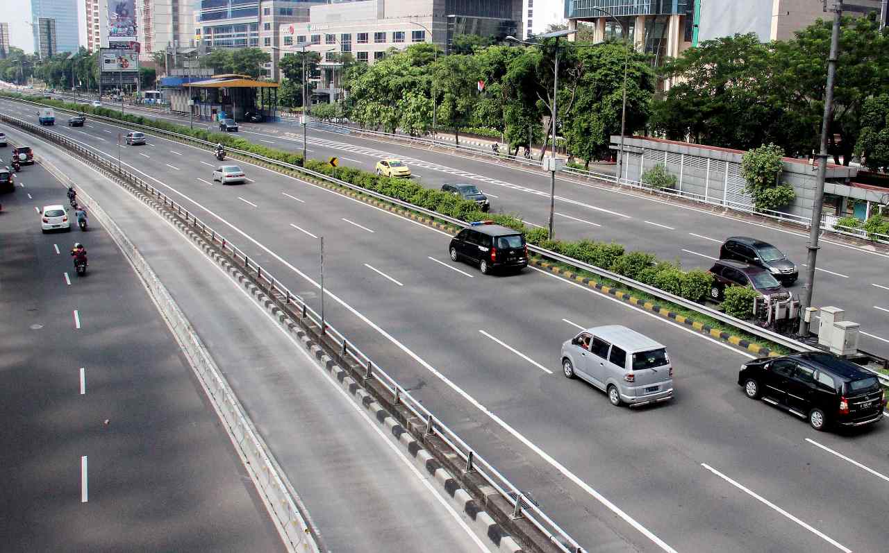 Suasana tol dalam kota, Jalan Gatot Subroto, Jakarta, terlihat lenggang, Jumat (8/7/2016). Jalan terlihat nyaris tak ada aktifitas berarti maupun kemacetan arus lalu lintas pada hari libur lebaran Idul Fitri. Munzir/aktual.com;