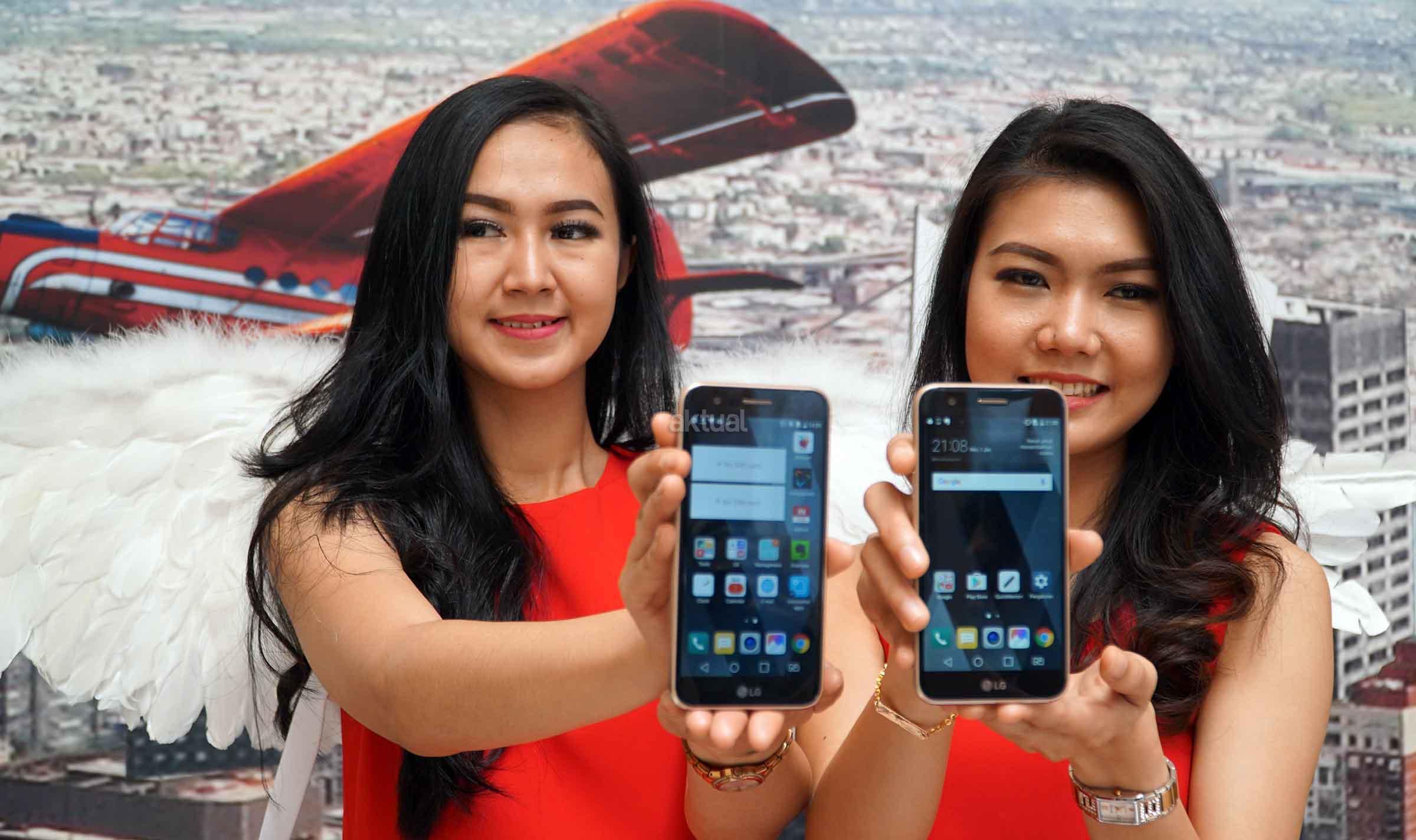Model peraga memperlihatkan Smartphone Selfie dengan bidang tangkap dari lensa kamera depan (wide angle selfie camera) yang mencapai 120 derajat saat peluncurannya di Jakarta, Rabu (29/3). Pabrikan asal Korea Selatan tersebut akhirnya mengumumkan kehadiran smartphone LG K10 2017 bagi pasar Indonesia. Smartphone yang memiliki kemampuan kamera depan memiliki bentang tangkap lebar tersebut tersedia dalam dua pilihan warna yaitu hitam dan kemasan dan ditawarkan dengan tingkat harga Rp 2.749.000. AKTUAL/Eko S Hilman