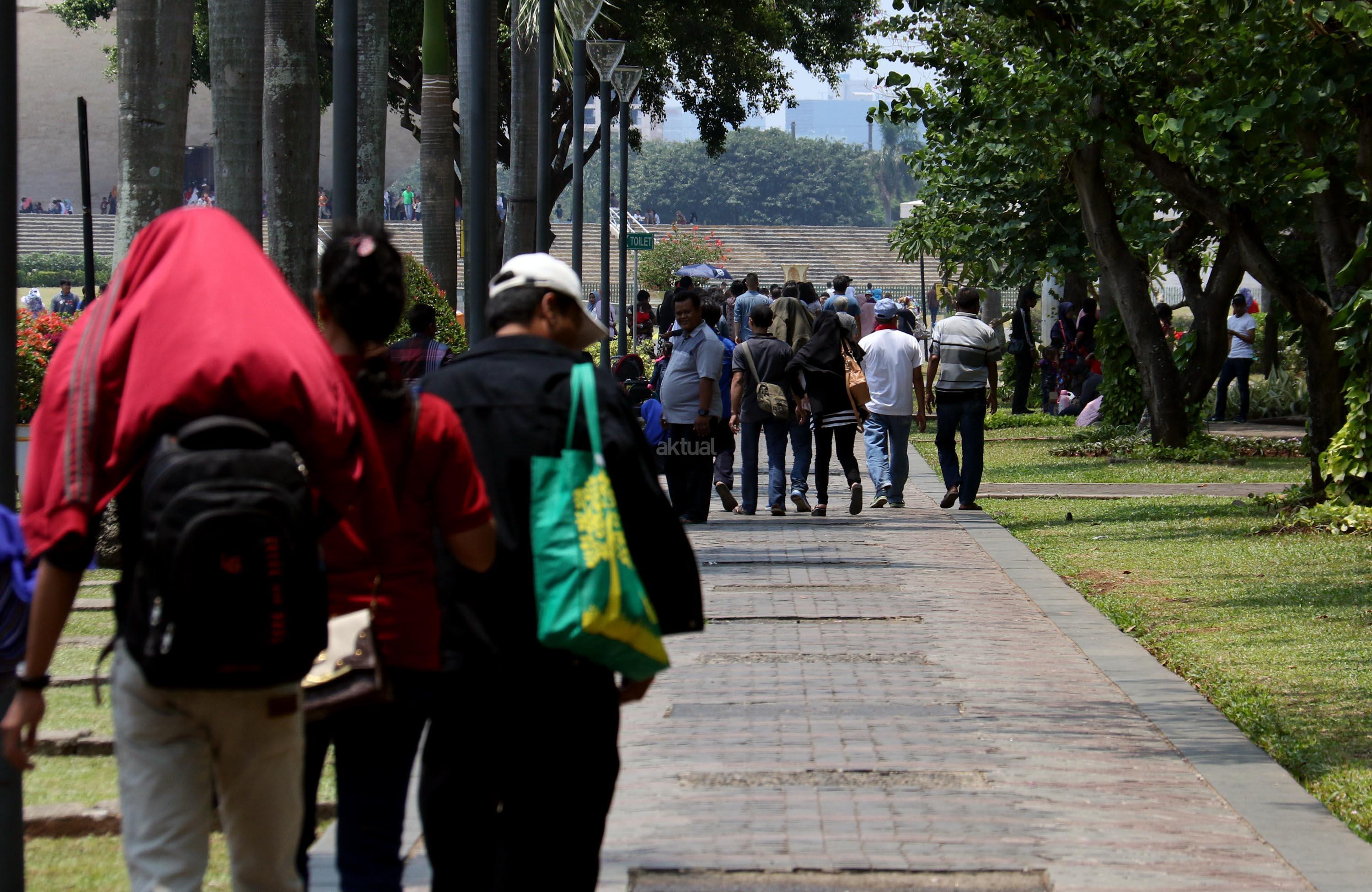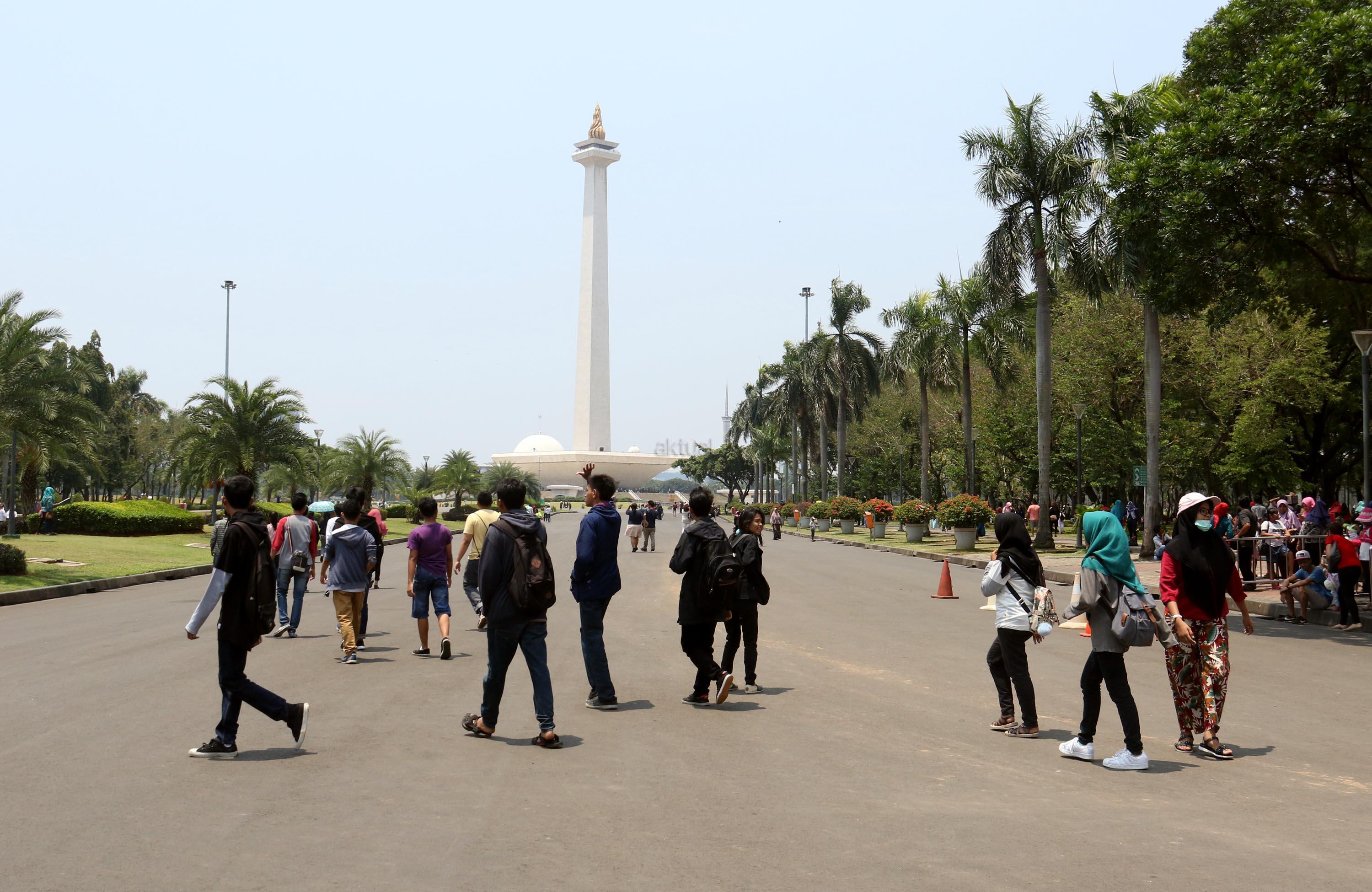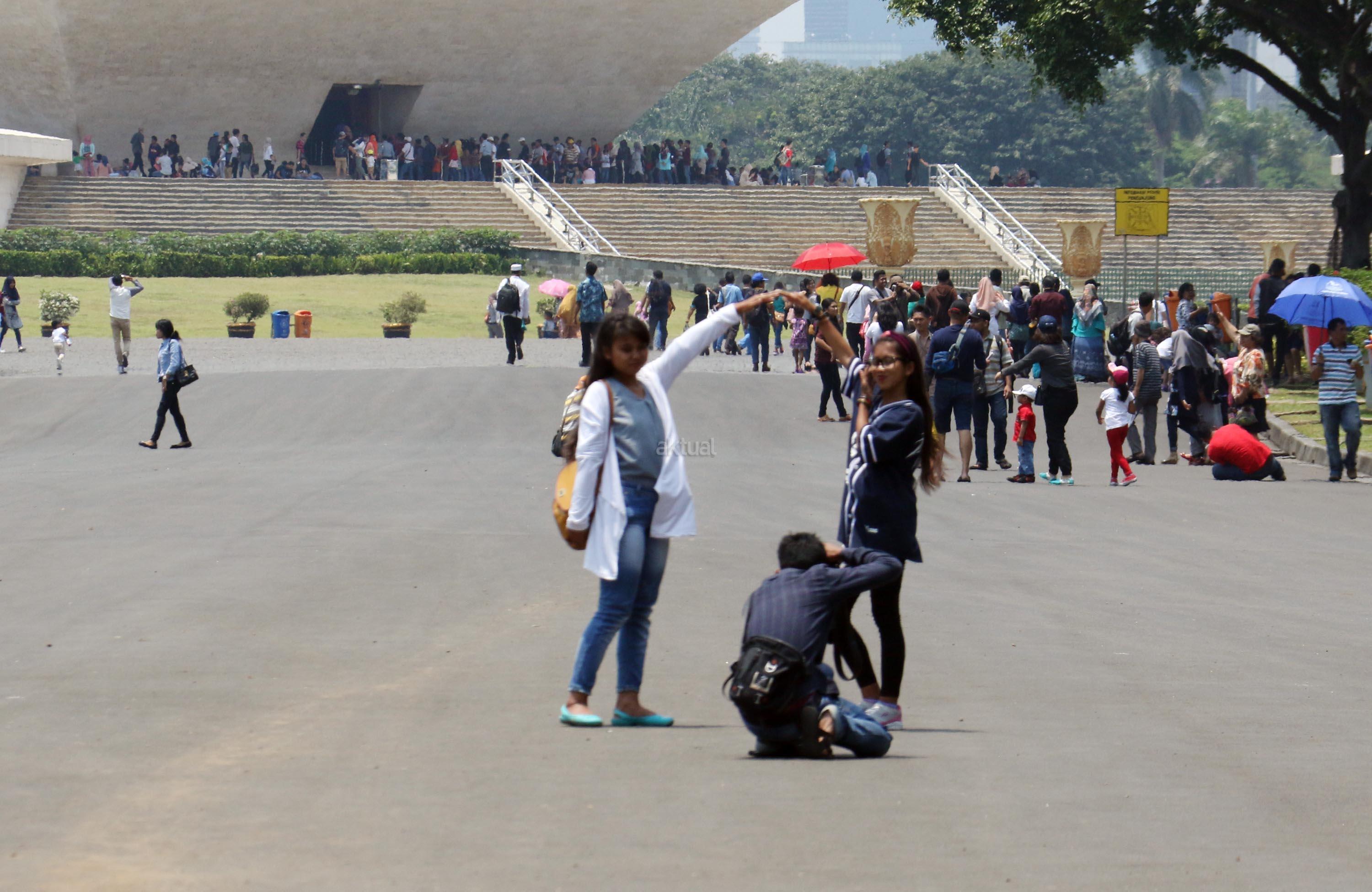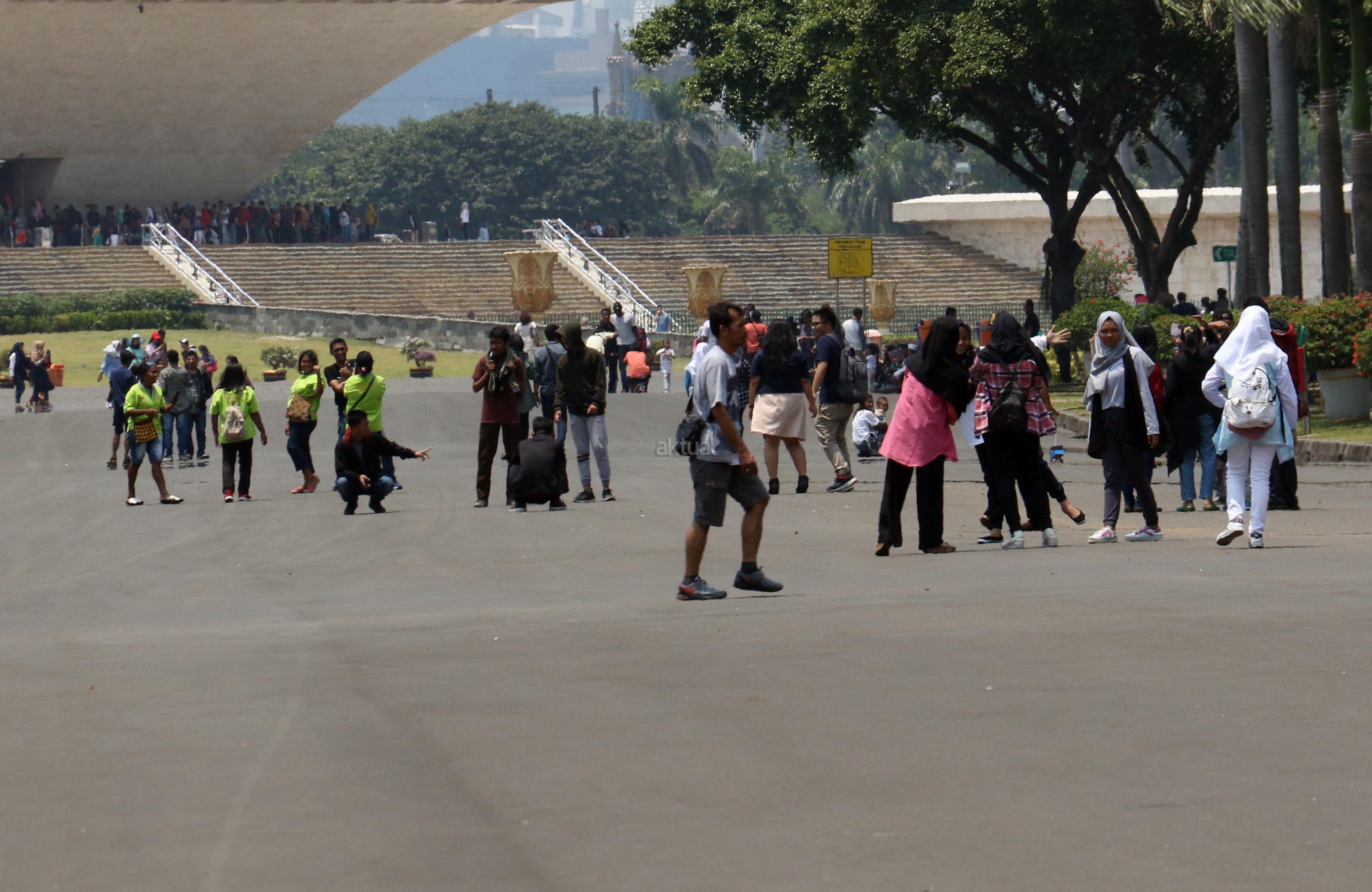 Pengunjung memadati kawasan wisata Monas di Jakarta, Kamis (21/9/2017). Kawasan Monumen Nasional (Monas) ramai pengunjung dan menjadi pilihan warga untuk menikmati suasana libur Tahun Baru Islam 1 Muharram 1439 Hijriyah. AKTUAL/Munzir