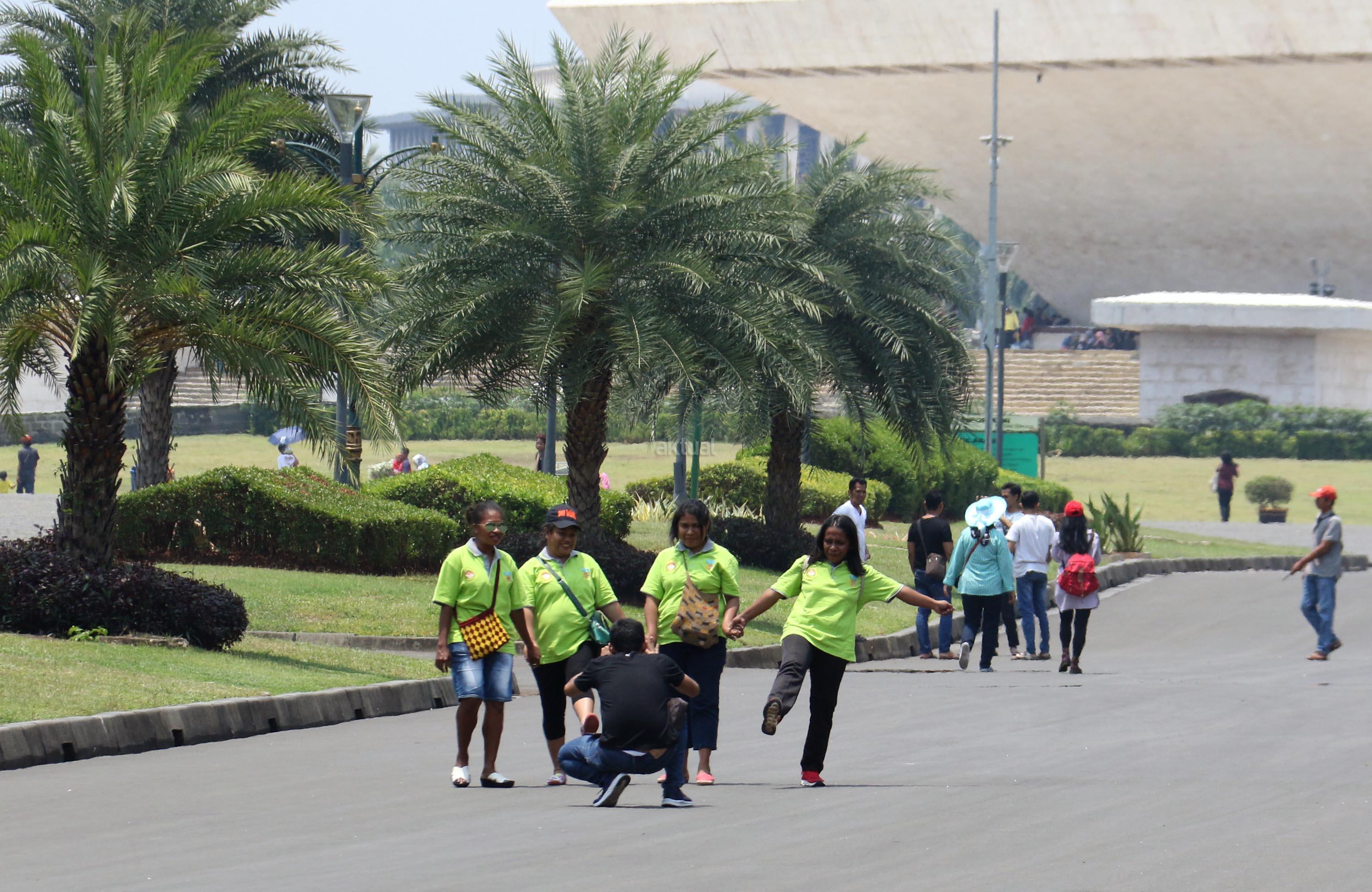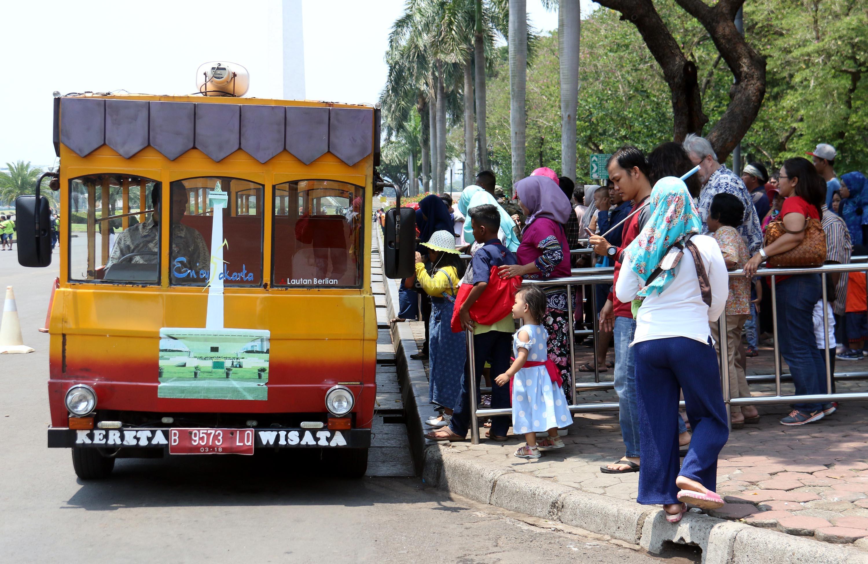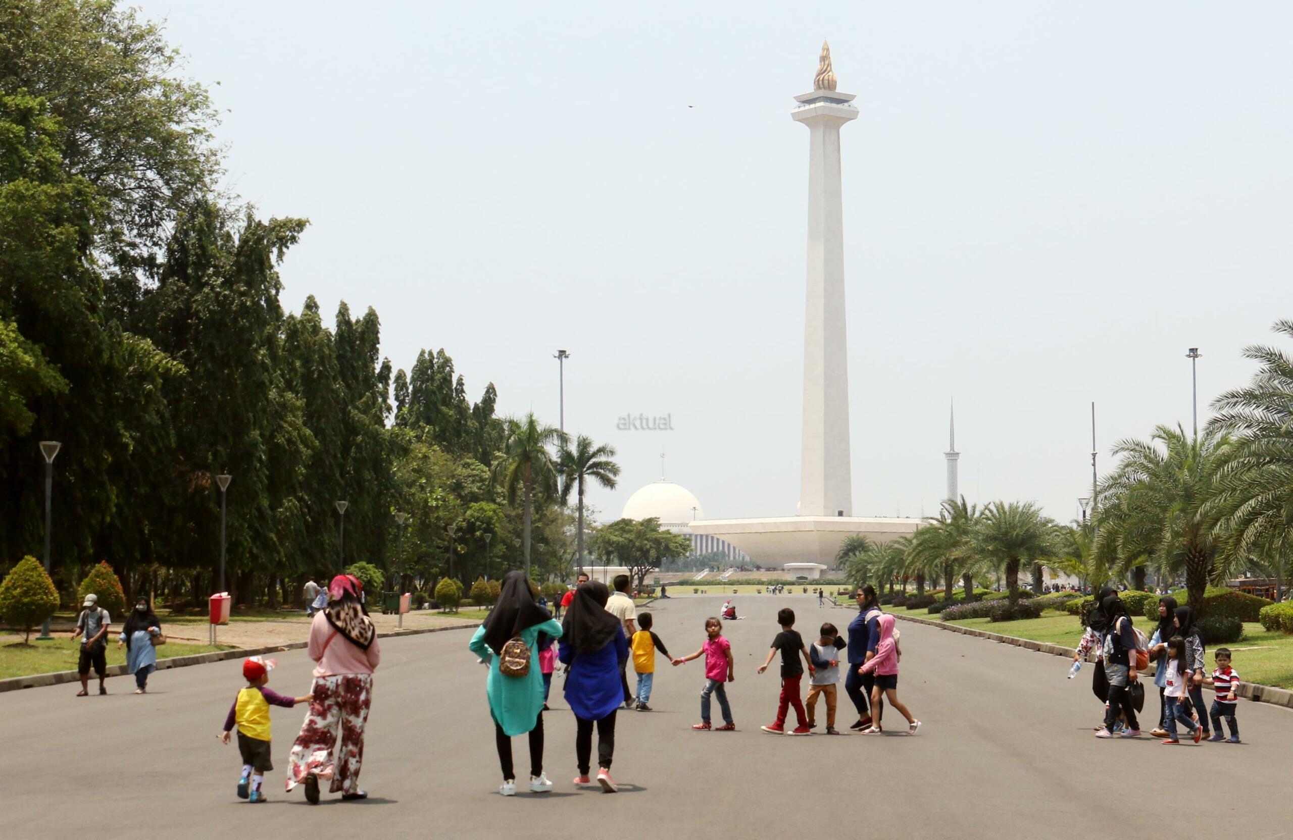 Pengunjung memadati kawasan wisata Monas di Jakarta, Kamis (21/9/2017). Kawasan Monumen Nasional (Monas) ramai pengunjung dan menjadi pilihan warga untuk menikmati suasana libur Tahun Baru Islam 1 Muharram 1439 Hijriyah. AKTUAL/Munzir