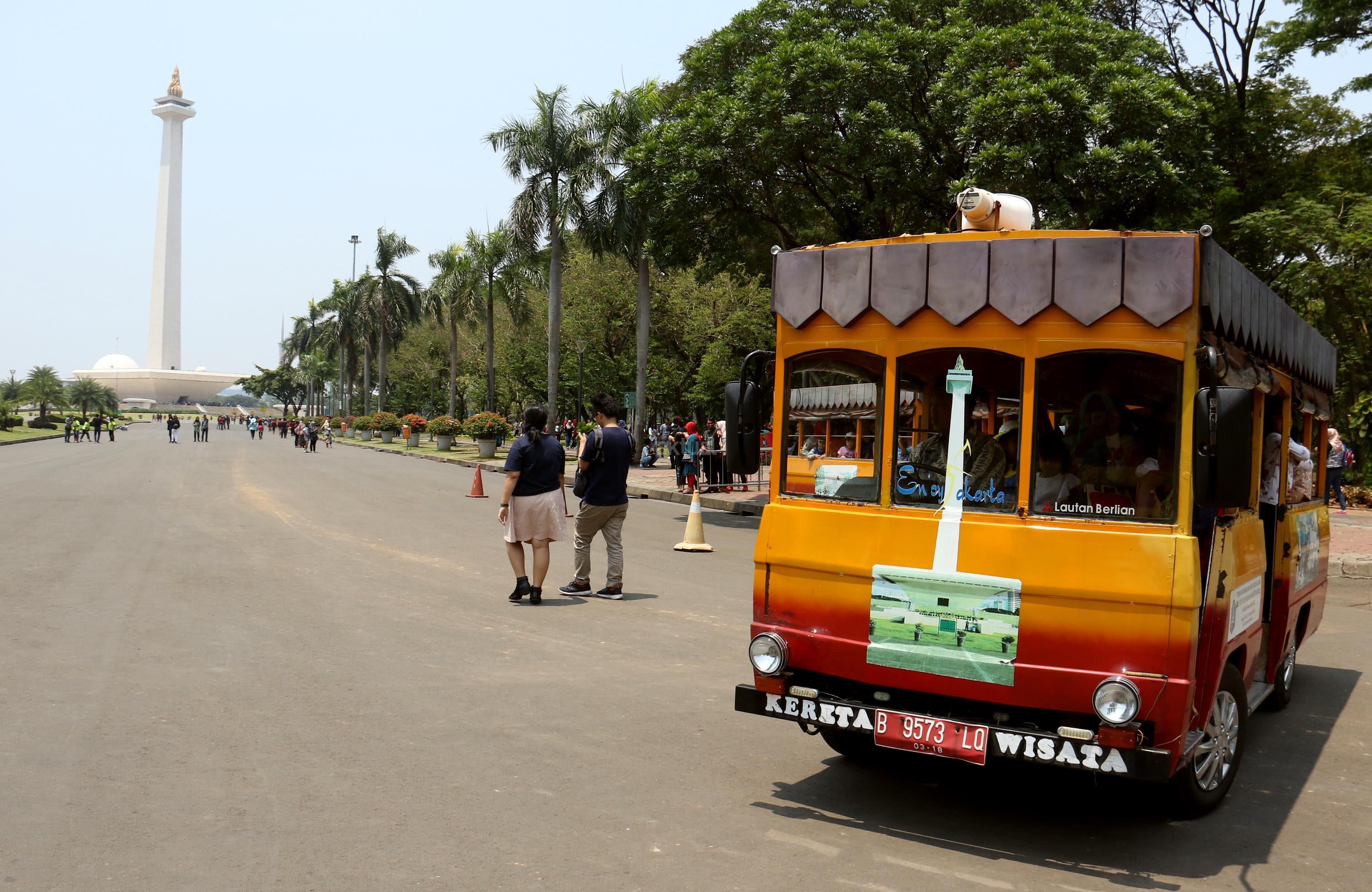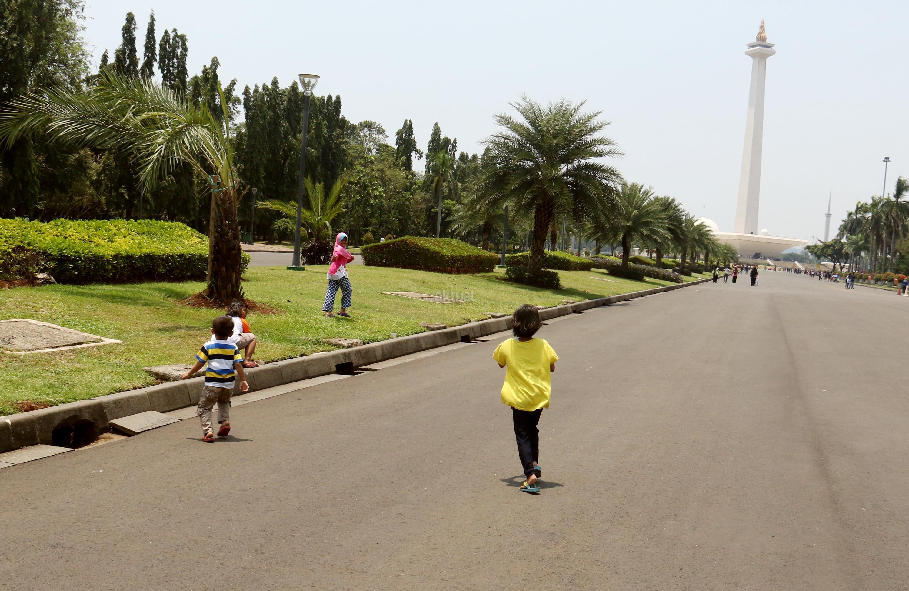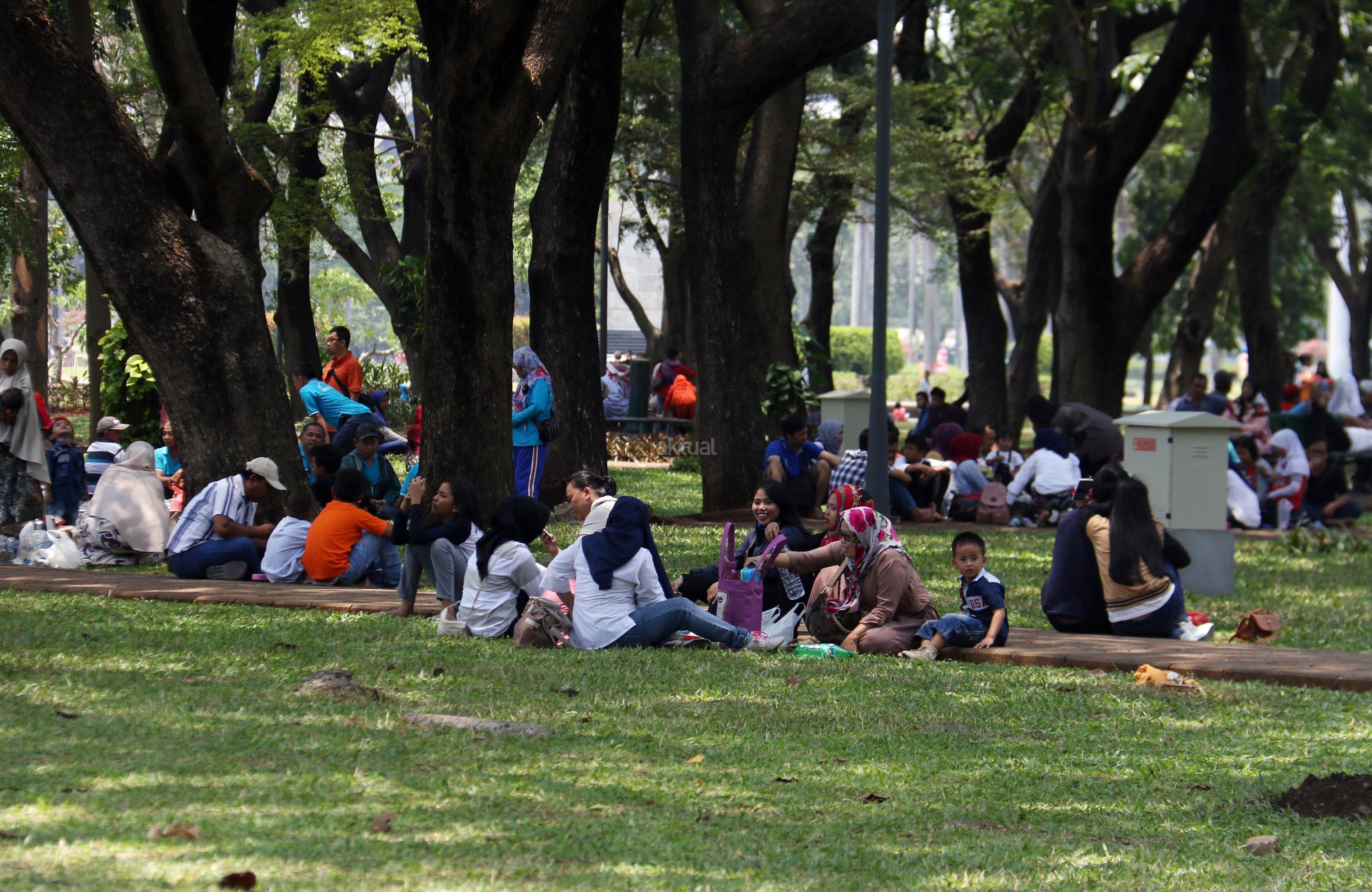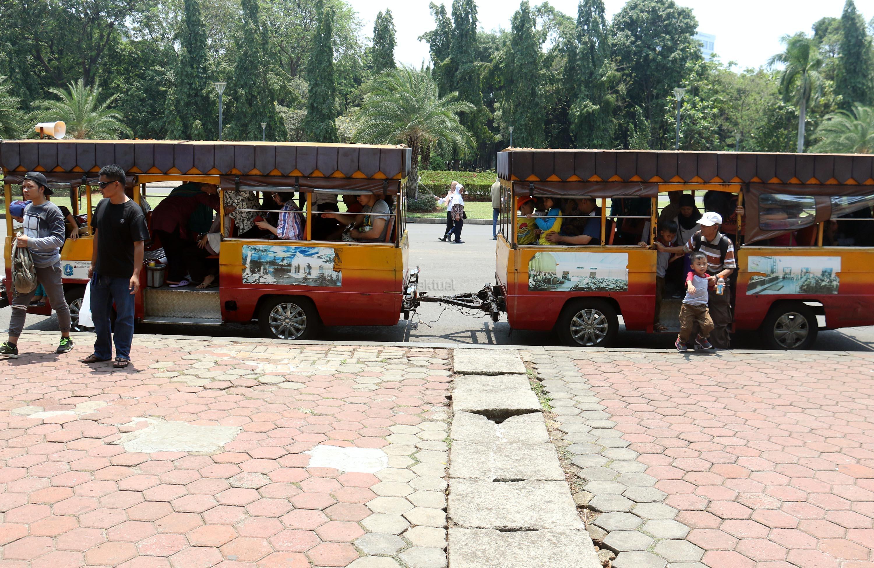 Pengunjung memadati kawasan wisata Monas di Jakarta, Kamis (21/9/2017). Kawasan Monumen Nasional (Monas) ramai pengunjung dan menjadi pilihan warga untuk menikmati suasana libur Tahun Baru Islam 1 Muharram 1439 Hijriyah. AKTUAL/Munzir