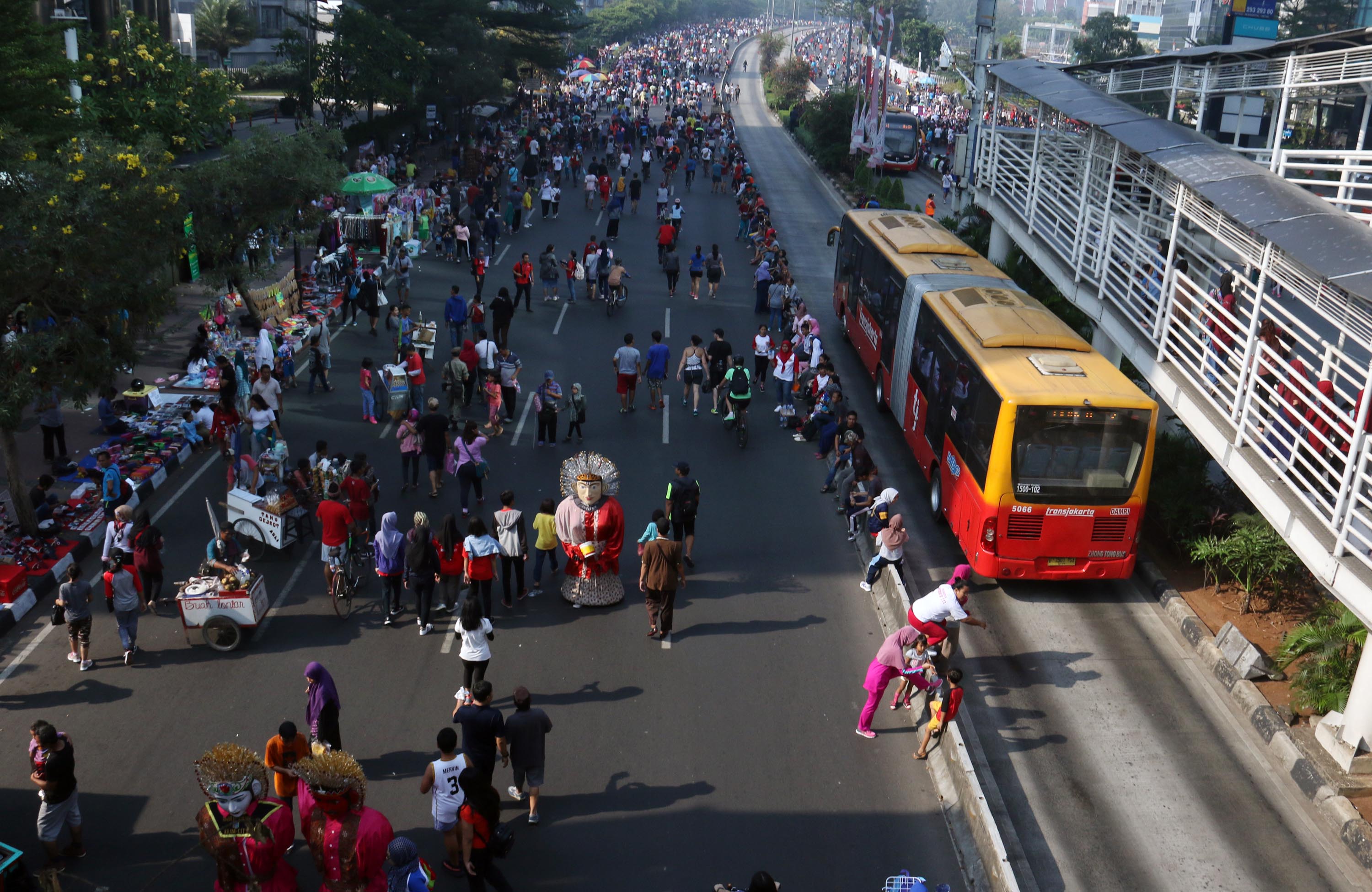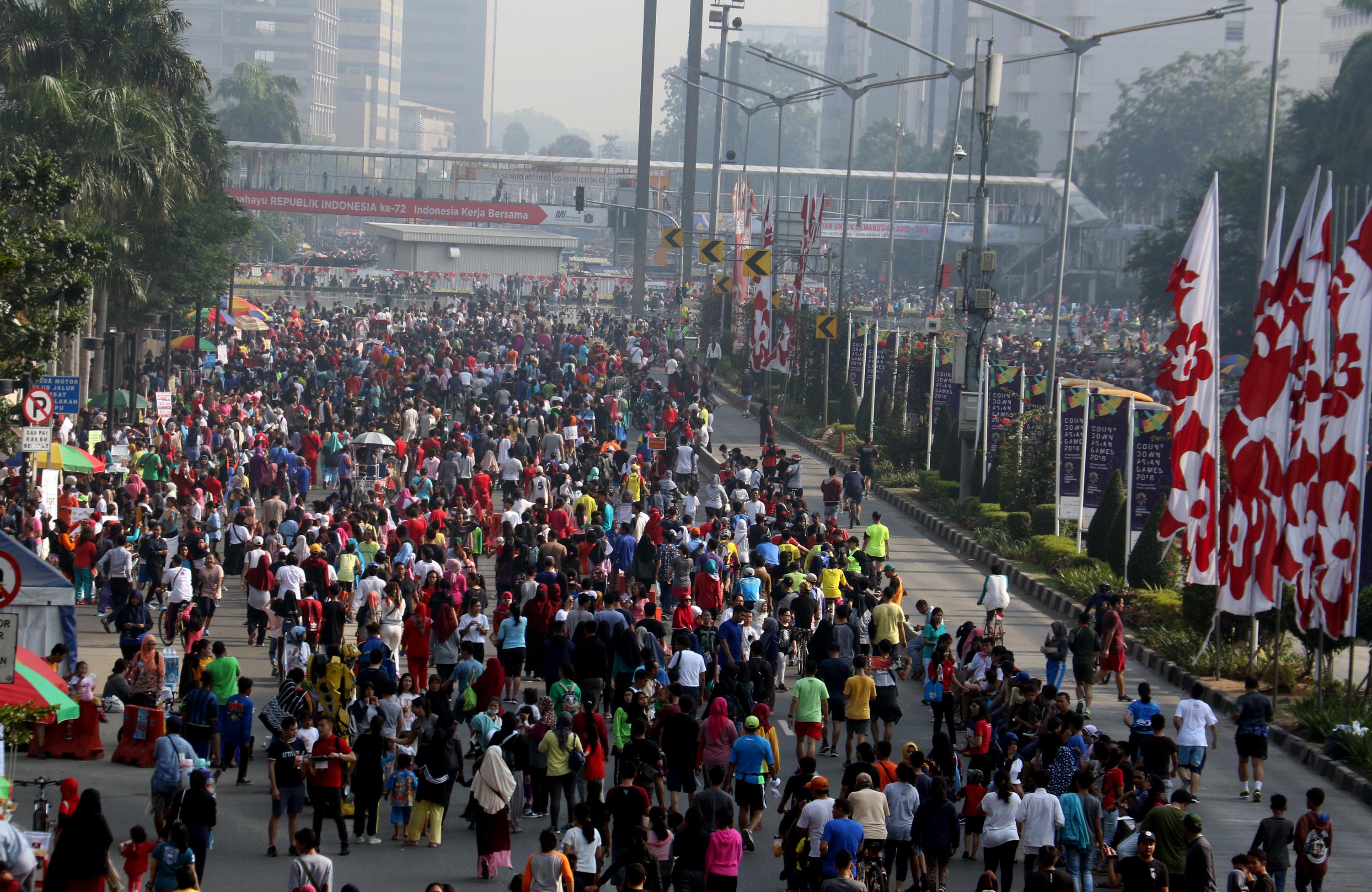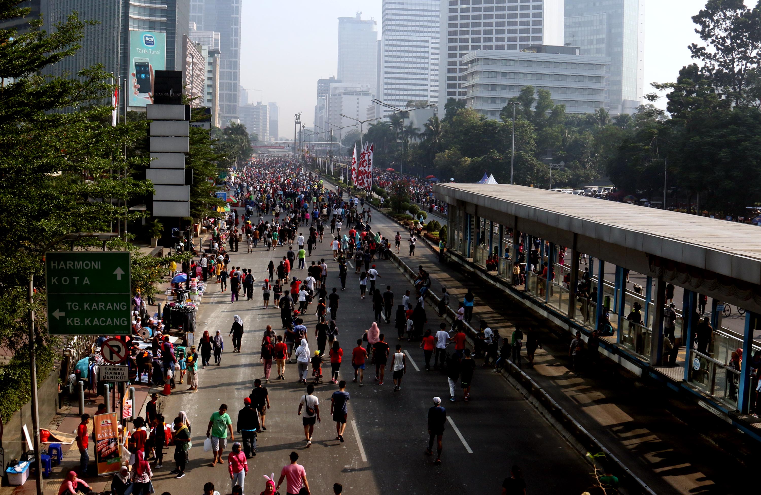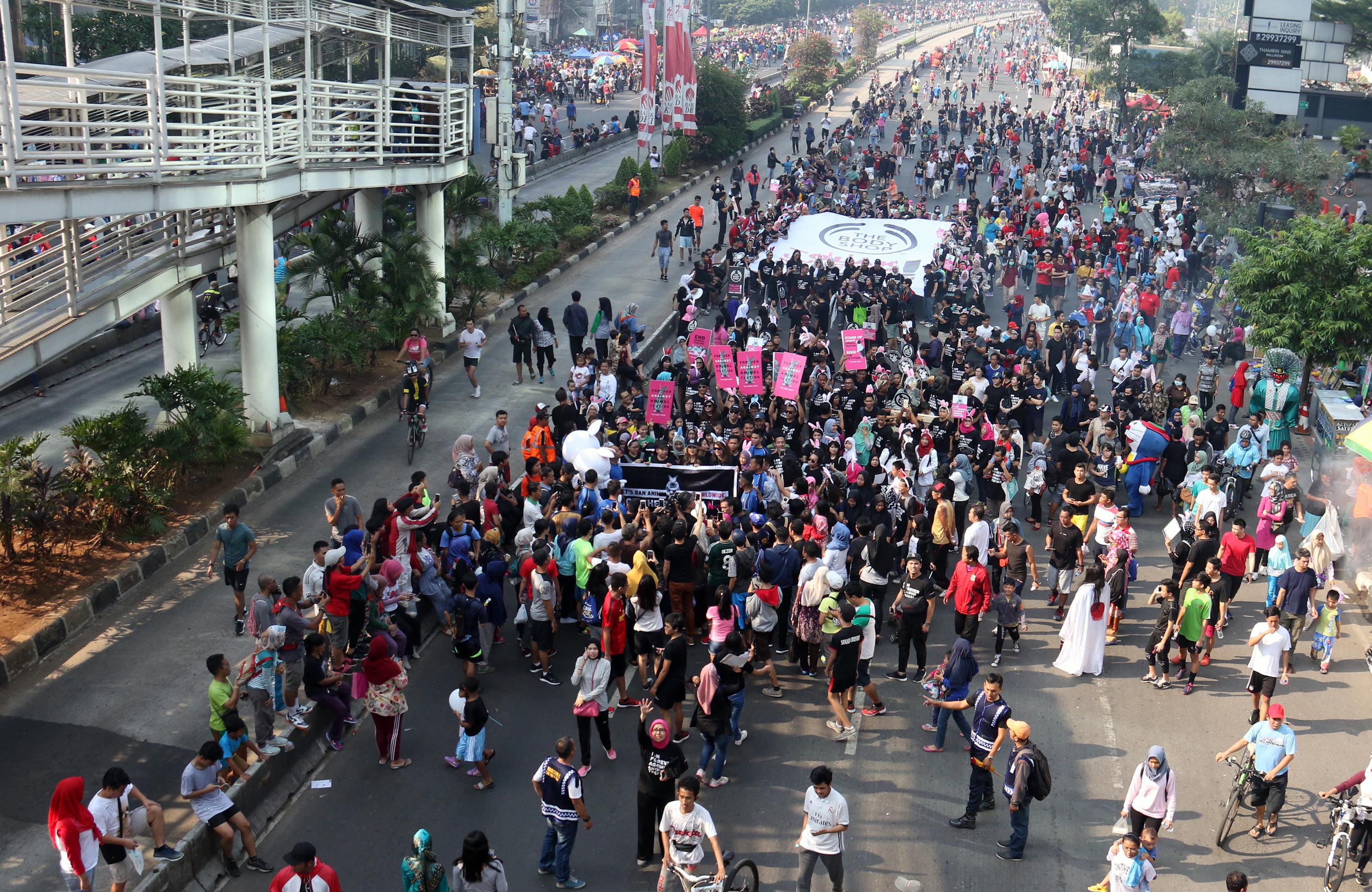 Ribuan masyarakat memadati hari bebas kendaraan atau ‘car free day’ (CFD) di Jakarta, Minggu (3/9/2017). Usai Libur panjang pasca Hari Raya Idul Adha 1438 Hijriah dimanfaatkan masyarakat untuk beraktifitas di car free day. AKTUAL/Munzir