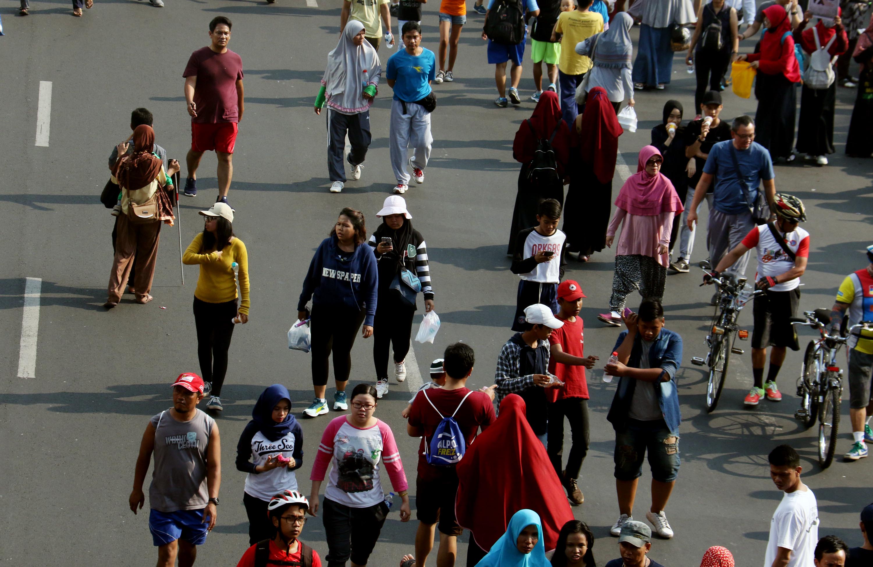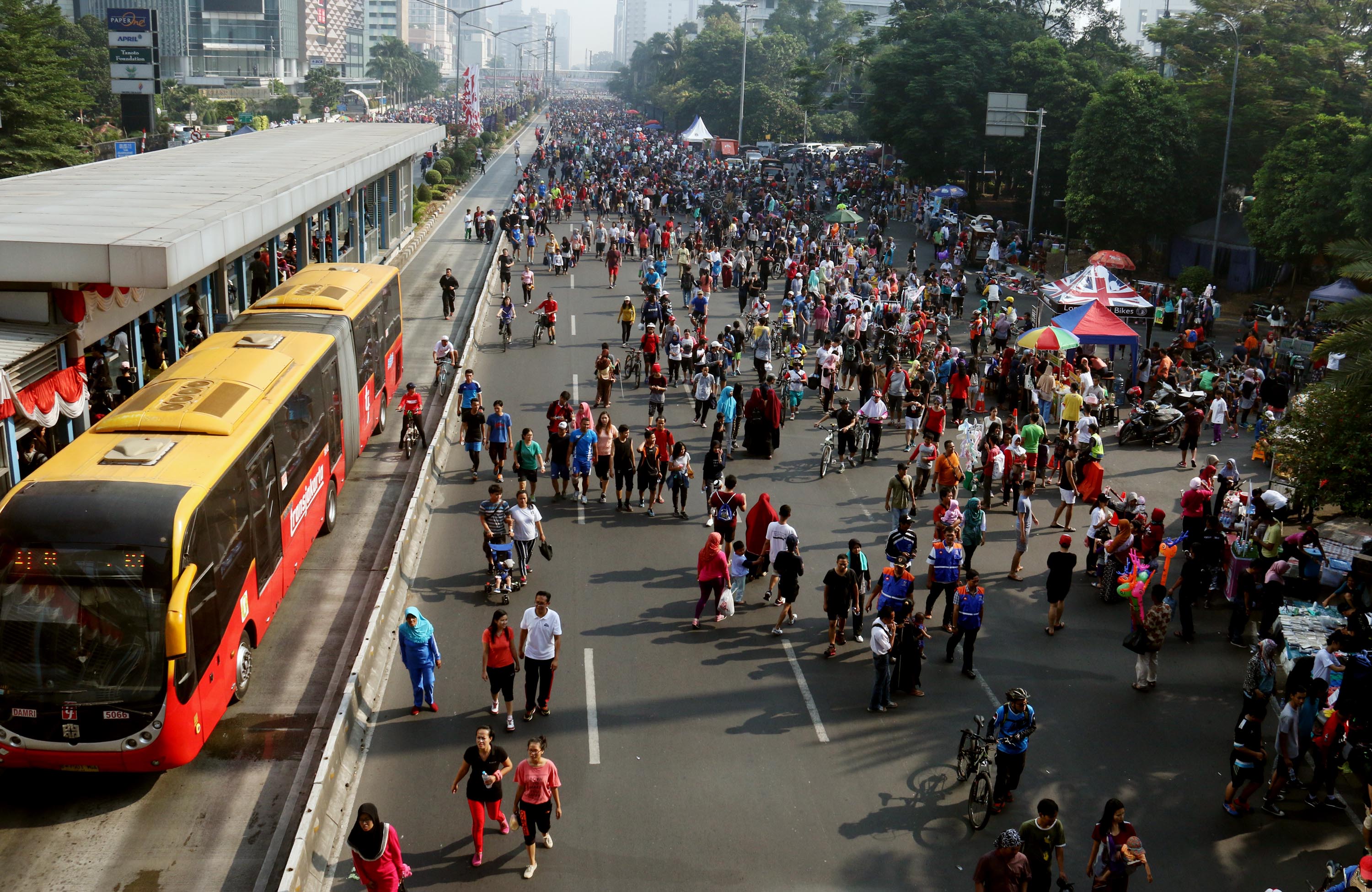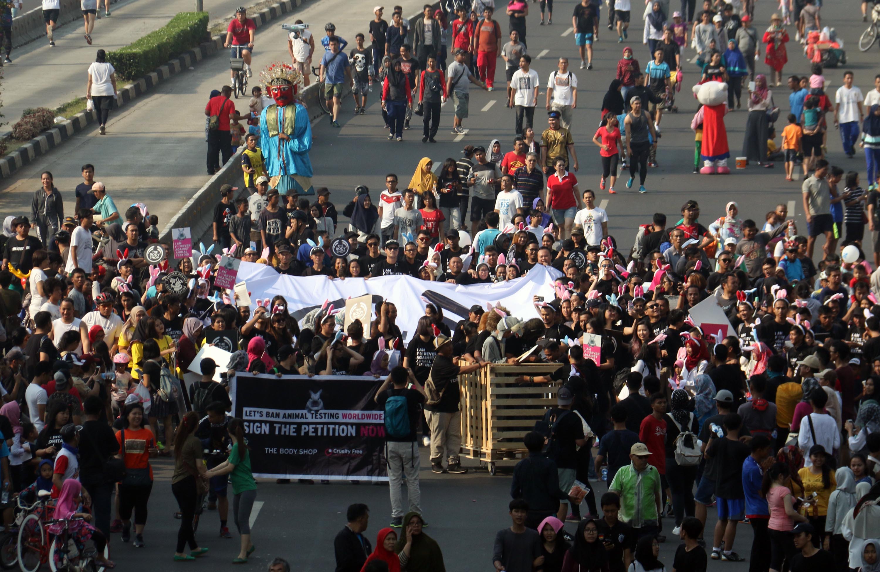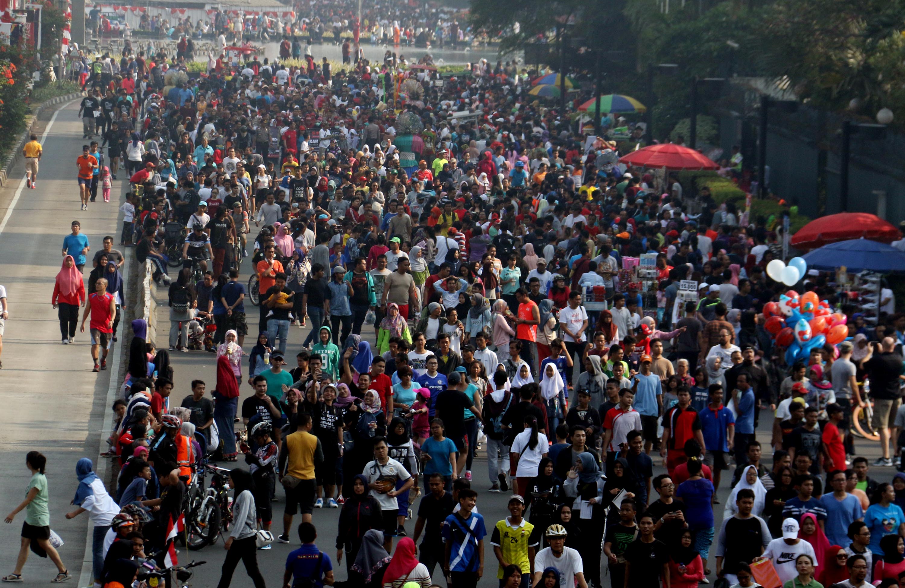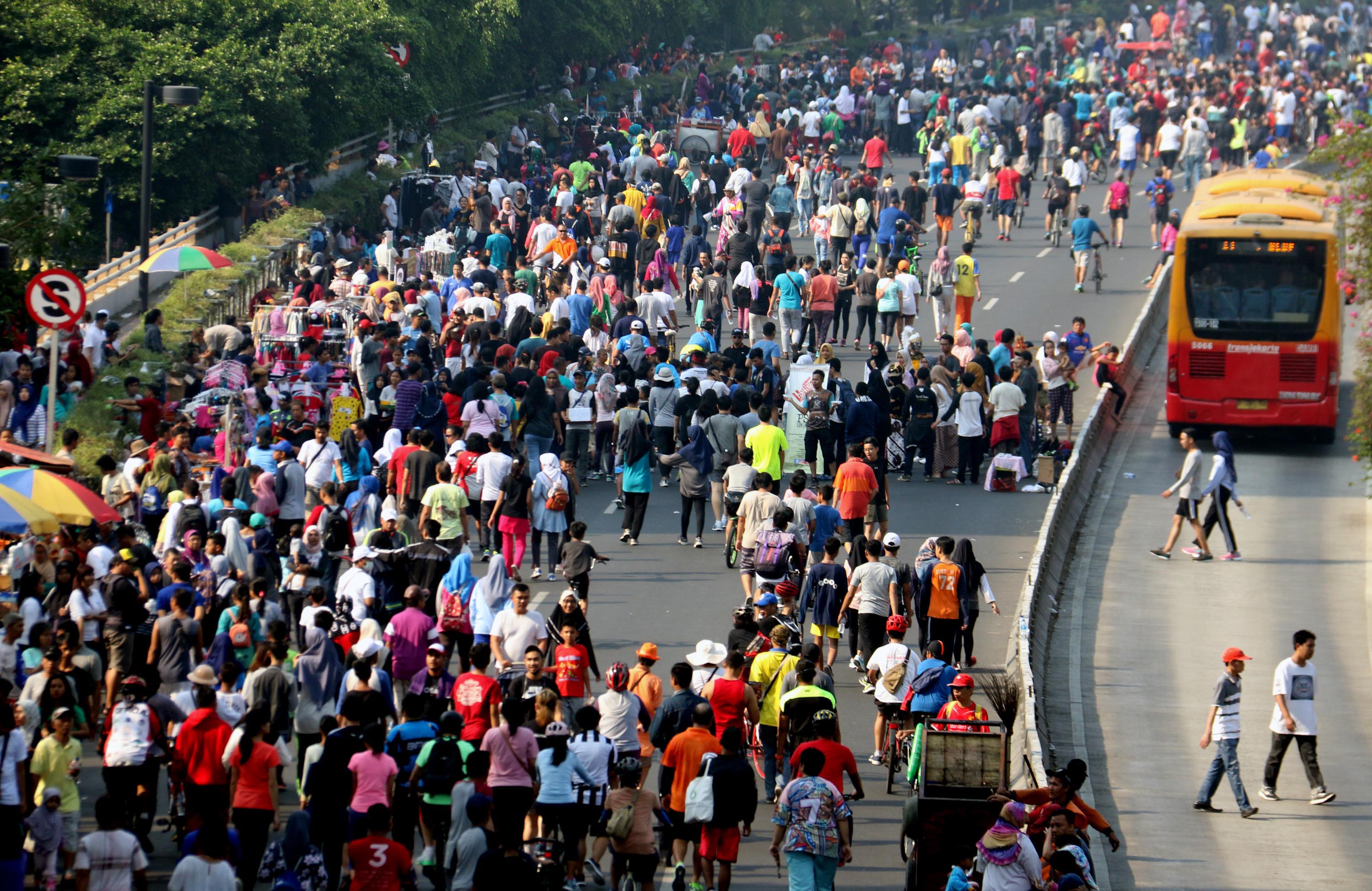Ribuan masyarakat memadati hari bebas kendaraan atau ‘car free day’ (CFD) di Jakarta, Minggu (3/9/2017). Usai Libur panjang pasca Hari Raya Idul Adha 1438 Hijriah dimanfaatkan masyarakat untuk beraktifitas di car free day. AKTUAL/Munzir