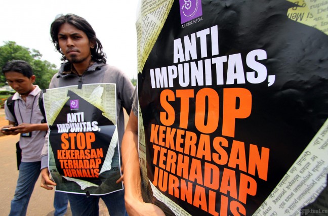 Hingga kini puluhan wartawan masih melakukan aksi menuntut pertanggungjawaban dari pihak kepolisian.