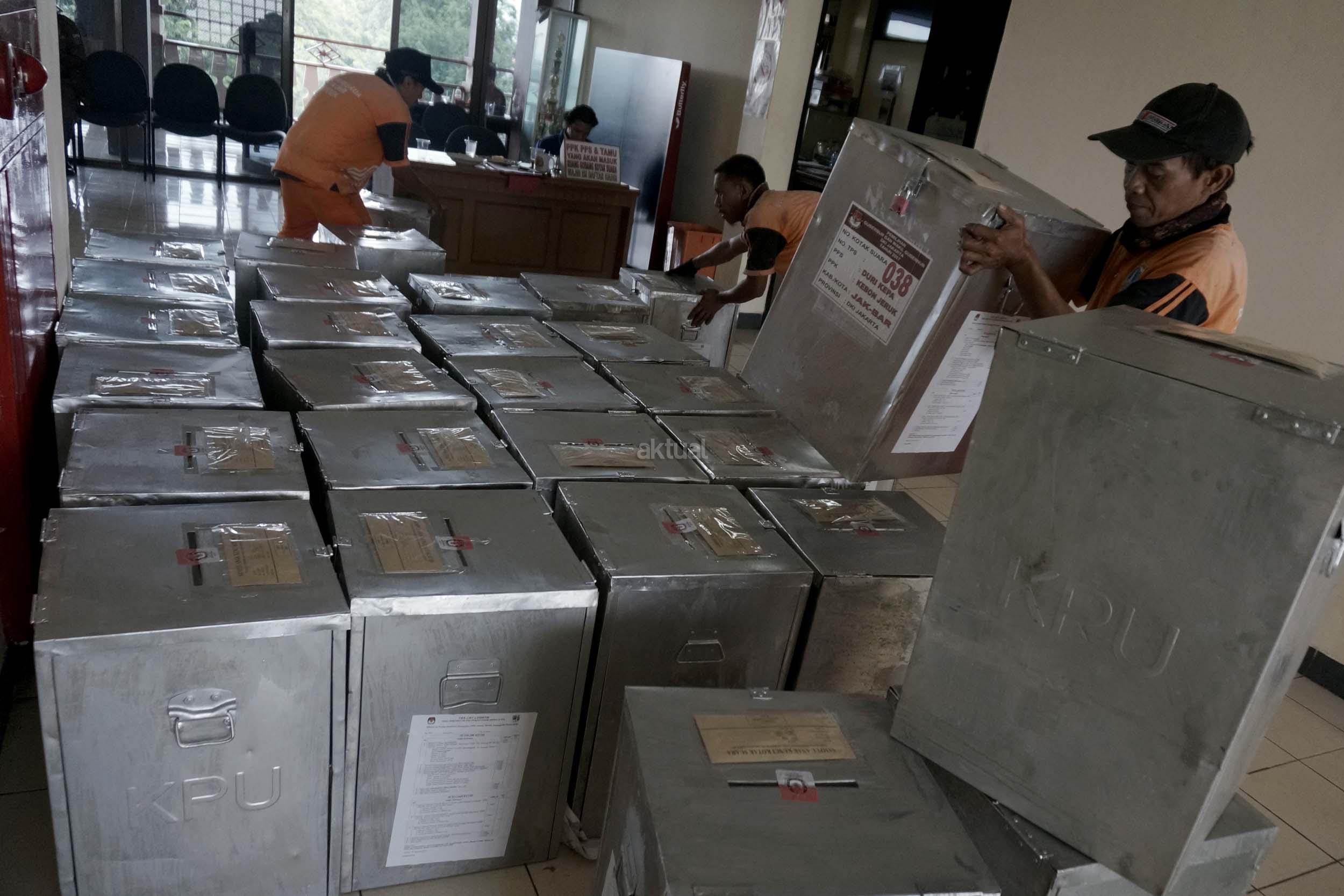 Jumlah kotak suara di Kecamatan Kebon Jeruk, Jakarta Barat yang akan digunakan pada pencoblosan 15 Februari mendatang berjumlah 436 buah. Aktual.com/Munzir.