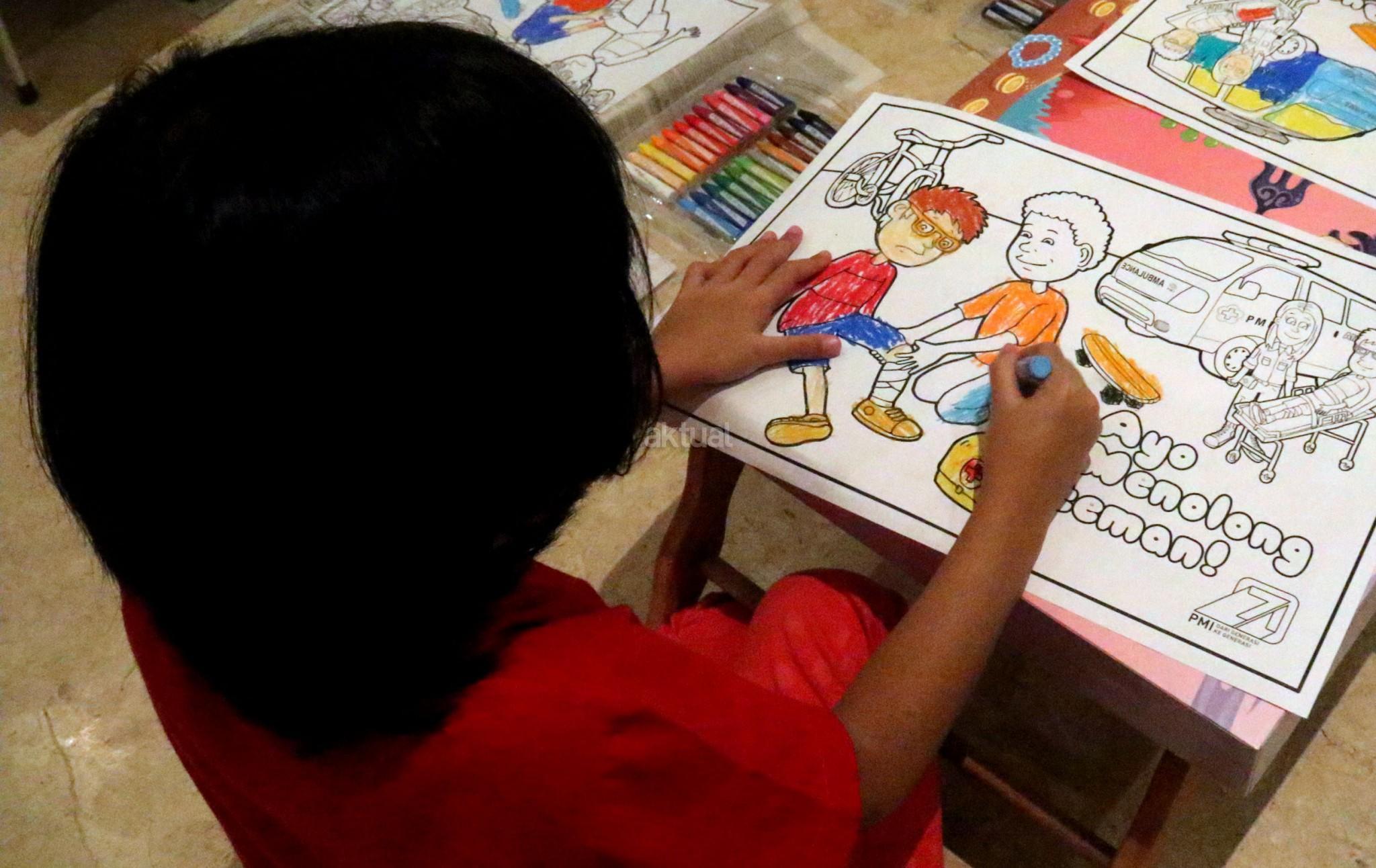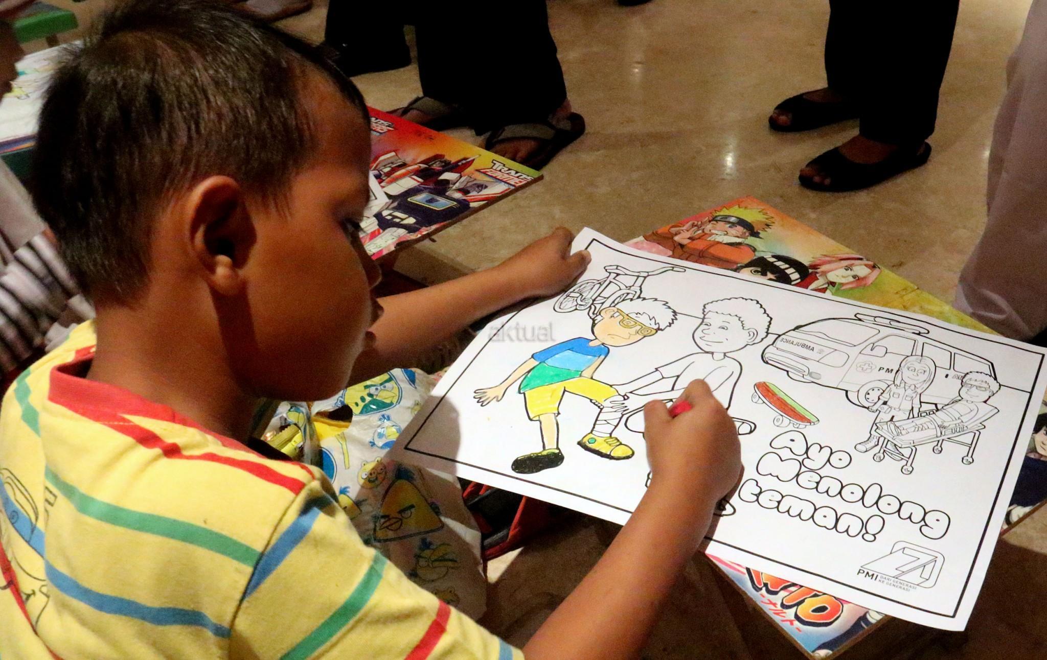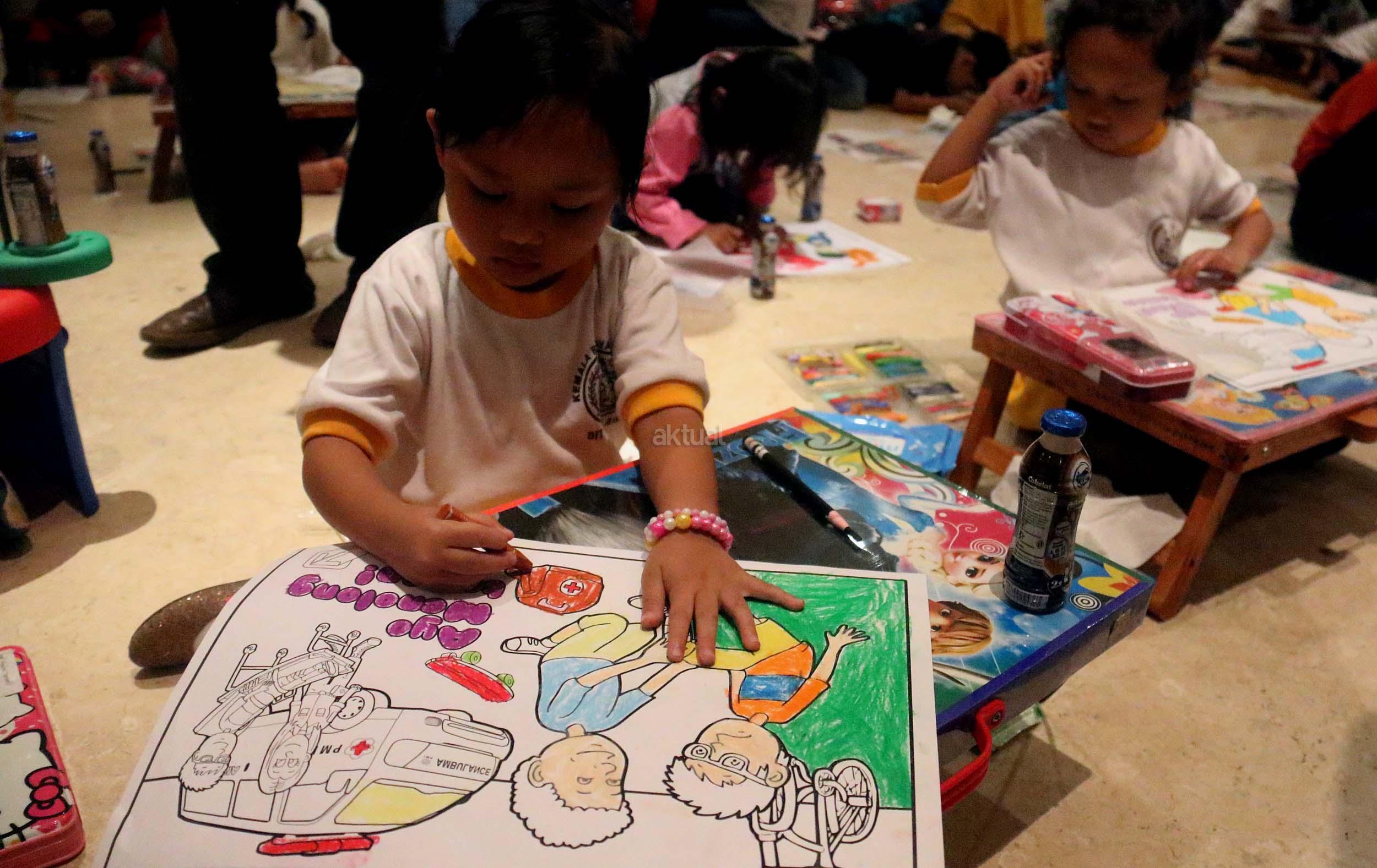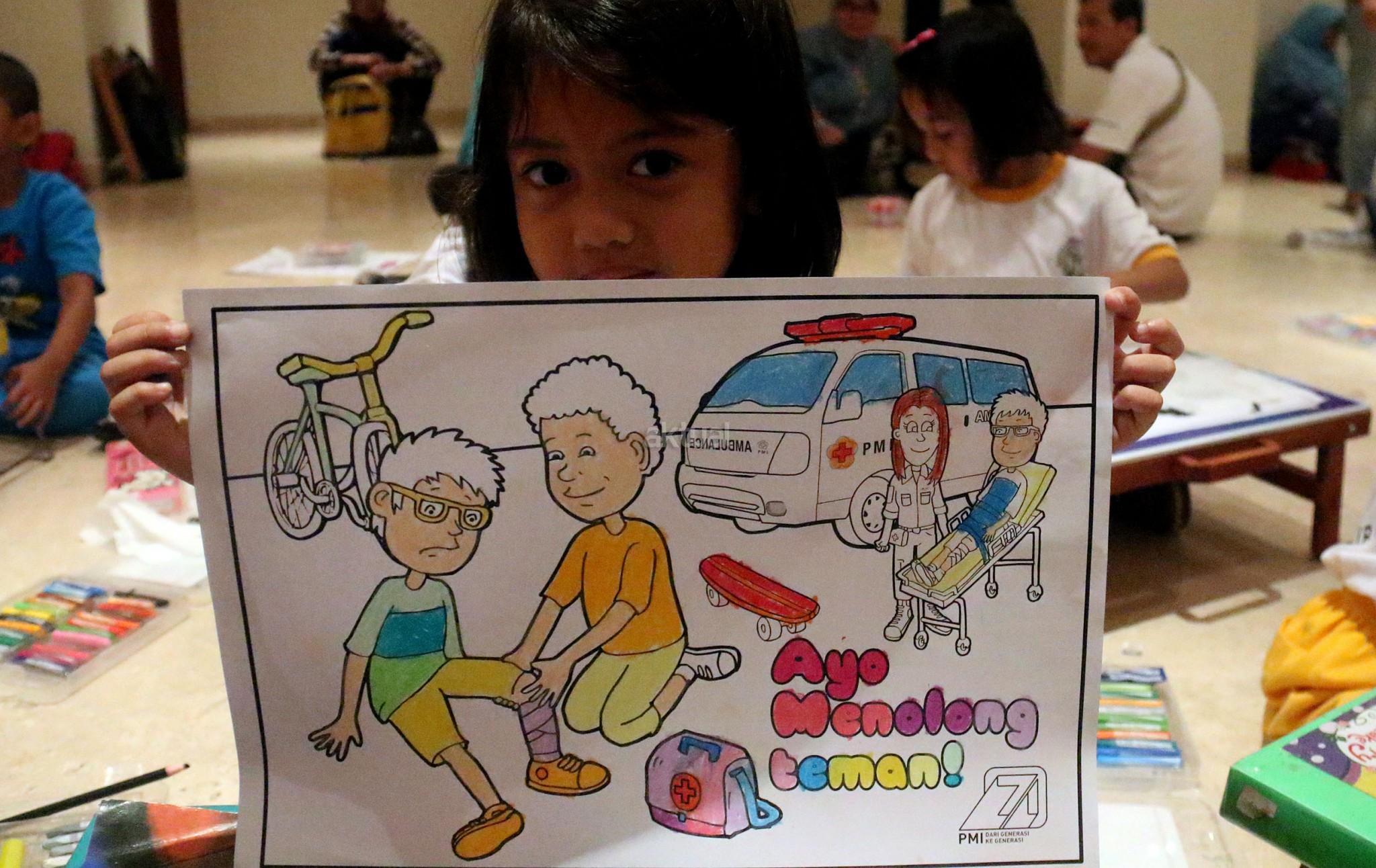 Sejumlah anak mengikuti lomba mewarnai saat acara rangkaian HUT PMI ke-71 dan memperingati hari pertolongan pertama di Jakarta, Minggu (25/9/2016). Pada rangkaian peringatan HUT ke-71, PMI melakukan pembinaan kepada siswa-siswi Sekolah Dasar akan pentingnya pertolongan pertama, PMI juga mengelar lomba pertolongan pertama untuk Palang Merah Remaja mulai tingkat SD dan Madya tingkat SMP sejabodetabek yang diikuti sekitar 500 siswa yang bertujuan memberikan pengertian dan penjelasan seputar pertolongan pertama yang dapat dilakukan oleh anak anak sebagai tindakan nyata membantu situasi darurat dirumah atau lingkungan sekolah. Aktual/Munzir