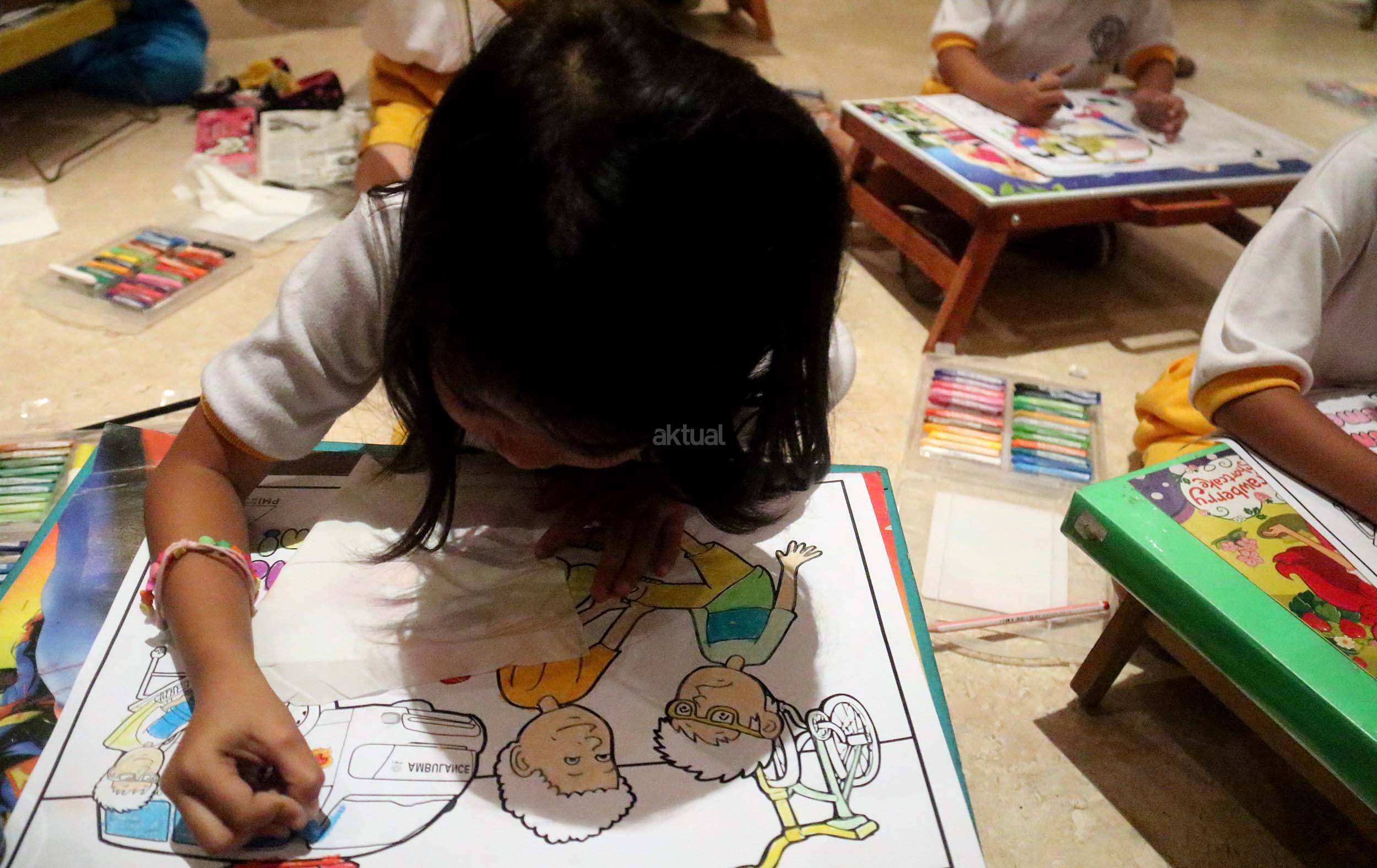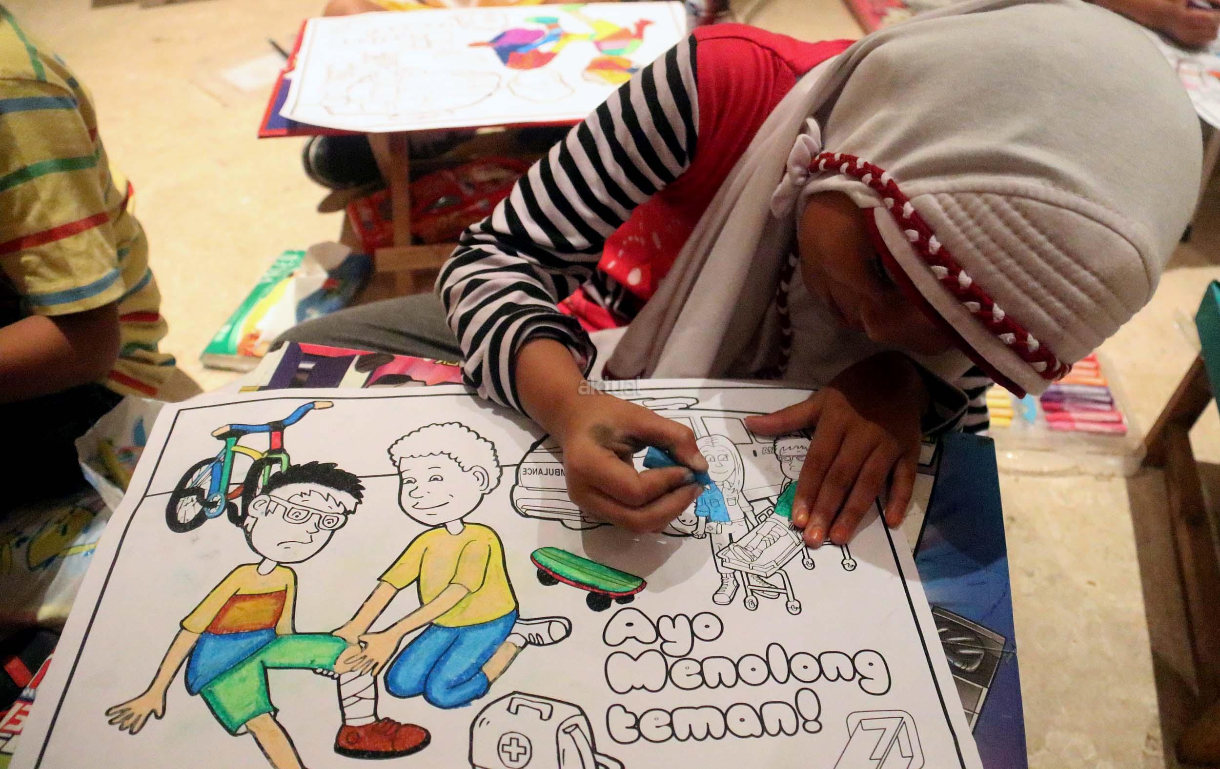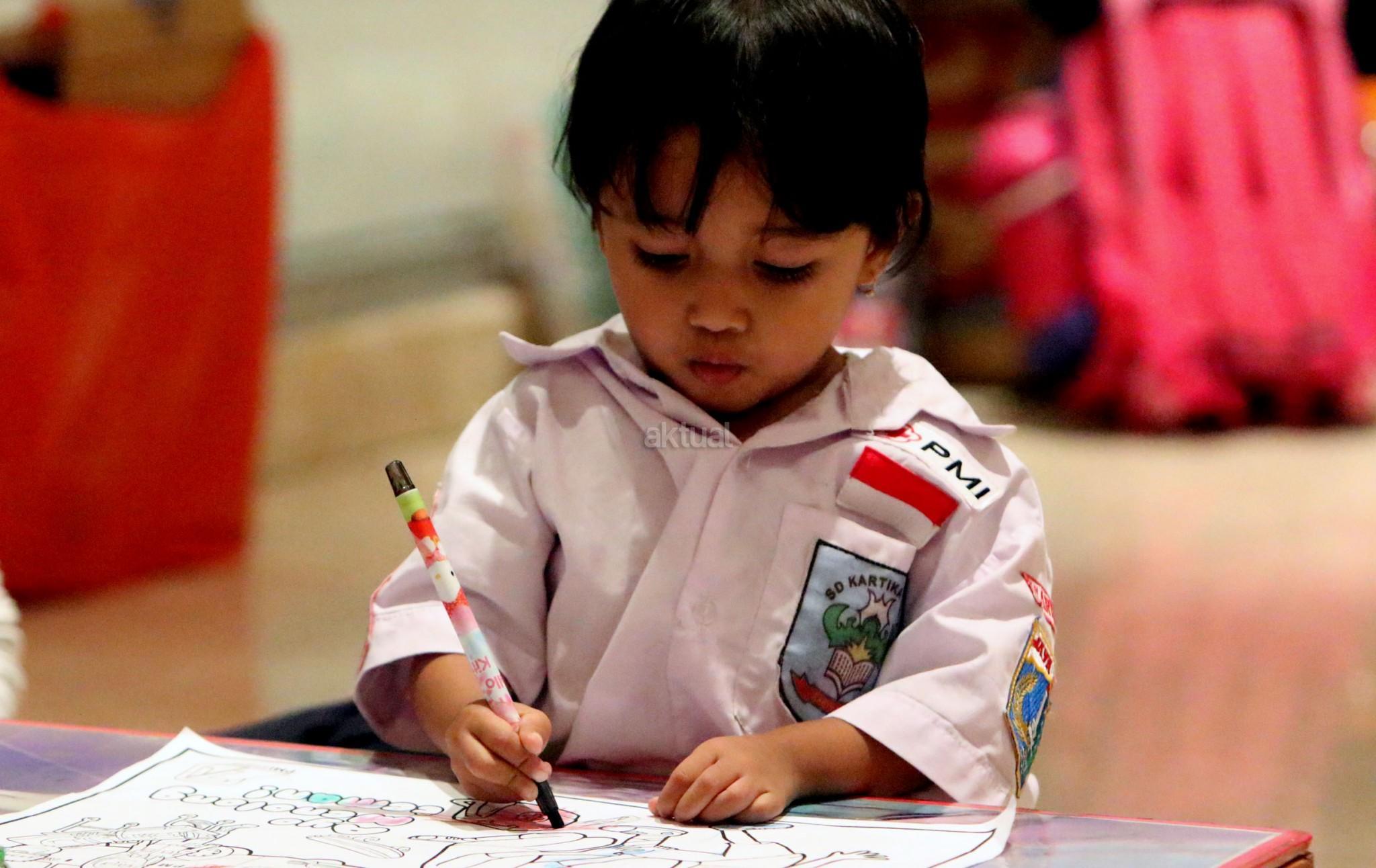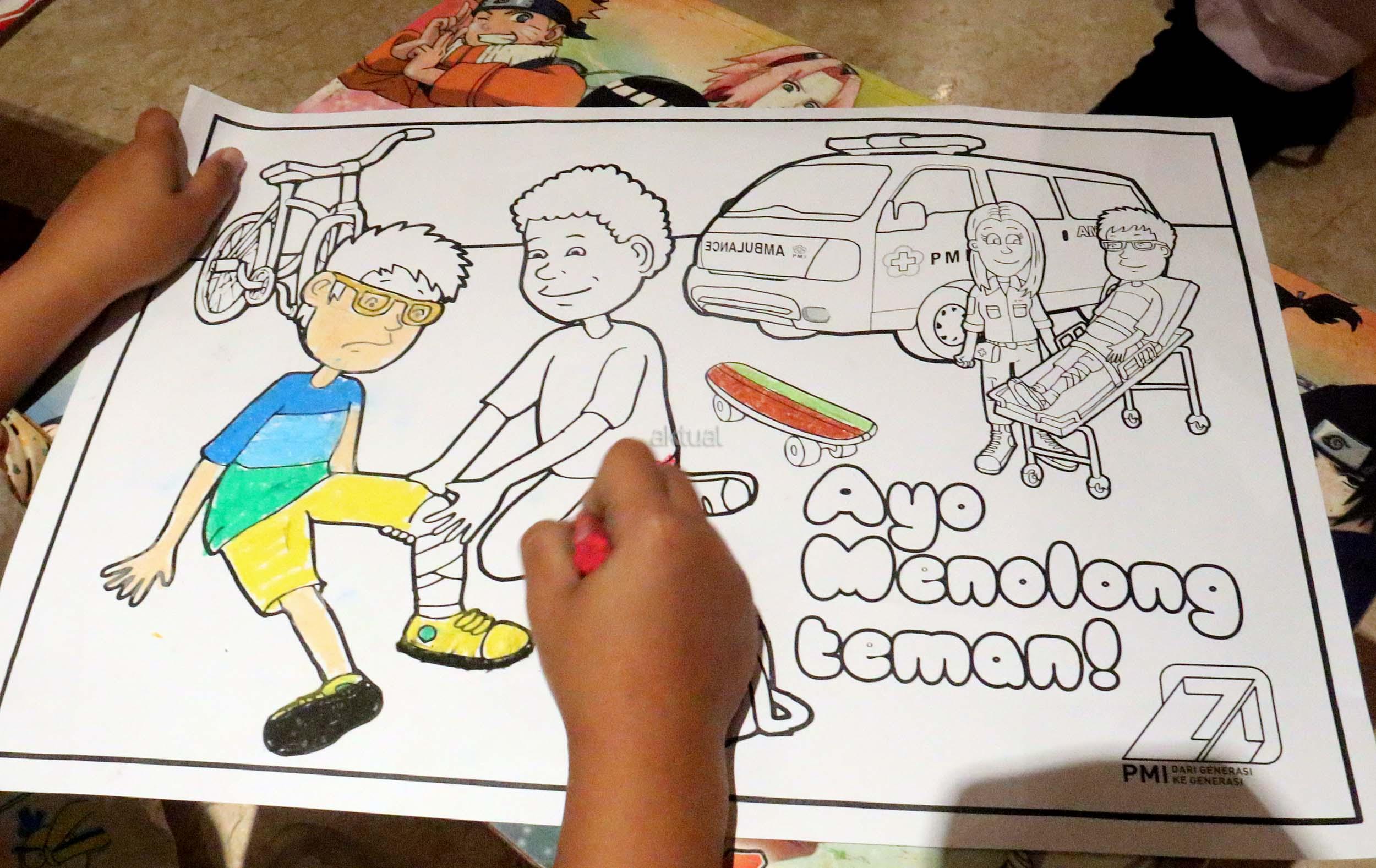 Sejumlah anak mengikuti lomba mewarnai saat acara rangkaian HUT PMI ke-71 dan memperingati hari pertolongan pertama di Jakarta, Minggu (25/9/2016). Pada rangkaian peringatan HUT ke-71, PMI melakukan pembinaan kepada siswa-siswi Sekolah Dasar akan pentingnya pertolongan pertama, PMI juga mengelar lomba pertolongan pertama untuk Palang Merah Remaja mulai tingkat SD dan Madya tingkat SMP sejabodetabek yang diikuti sekitar 500 siswa yang bertujuan memberikan pengertian dan penjelasan seputar pertolongan pertama yang dapat dilakukan oleh anak anak sebagai tindakan nyata membantu situasi darurat dirumah atau lingkungan sekolah. Aktual/Munzir