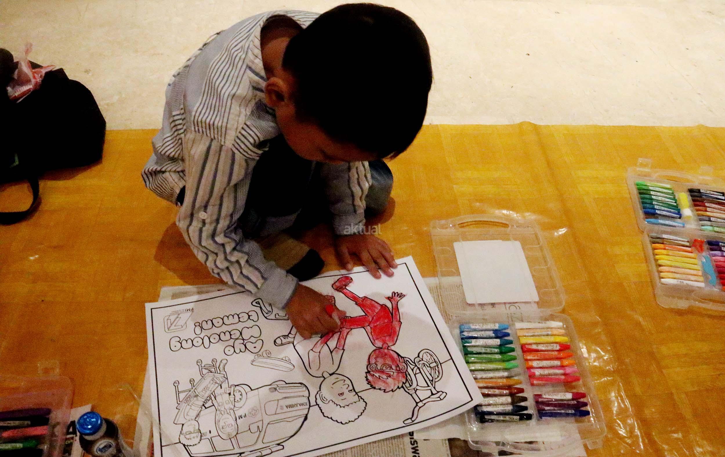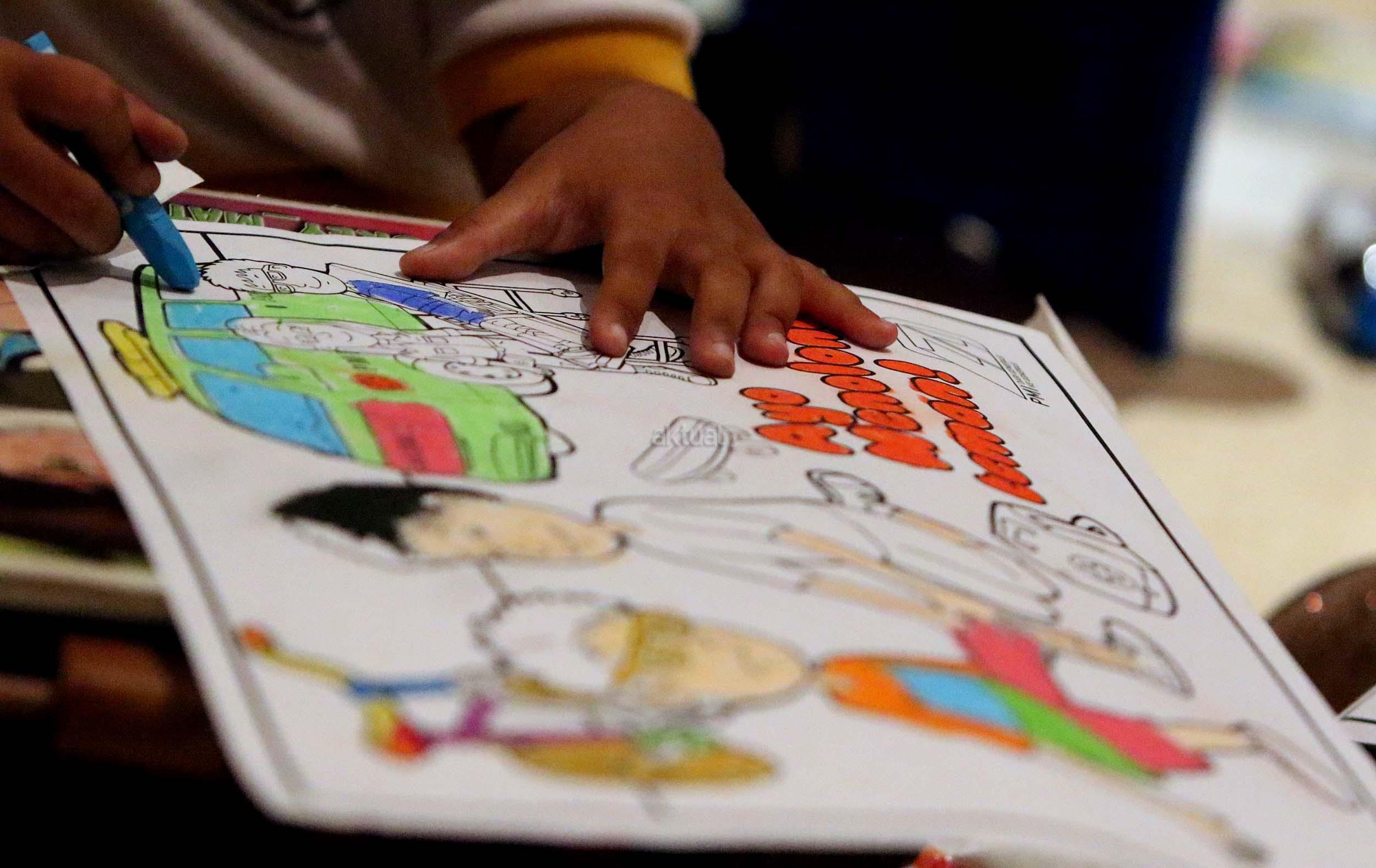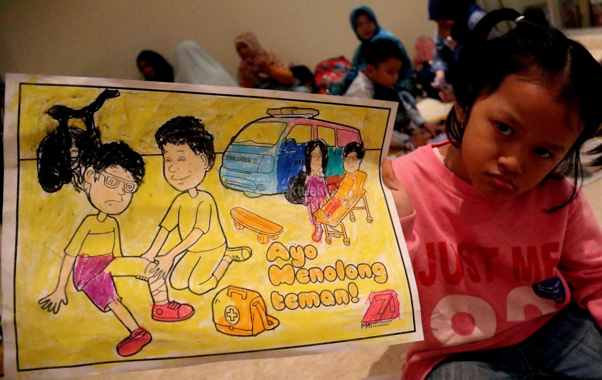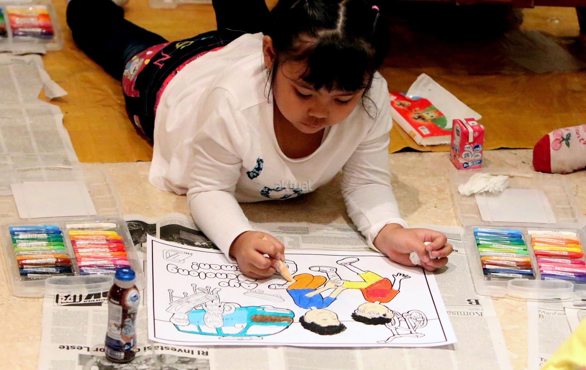 Sejumlah anak mengikuti lomba mewarnai saat acara rangkaian HUT PMI ke-71 dan memperingati hari pertolongan pertama di Jakarta, Minggu (25/9/2016). Pada rangkaian peringatan HUT ke-71, PMI melakukan pembinaan kepada siswa-siswi Sekolah Dasar akan pentingnya pertolongan pertama, PMI juga mengelar lomba pertolongan pertama untuk Palang Merah Remaja mulai tingkat SD dan Madya tingkat SMP sejabodetabek yang diikuti sekitar 500 siswa yang bertujuan memberikan pengertian dan penjelasan seputar pertolongan pertama yang dapat dilakukan oleh anak anak sebagai tindakan nyata membantu situasi darurat dirumah atau lingkungan sekolah. Aktual/Munzir