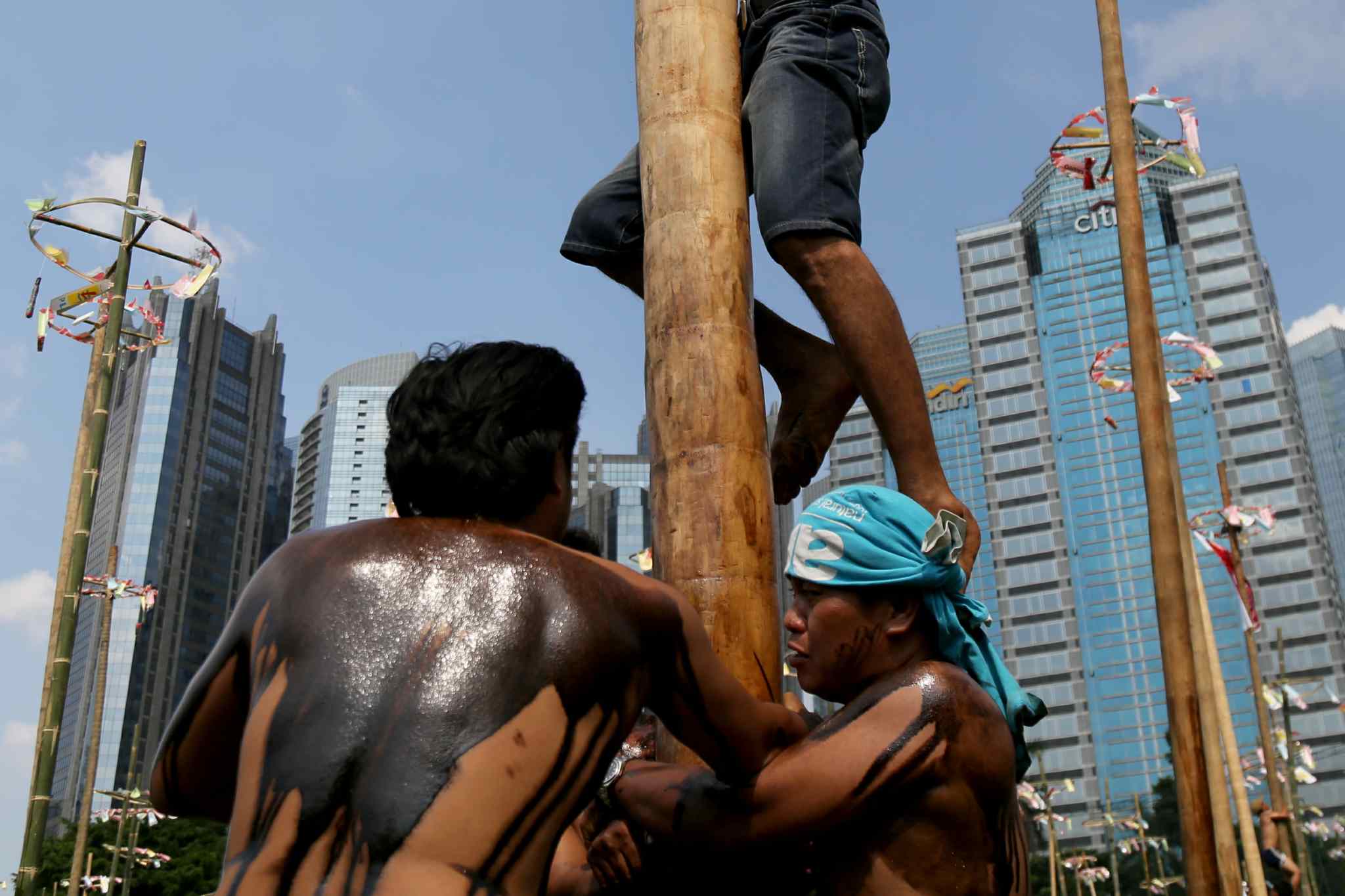 Lomba Panjat Pinang HUT Kemerdekaan RI ke 71 di Senayan