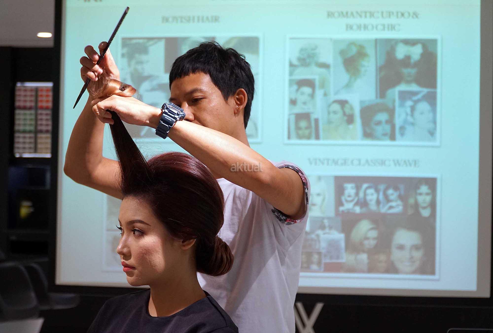 Siswa penata rambut LOreal berlatih menata rambut di Jakarta, Kamis (19/10/2017).Sejak terlibat pada 2012 hingga 2017, LOreal Professionnel telah mengkontribusikan hampir 300 penata rambut untuk menata lebih dari 10 ribu model di lebih dari 450 fashion show sepanjang pekan mode Jakarta berlangsung. AKTUAL/Eko S Hilman