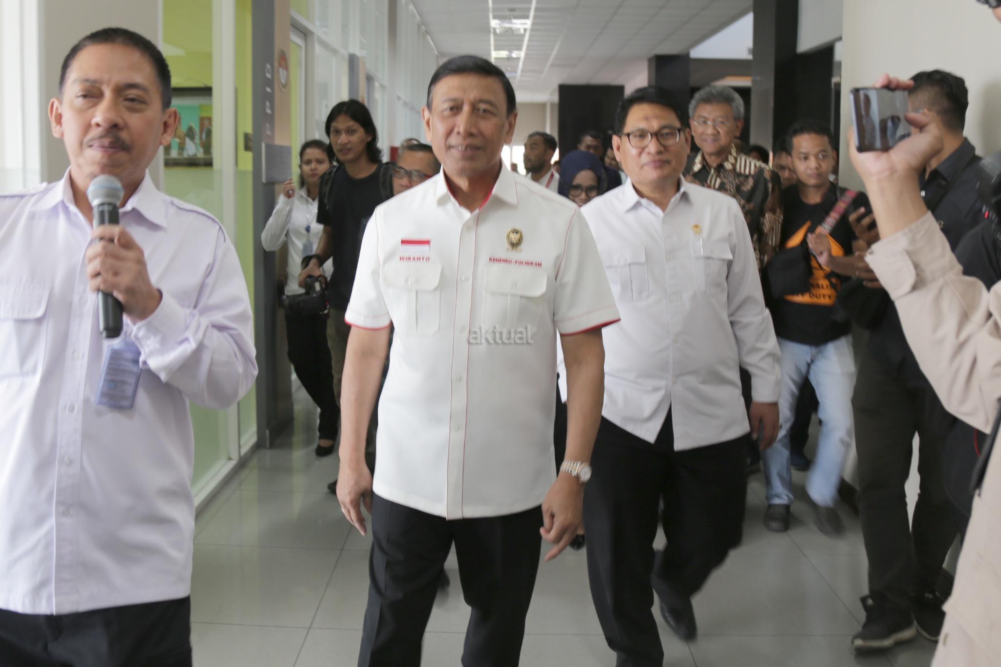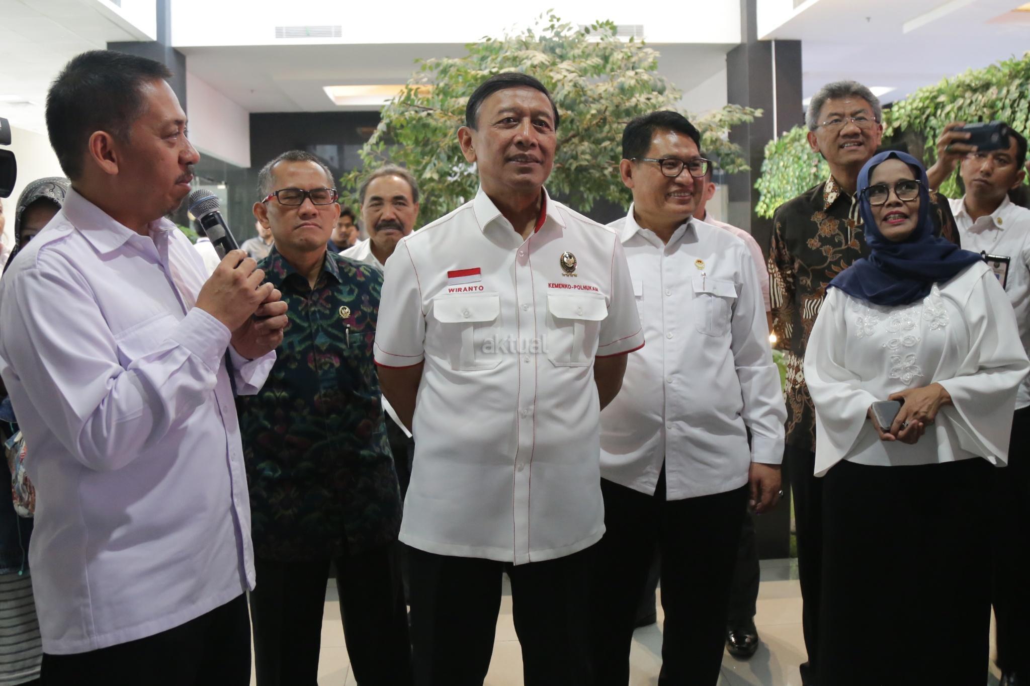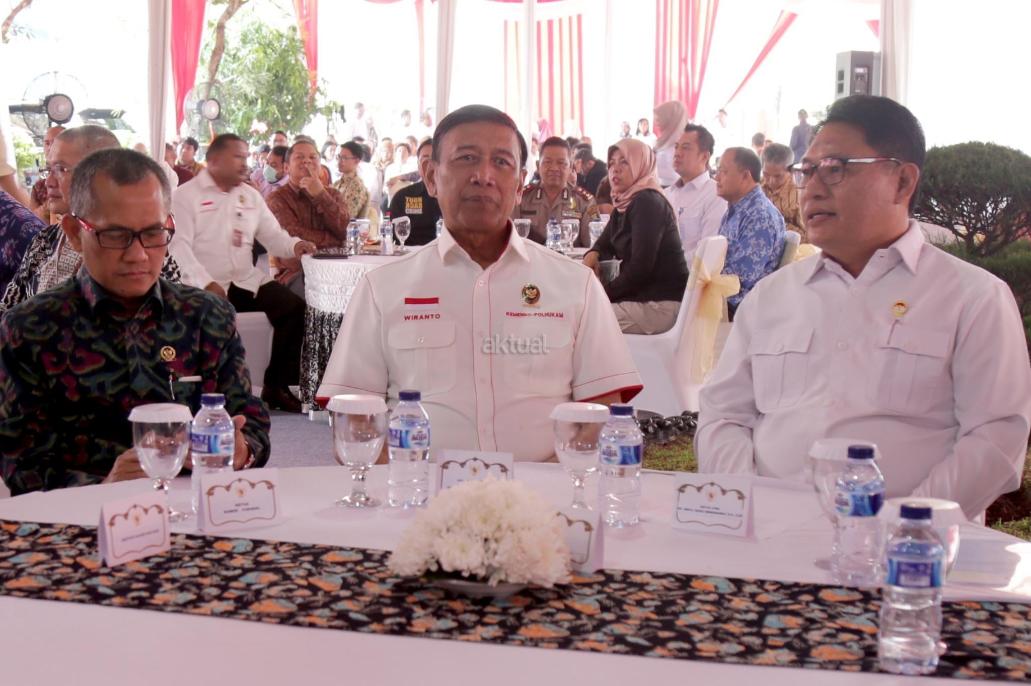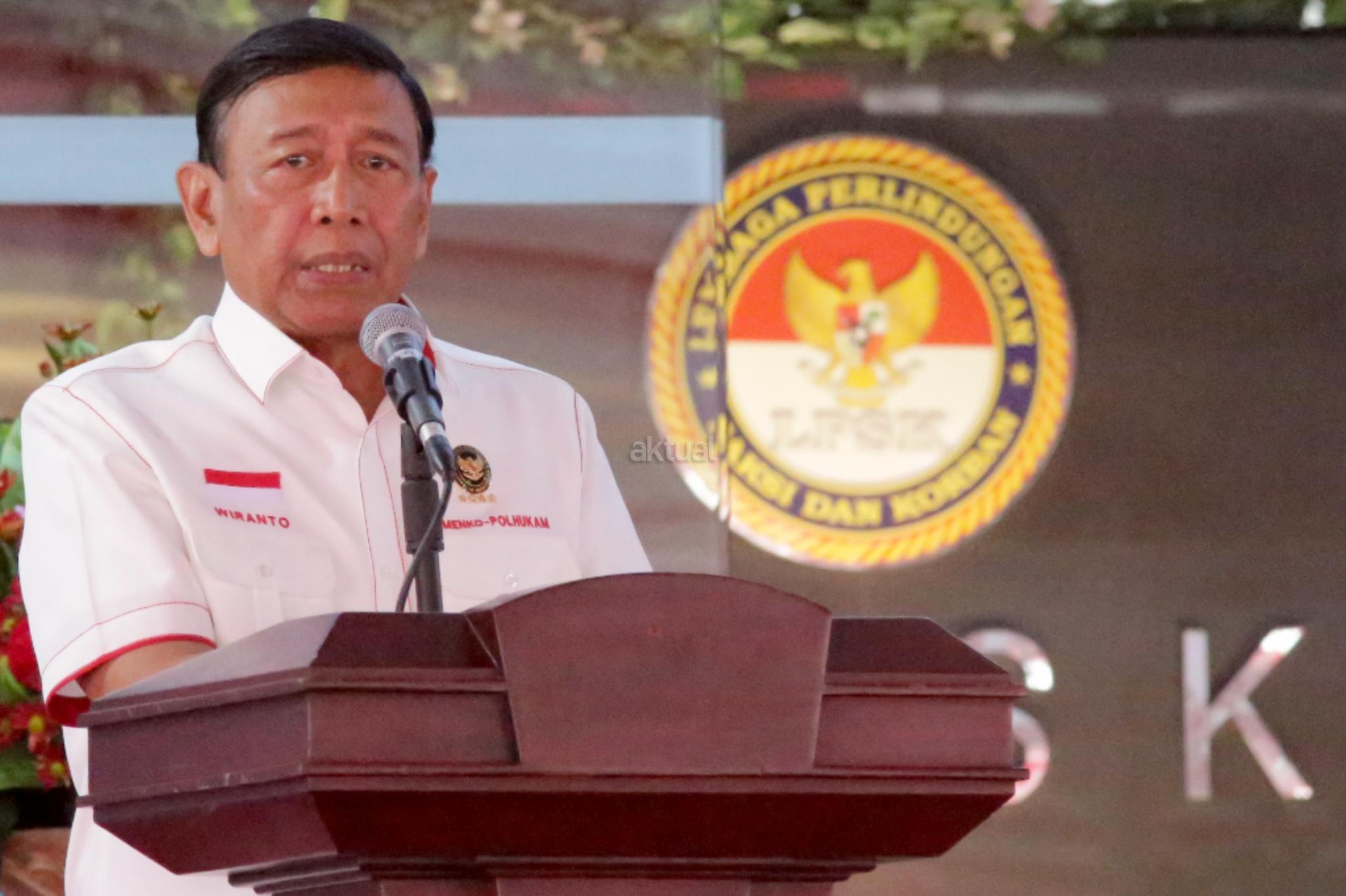Menkopolhukam Wiranto didampingi Ketua Lembaga Perlindungan Saksi dan Korban Abdul Haris Semendawai saat menghadiri peresnian gedung baru LPSK di Jakarta, Kamis (6/9). Lembaga Perlindungan Saksi dan Korban (LPSK) menyerahkan kompensasi sebesar Rp 1,6 miliar kepada korban tiga peristiwa terorisme yaitu peristiwa Thamrin, Kampung Melayu dan Mapolda Sumut dengan total korban yang menerima kompensasi sebanyak 17 orang. AKTUAL/Tino Oktaviano