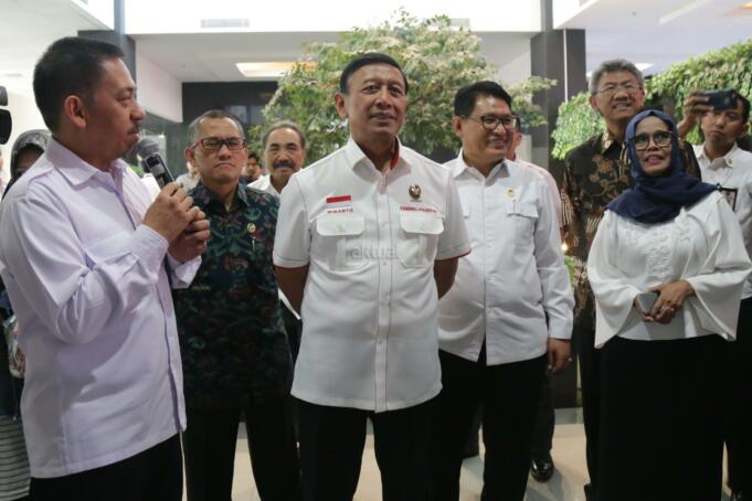 Menkopolhukam Wiranto didampingi Ketua Lembaga Perlindungan Saksi dan Korban (LPSK) Abdul Haris Semendawai meninjau gedung baru LPSK usai memberikan kompensasi ke korban tindak pidana terorisme di Jakarta, Kamis (6/9/2018). LPSK meresmikan gedung baru di Jalan Raya Bogor. AKTUAL/Tino Oktaviano