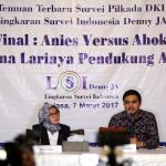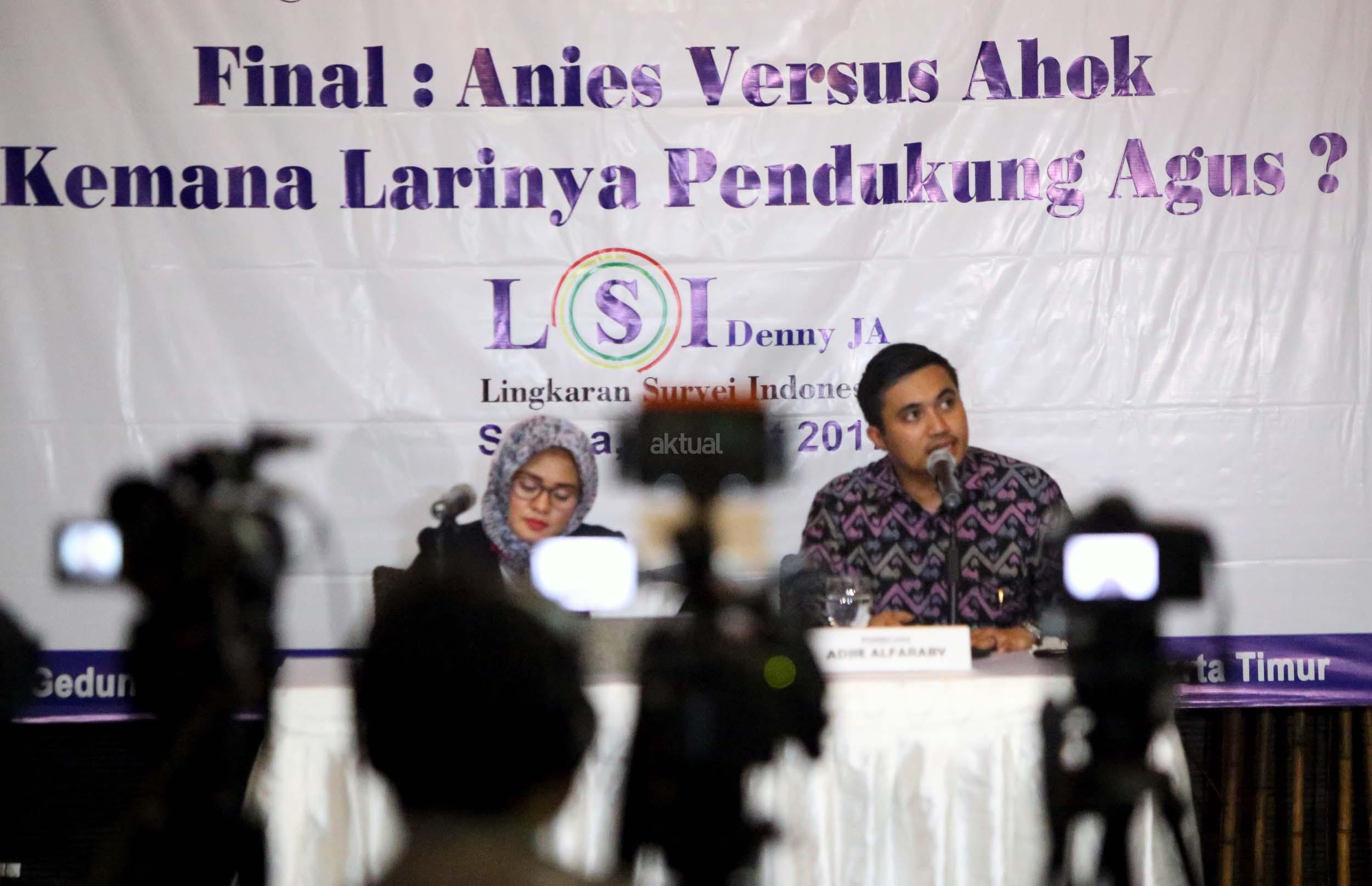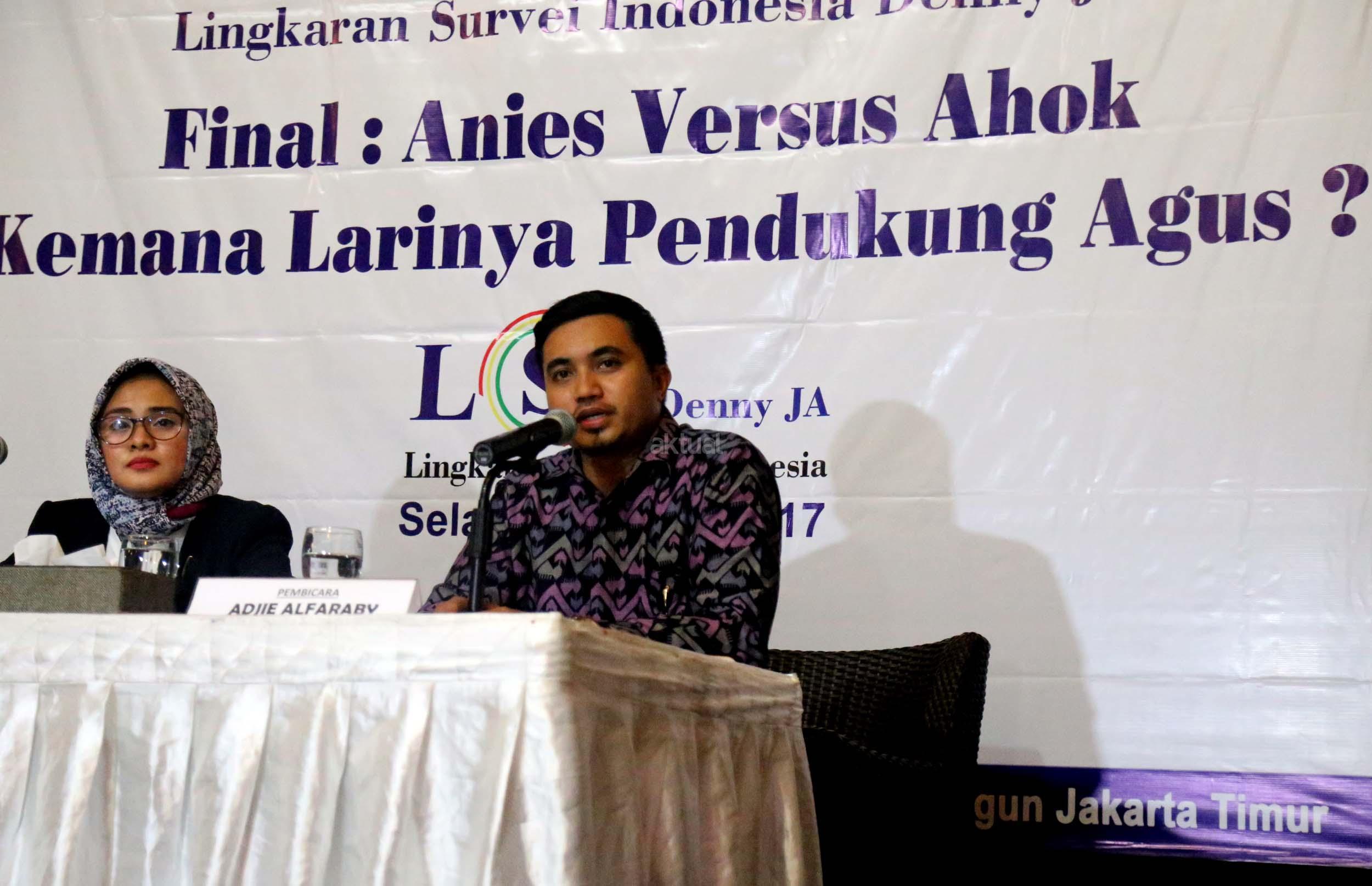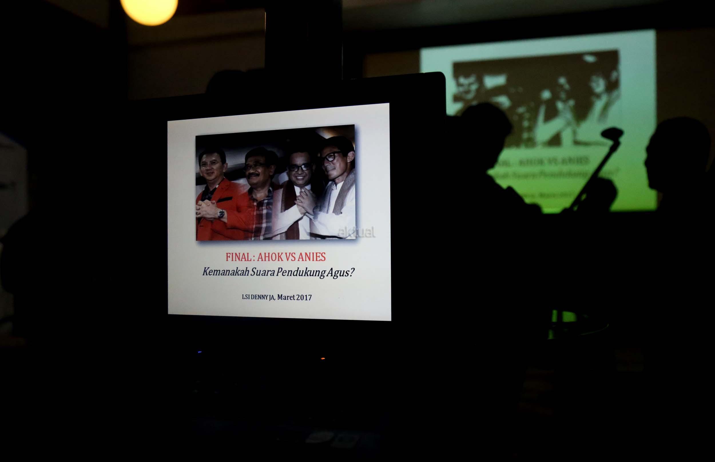 Hasil survei LSI Denny JA menyebutkan, sebanyak 91.80 % pemilih Agus-Sylvi ingin mempunyai Gubernur baru di Jakarta dan beralihnya suara Agus-Sylvi ke pasangan Anies-Sandi karena sebagian besar pemilih Agus-Sylvi menganggap Ahok telah menista agama. AKTUAL/Munzir