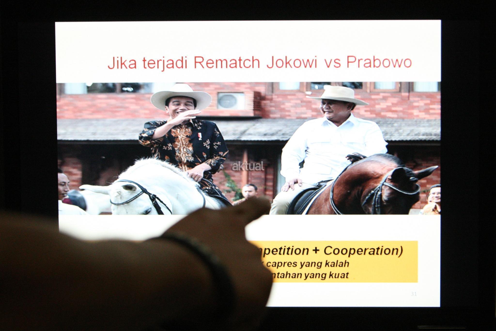 Lingkaran Survei Indonesia (LSI) memprediksikan lima kandidat calon Presiden RI paling berpotensi sebagai pesaing Presiden Joko Widodo atau Jokowi dalam Pemilihan Presidenatau Pilpres 2019 di Jakarta, Jumat (2/2/2018). Keempat kandidat itu adalah Ketua Partai Gerindra Prabowo Subianto, Direktur Eksekutif The Yudhoyono Institute Agus Harimurti Yudhoyono, Gubernur DKI Jakarta Anies Baswedan, dan eks Panglima TNI Jenderal Gatot Nurmantyo. Berdasarkan hasil survei, Prabowo adalah satu-satunya pesaing Jokowi yang menduduki divisi pertama. Sebanyak 92,5 persen responden mengaku mendukung Prabowo dalam Pilpres 2019. Sementara, sebanyak 6,9 persen responden lainnya tidak mendukung. AKTUAL/Tino Oktaviano