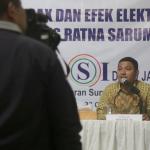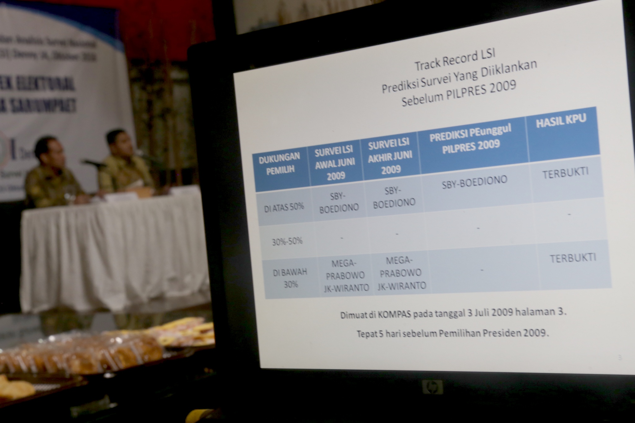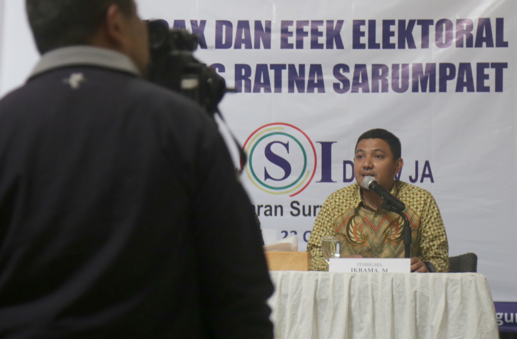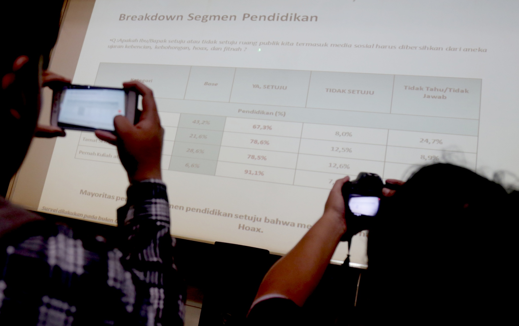 Wartawan saat meliput survei terkait Hoax dan efek Elektoral Kasus Ratna Sarumpaet di Jakarta Selasa (23/10/2018). Salah satu hasil survei LSI menyebutkan, bila Pipres digelar hari ini, pasangan Jokowi-Ma,ruf tampil sebagai pemenang. AKTUAL/Tino Oktaviano