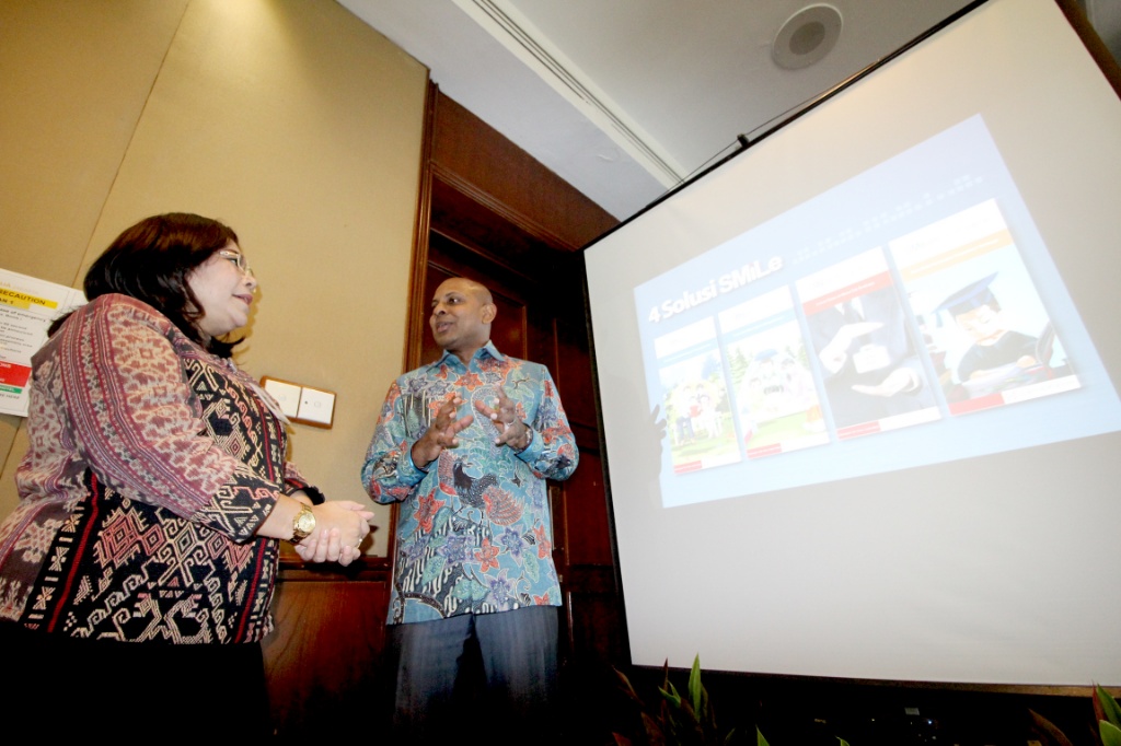 Presiden Direktur Sinarmas MSIG Life, Premraj Thuraisingam (kanan) bersama Direktur Konsumer bank bjb, Fermiyanti (kiri), berbincang usai acara “Peluncuran Produk Bancassurance antara bank bjb dan Sinarmas MSIG Life” di Jakarta, Kamis (19/10). Melalui kemitraan ini, nasabah bank bjb memiliki opsi empat produk unggulan Sinarmas MISG Life yaitu SMiLe Kids, SMiLe Life Care Plus, SMiLe Link Investa dan SMiLe Link Plus yang memberikan pilihan alternatif perencanaan keuangan berbasis asuransi dan investasi guna mendukung pengembangan finansial. AKTUAL/Humas Sinarmas