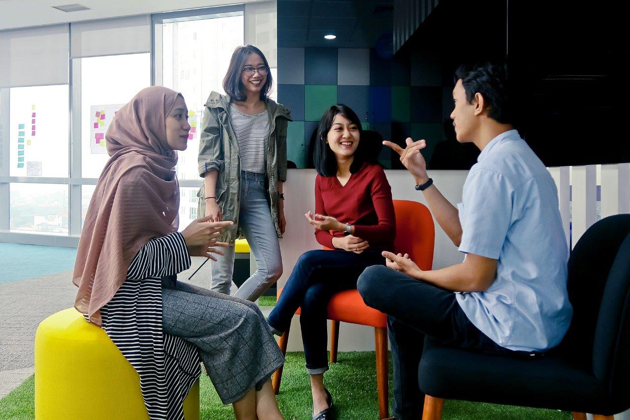 Suasana karyawan Allianz Indonesia berbusana santai dan menjalankan jam kerja fleksibel di Jakarta, Jumat (9/11/2018). Dengan tatanan ruang kerja yang modern dan terbuka, Allianz Innovation Labmenyediakan ruang untuk karyawan berdiskusi, bereksperimen, dan berbagi ide secara bebas serta mendorong inovasi, tidak hanya di digital, tapi juga di pengembangan produk dan layanan secara menyeluruh dari karyawan yang bisa memberikan nilai tambah, kemudahan dan pengalaman menyenangkan bagi mitra bisnis dan nasabah, sesuai dengan nilai perusahaan yang diusung yaitu #HappyLifeMadeeAZy. AKTUAL/Dok Allianz