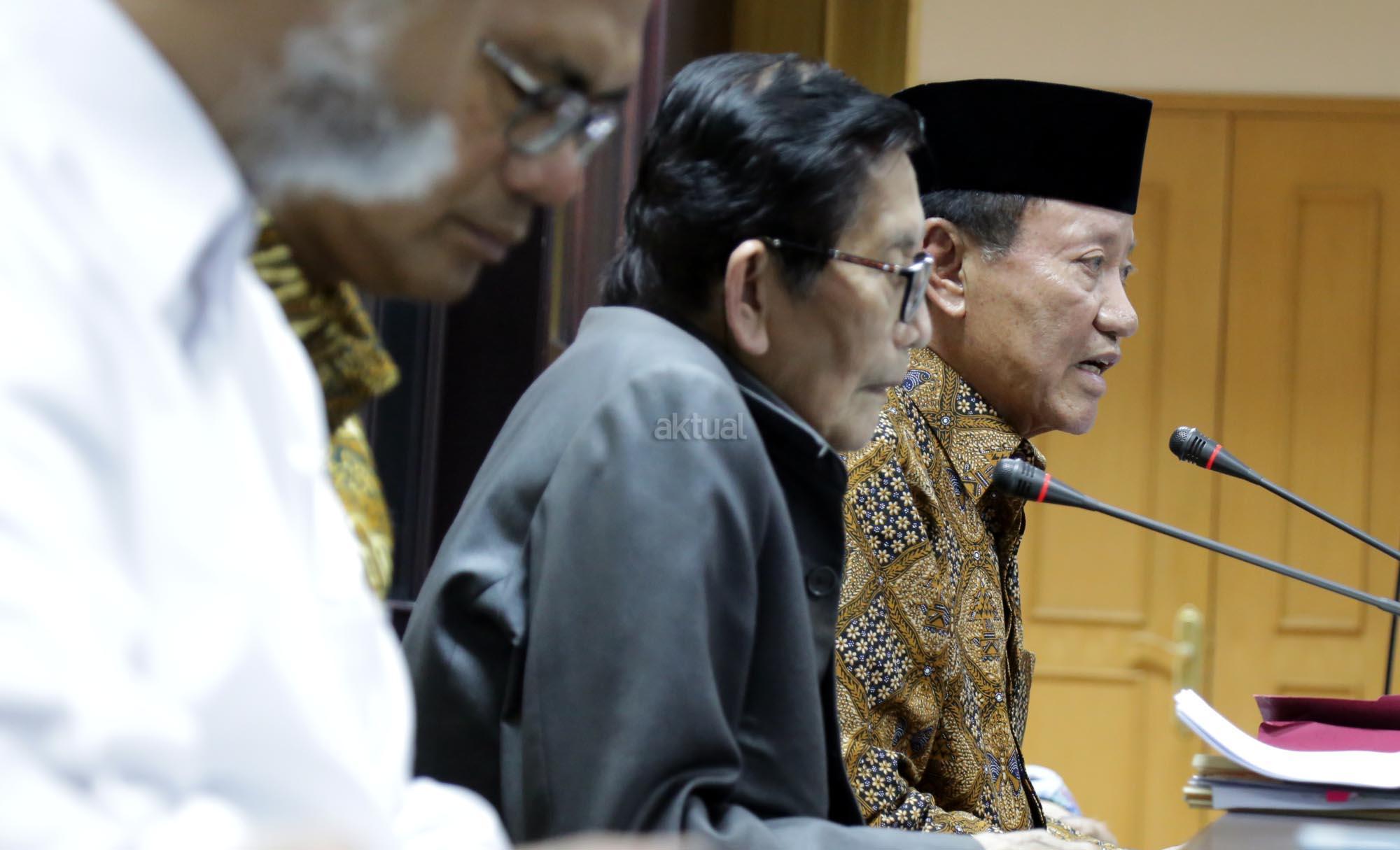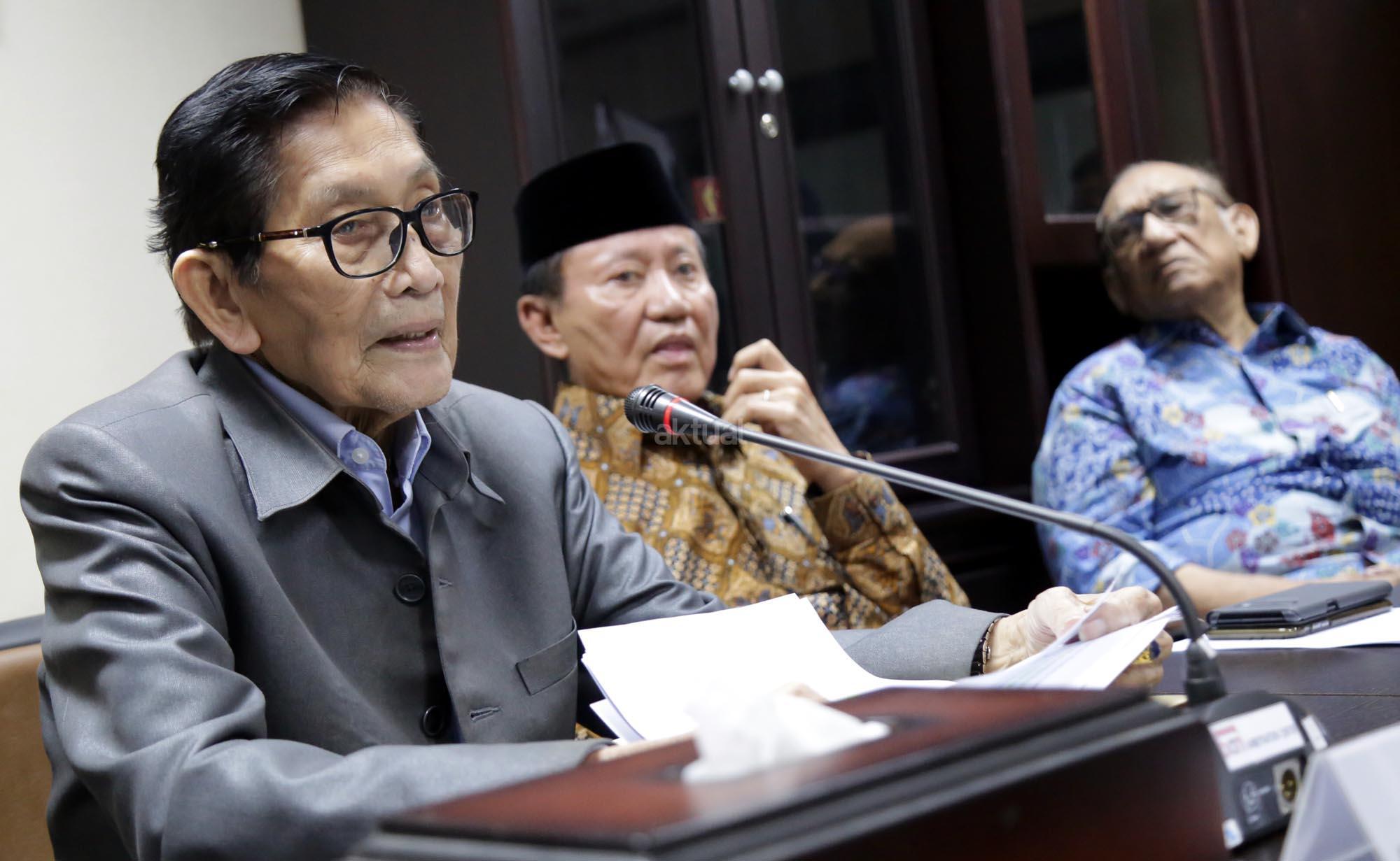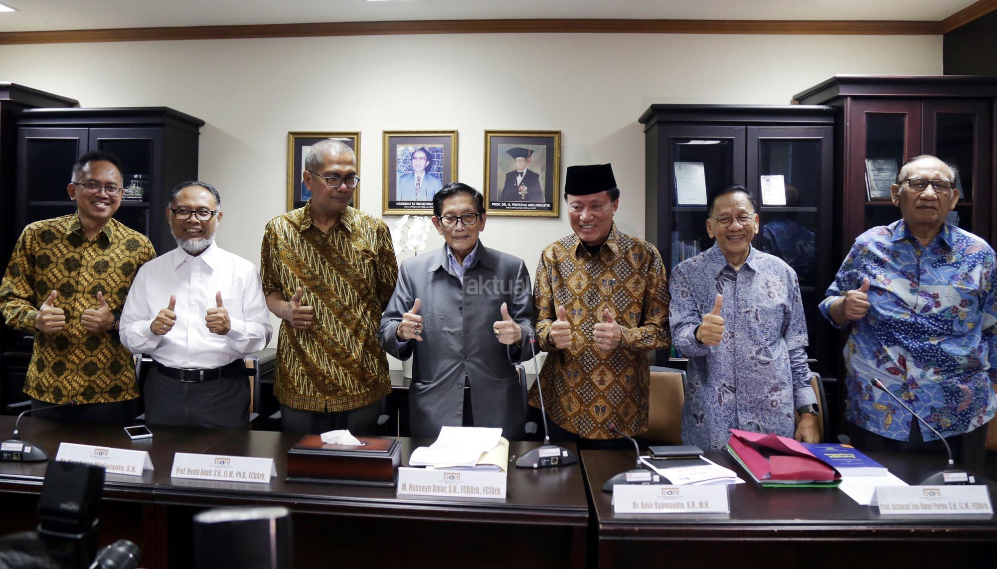 Ketua BANI M. Husseyn Umar (ketiga kiri) didampingi , Kuasa Hukum BANI Dr. Amir Syamsudin, saat konferesi pers di kantor BANI, Jakarta, Kamis (7/6/2018). Badan Arbitrase Nasional Indonesia (BANI) versi Mampang memenangkan gugatan badan hukum terhadap BANI versi Sovereign di tingkat kasasi Mahkamah Agung melalui putusan 233 K/TUN/2018 pada 8 Mei 2018. AKTUAL/Tino Oktaviano