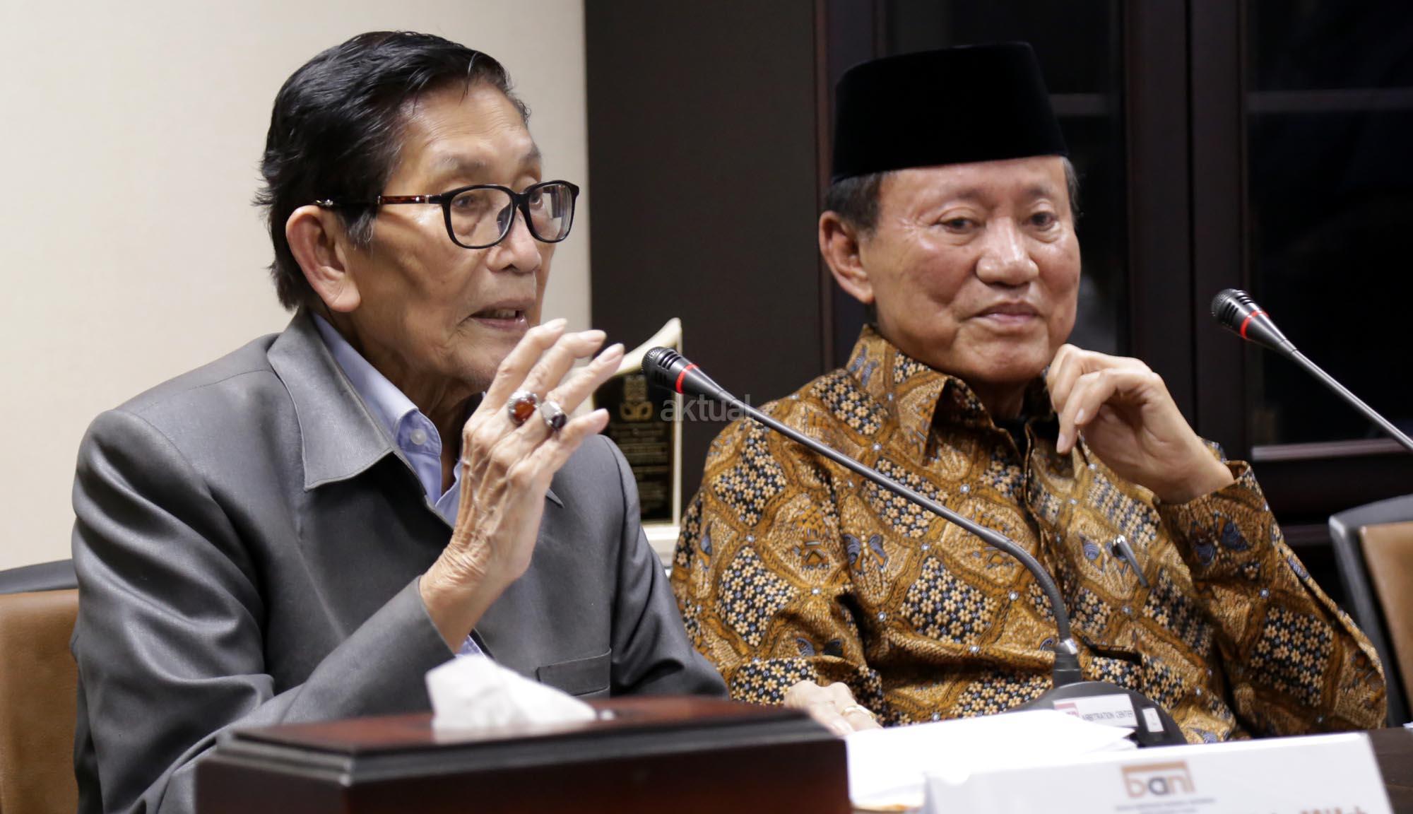 Ketua BANI M. Husseyn Umar (kiri) didampingi , Kuasa Hukum BANI Dr. Amir Syamsudin, saat konferesi pers di kantor BANI, Jakarta, Kamis (7/6/2018). Badan Arbitrase Nasional Indonesia (BANI) versi Mampang memenangkan gugatan badan hukum terhadap BANI versi Sovereign di tingkat kasasi Mahkamah Agung melalui putusan 233 K/TUN/2018 pada 8 Mei 2018. AKTUAL/Tino Oktaviano