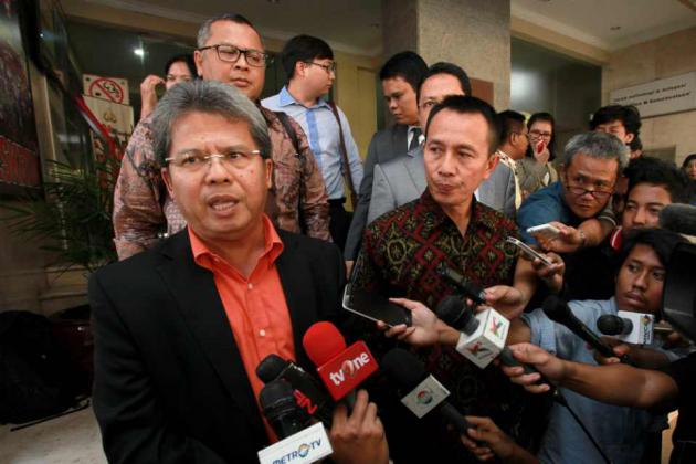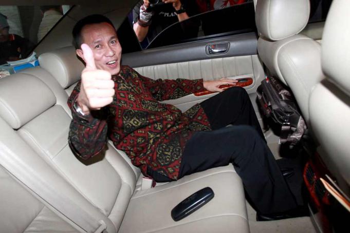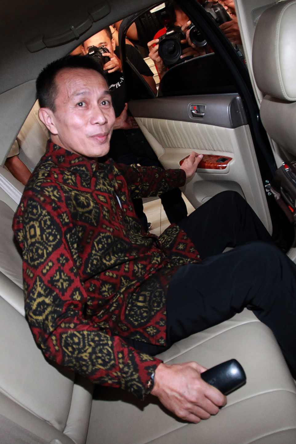Ketua Komisi Yudisial (KY) Suparman Marzuki memasuki kendaraannya usai menjalani pemeriksaan di Bareskrim Mabes Polri, Jakarta, Senin (27/7). Suparman Marzuki diperiksa sebagai tersangka terkait pencemaran nama baik kepada hakim Sarpin Rizaldi. ANTARA FOTO/ Muhammad Adimaja