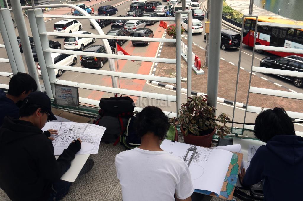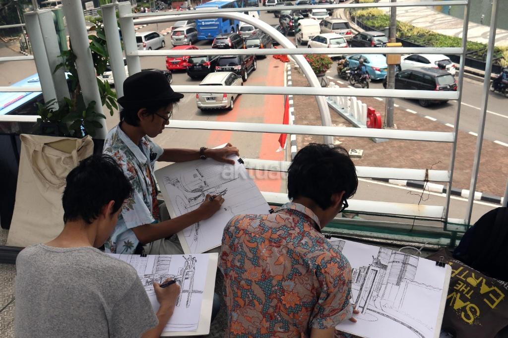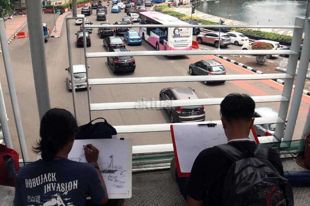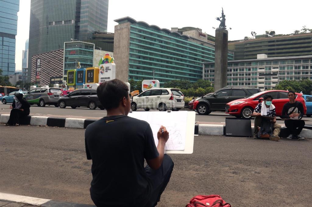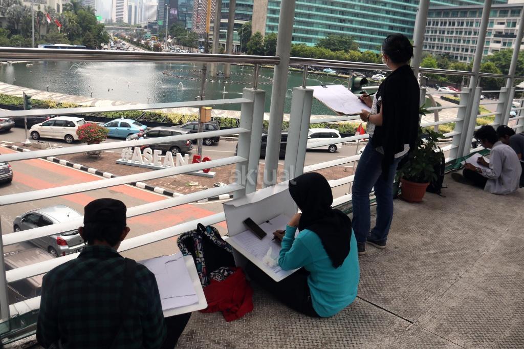 Mahasiswa Belajar Melukis Bunderan HI dari Berbagai Sudut